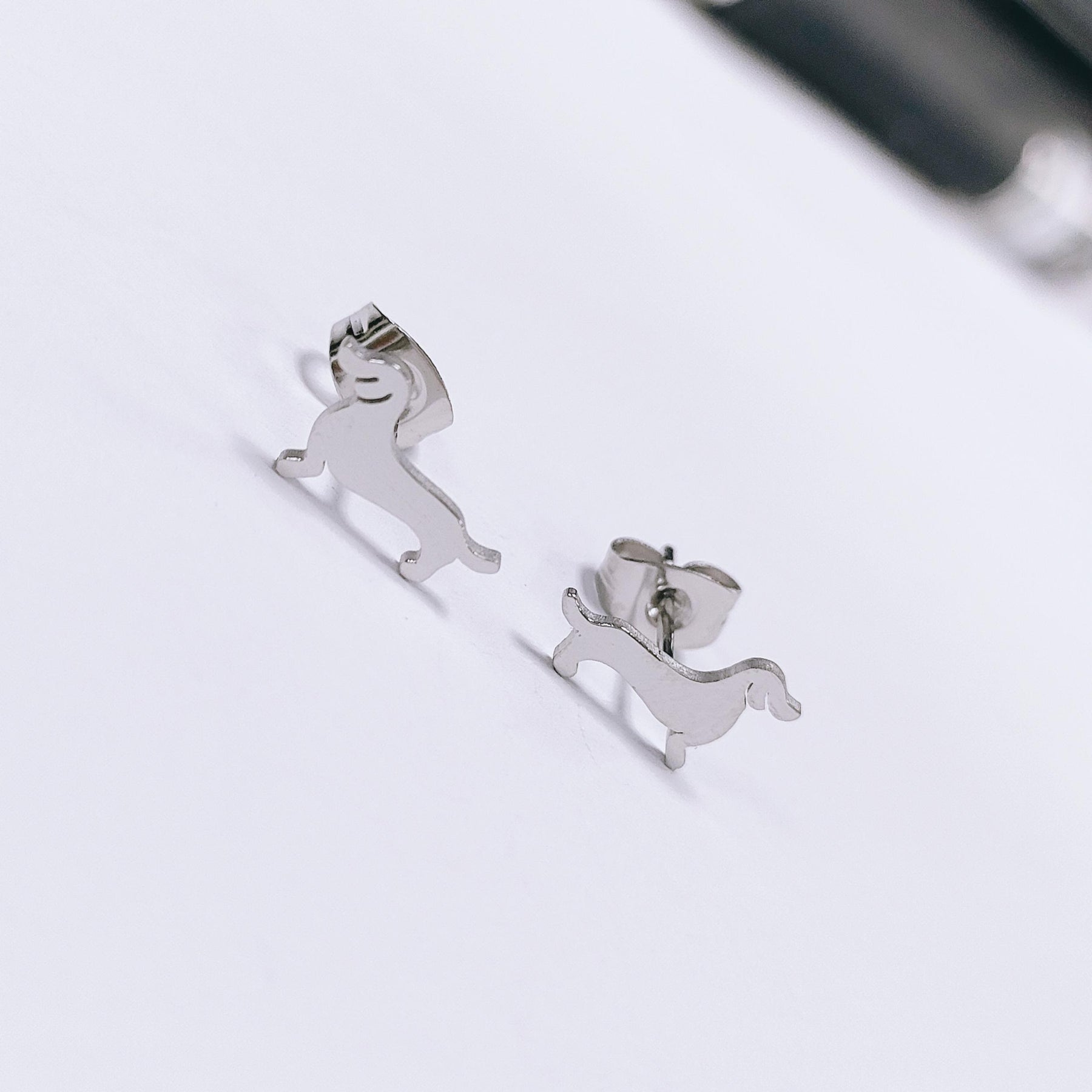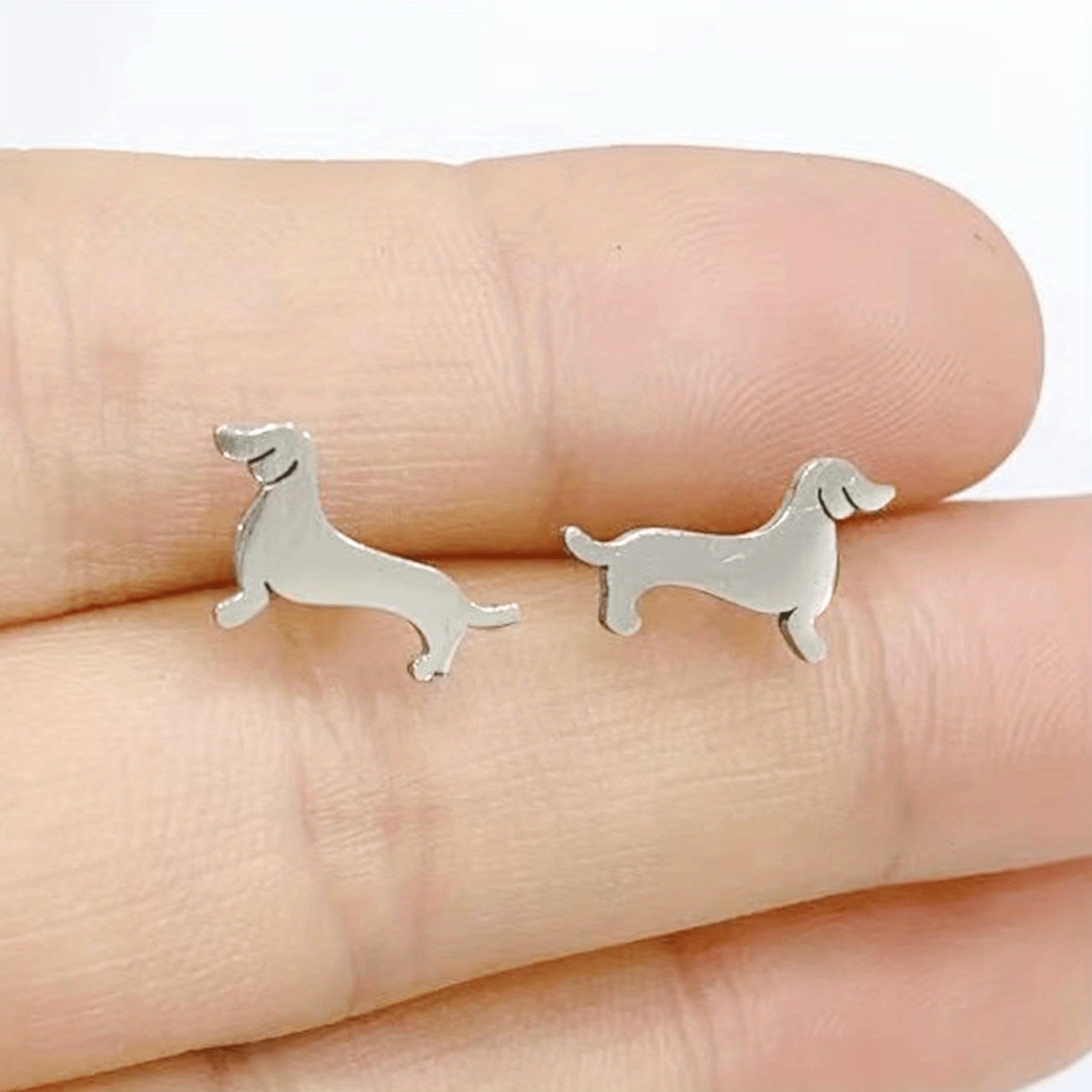 Add a touch of vintage charm to your look with these stainless steel ear studs featuring adorable puppy design.