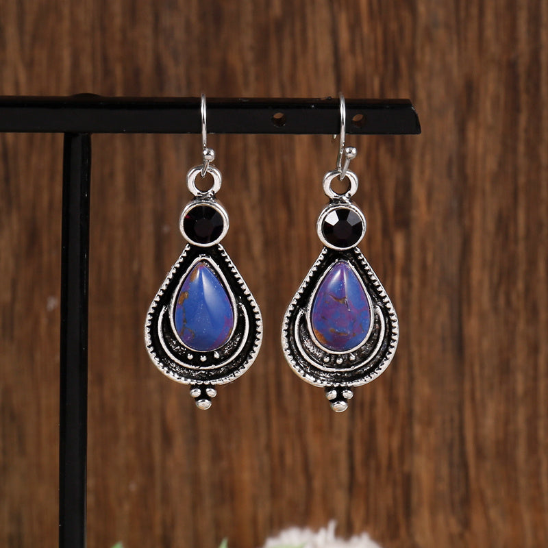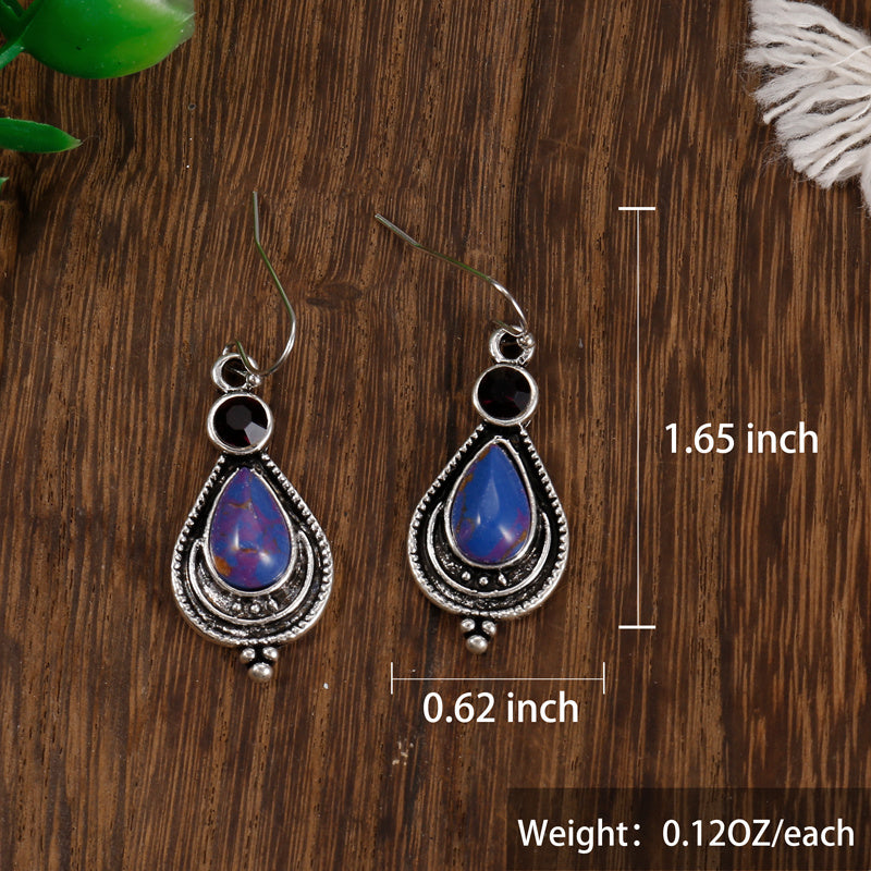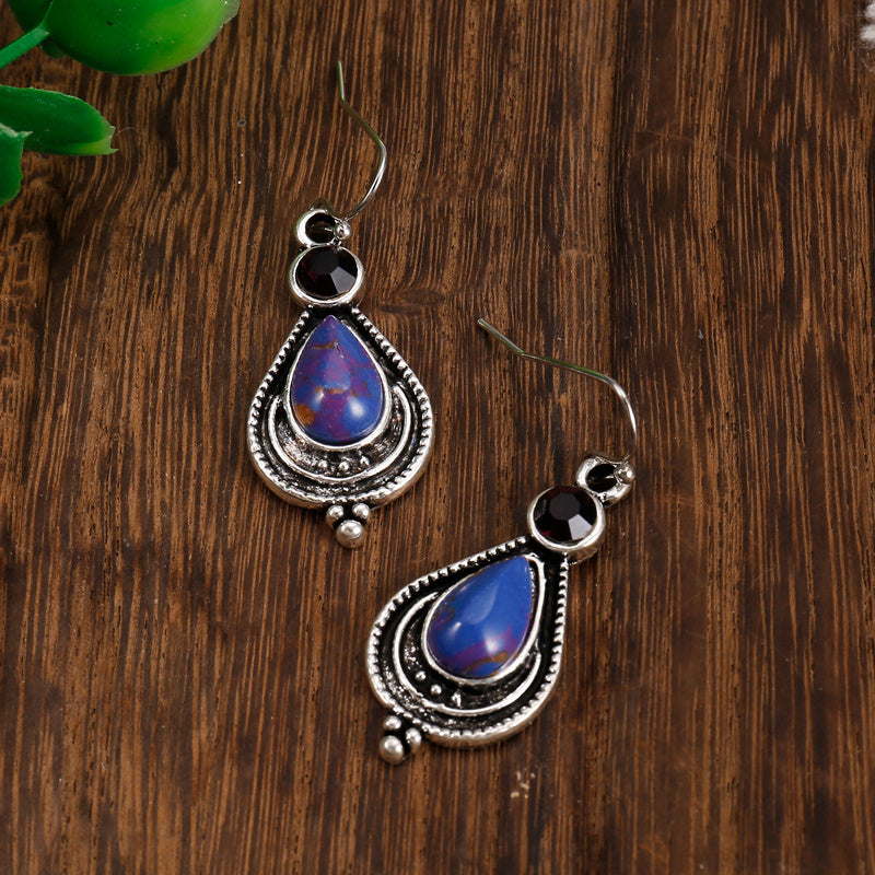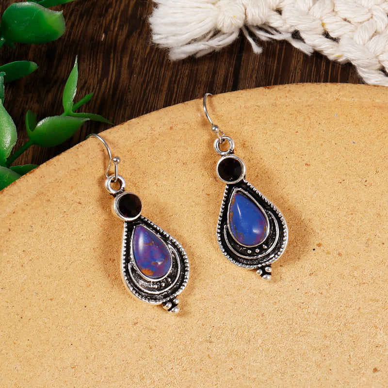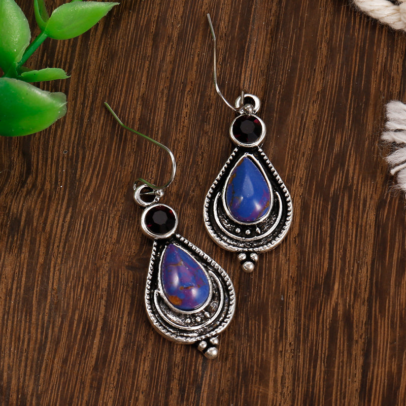 Bohemian turquoise ear jewelry for women featuring a teardrop shape design with purple crystals.