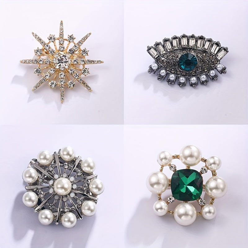 Add a touch of vintage charm to your outfit with this eye-shaped rhinestone brooch pin. Perfect accessory for women's clothing.