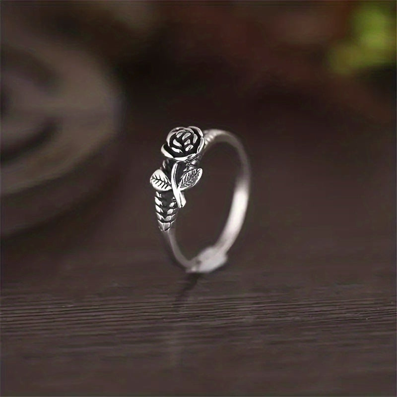 Stylish vintage rose flower ring made of high-quality alloy material. Perfect accessory for a trendy look.