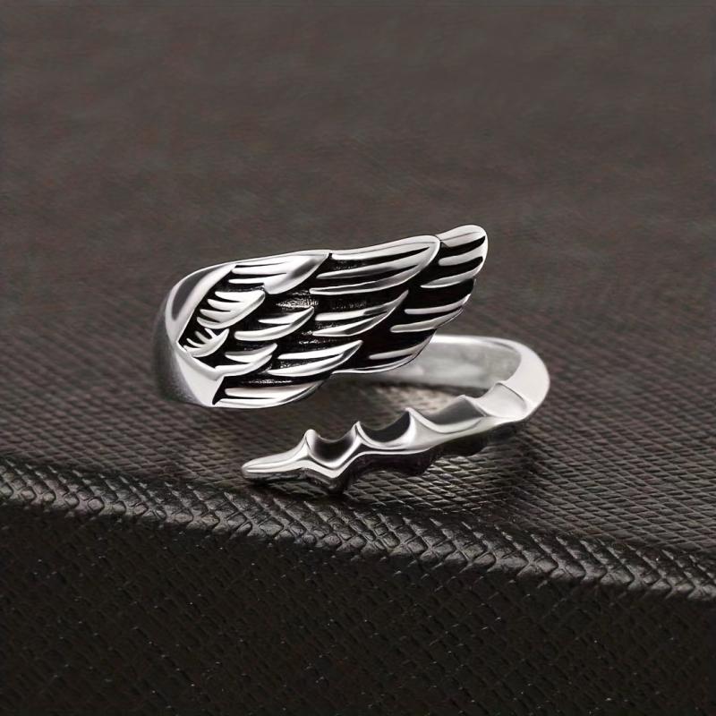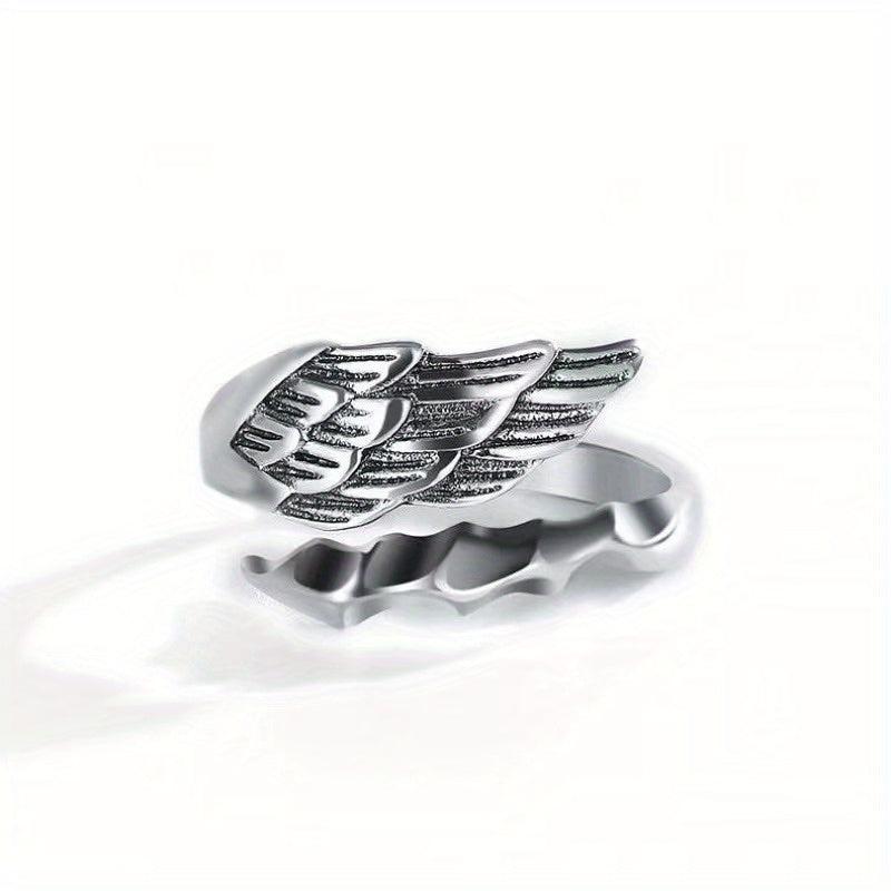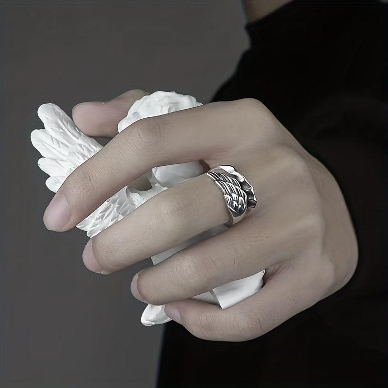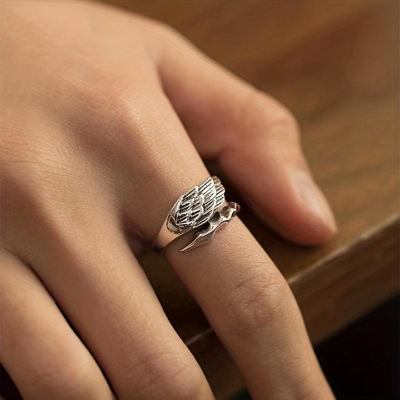 Vintage Silver Angel & Devil Wing Open Ring Couple's Jewelry