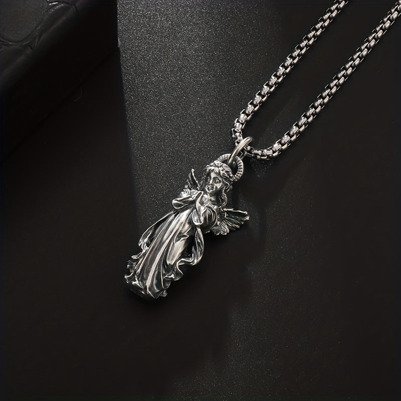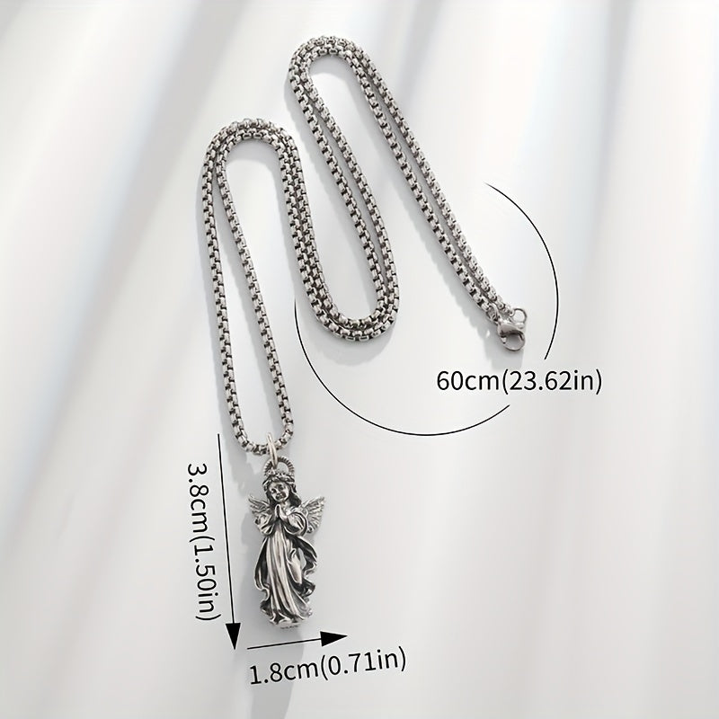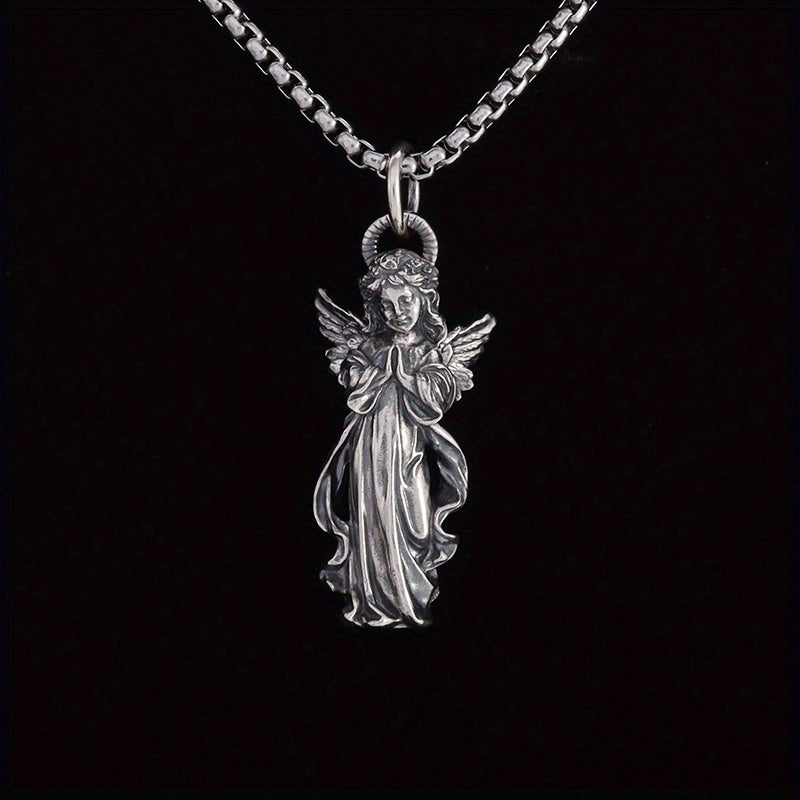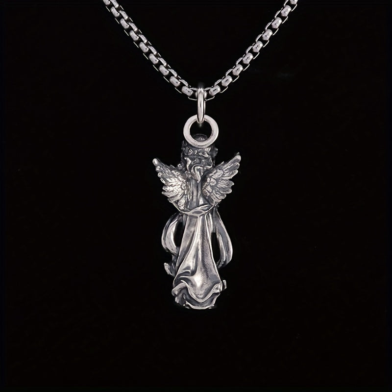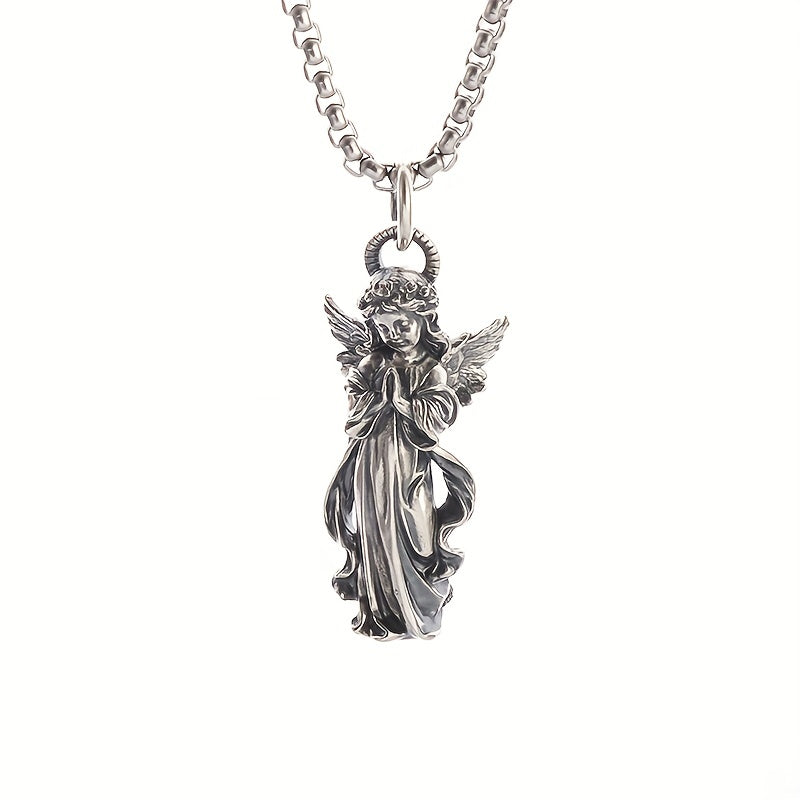 This unique vintage silver angel pendant necklace is a perfect accessory for men. It makes a great anniversary gift or a casual amulet.