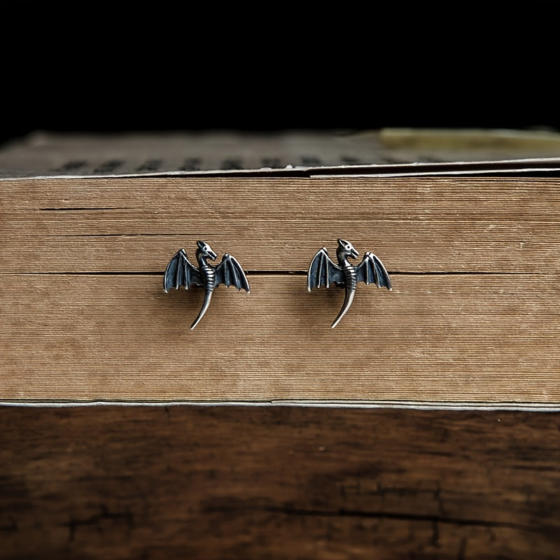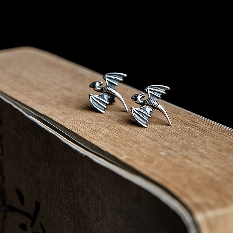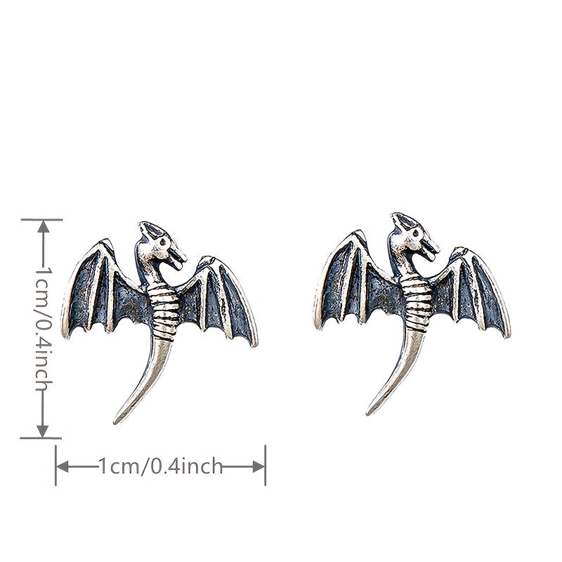 Vintage Silvery Pterosaur Ear Studs Mythology Dragon Earrings
