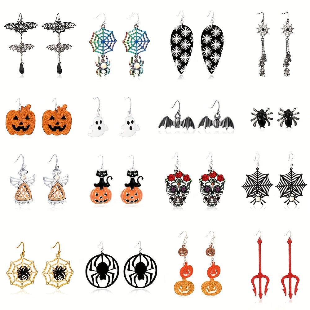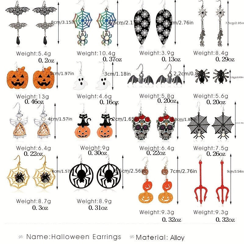These vintage style dangle earrings are perfect for Halloween, featuring spider, skull, pumpkin, and ghost charms. Made of alloy, they make a great gift for females.