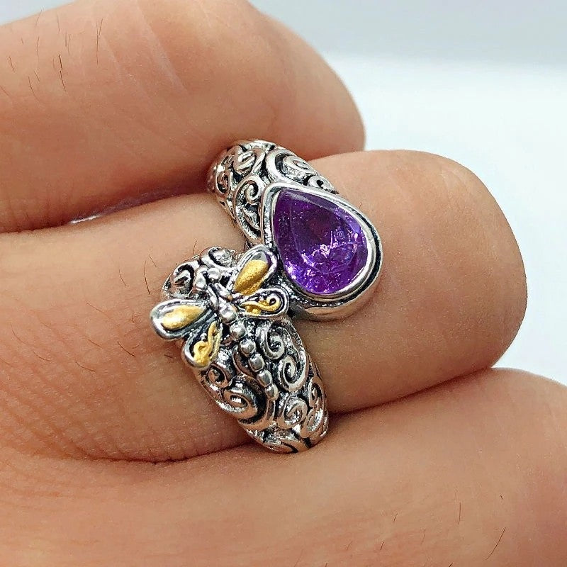 This beautiful spoon ring features a teardrop shape zircon inlaid dragonfly pattern. Perfect accessory to match your daily outfits. Ideal birthday gift for females.