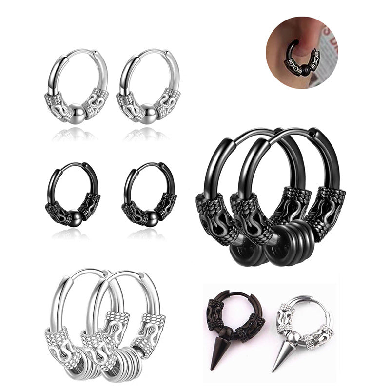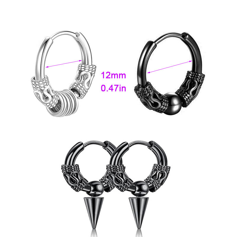 These vintage round earrings feature a dragon totem design. Suitable for both men and women, these stainless steel ear clip earrings are a stylish accessory.