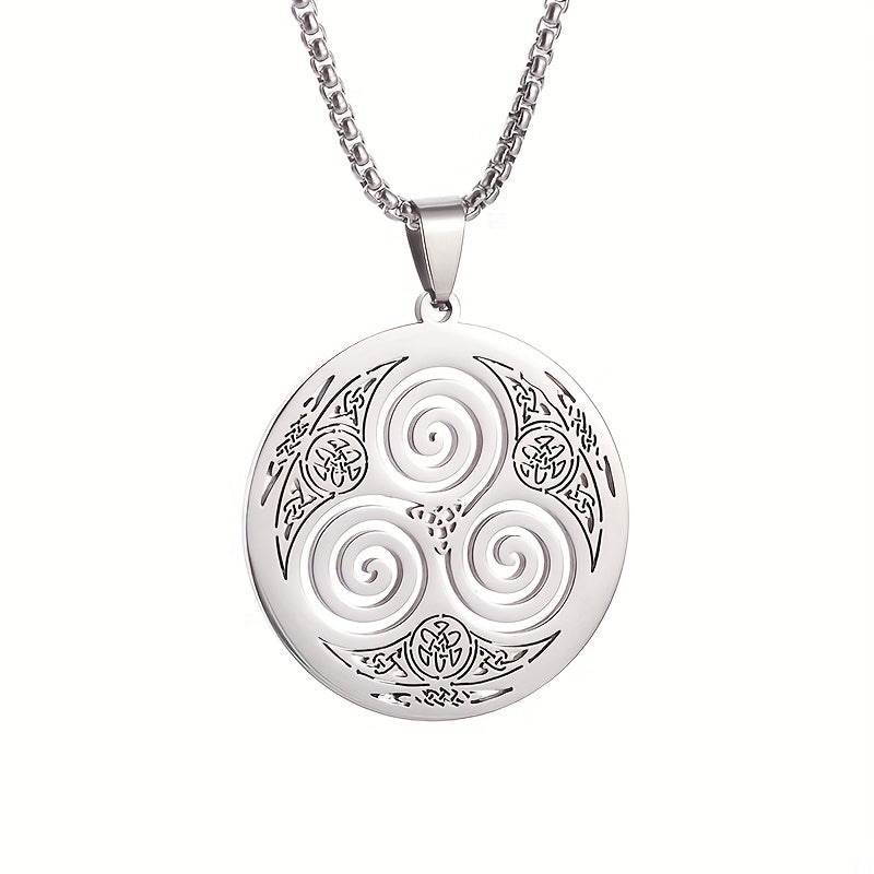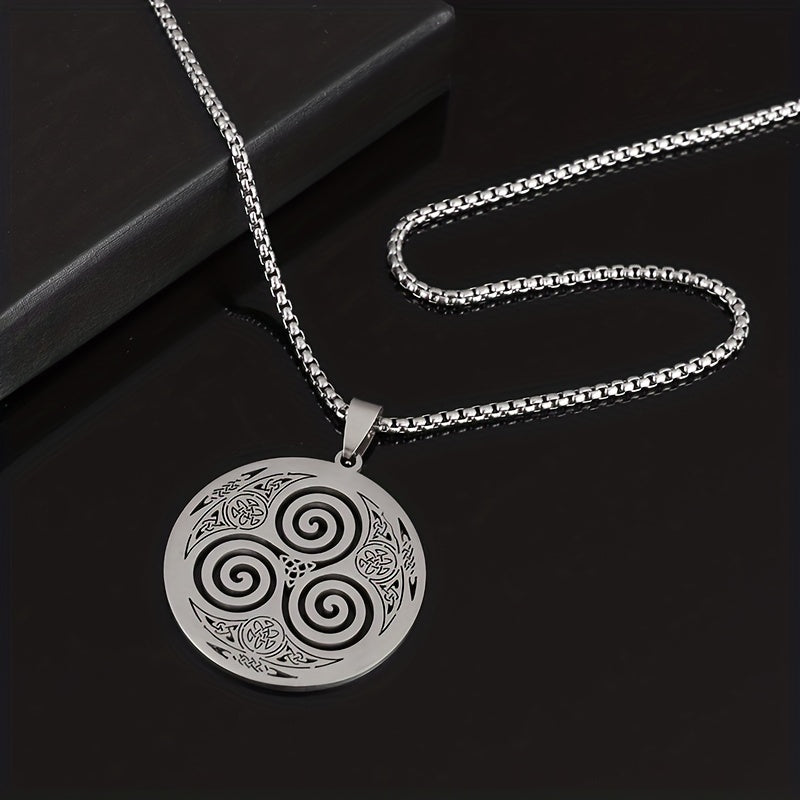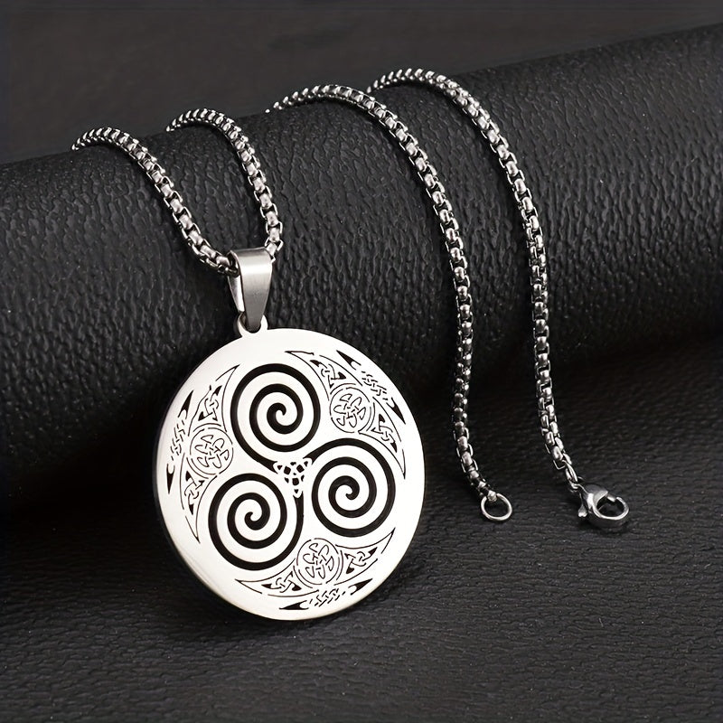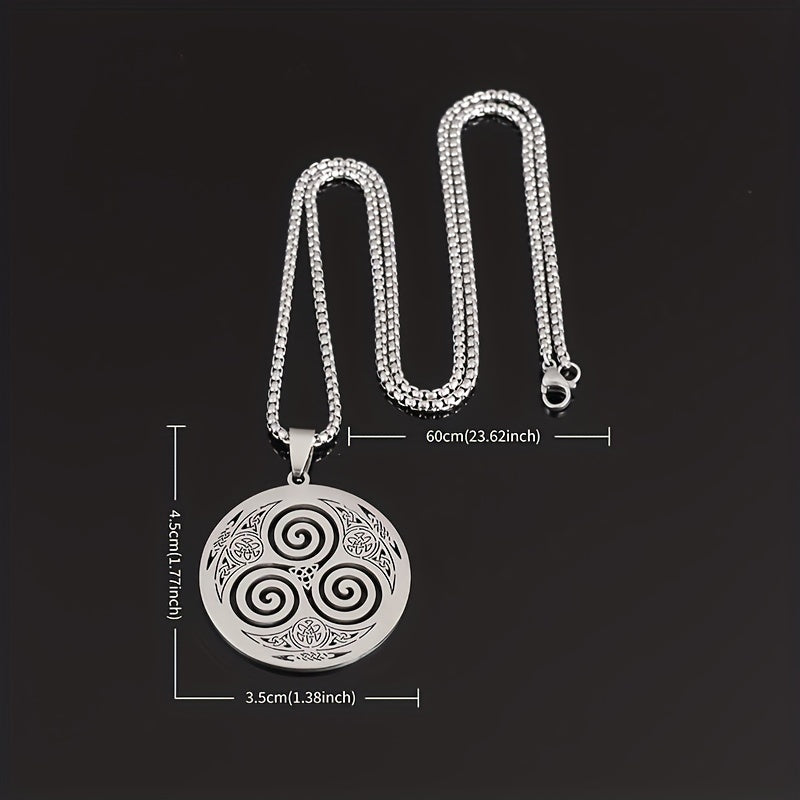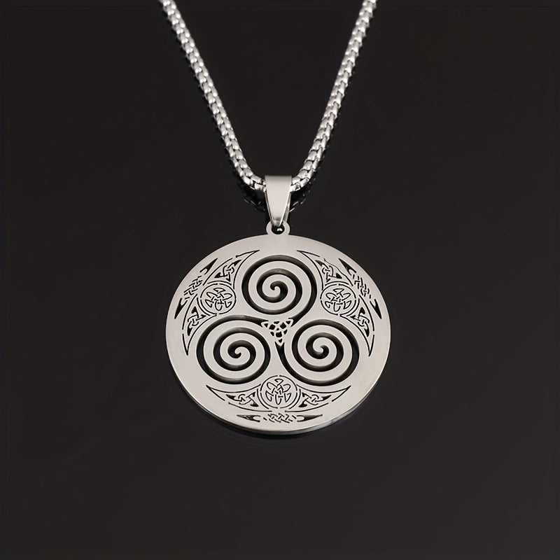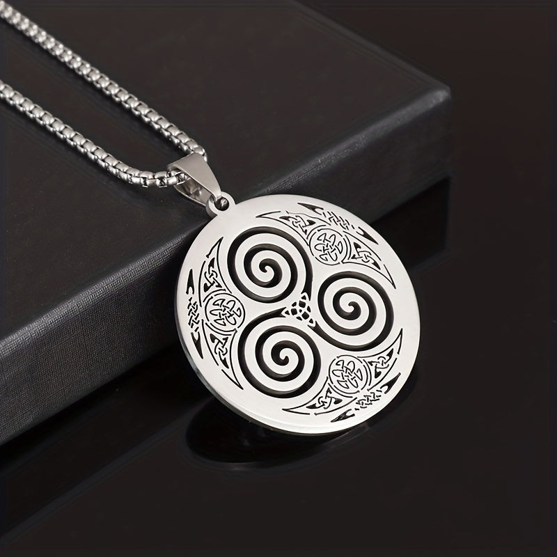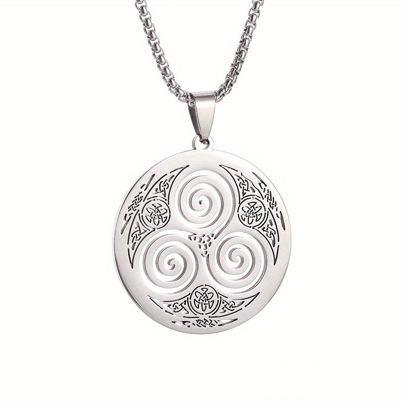 This vintage stainless steel necklace features a spiral triple circle pendant design. It is suitable for daily wear, hip hop parties, and casual outings. Makes a great jewelry gift for men.