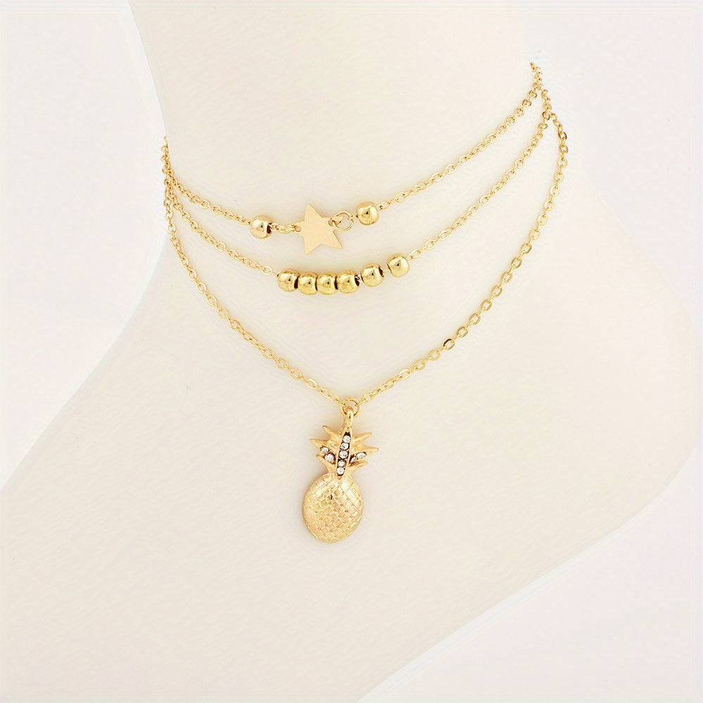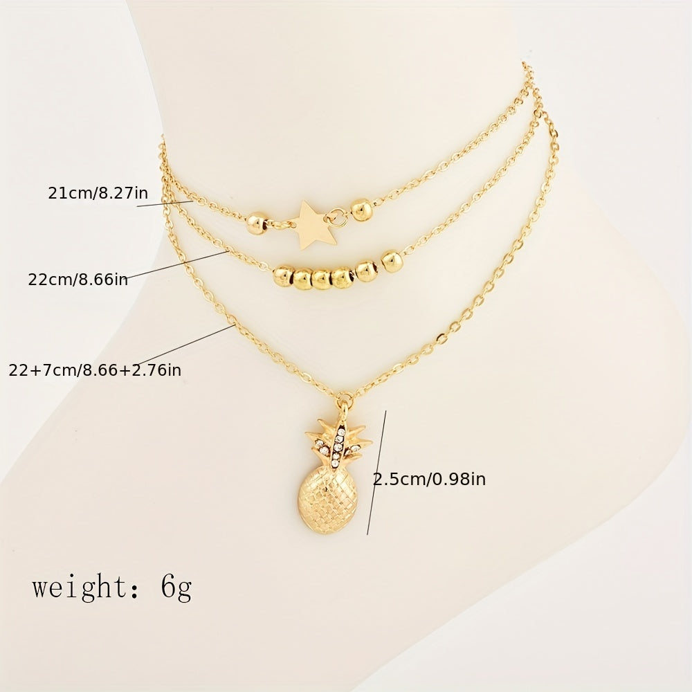 Add a touch of vintage charm to your look with this beautiful anklet featuring star and pineapple beads. Perfect for casual or beachwear.