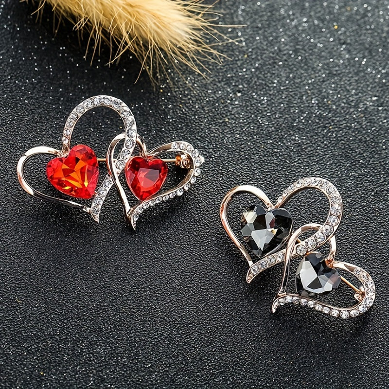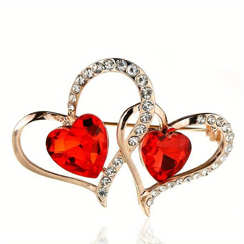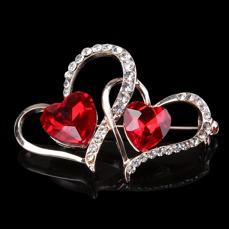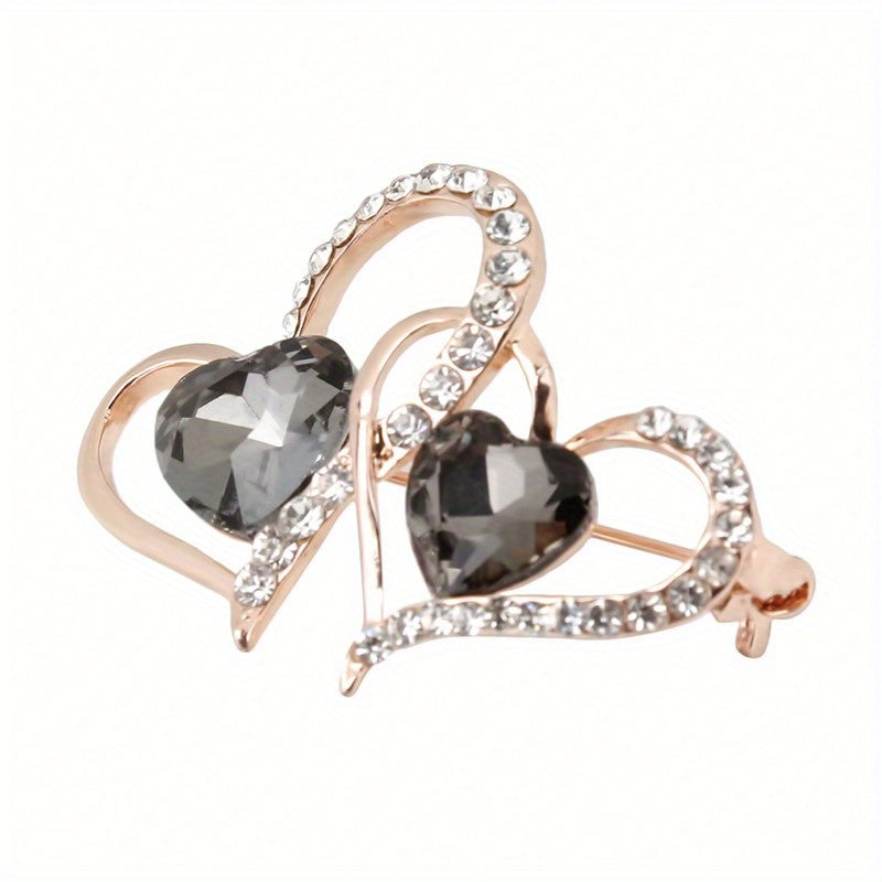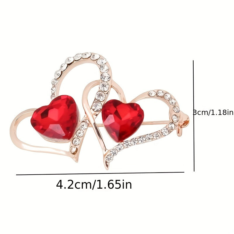 Add a touch of elegance with this vintage style brooch pin adorned with double hollow love heart shape, inlaid zircon for a sparkling look.