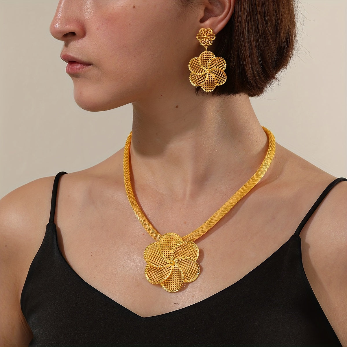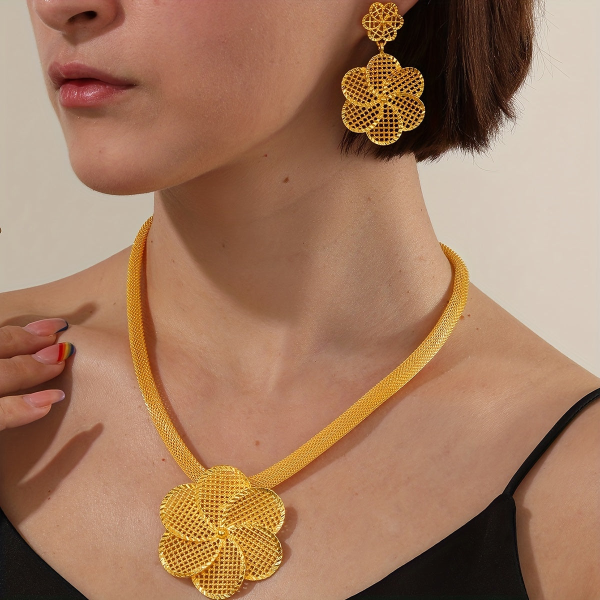 • Vintage style jewelry set with hollow flower design