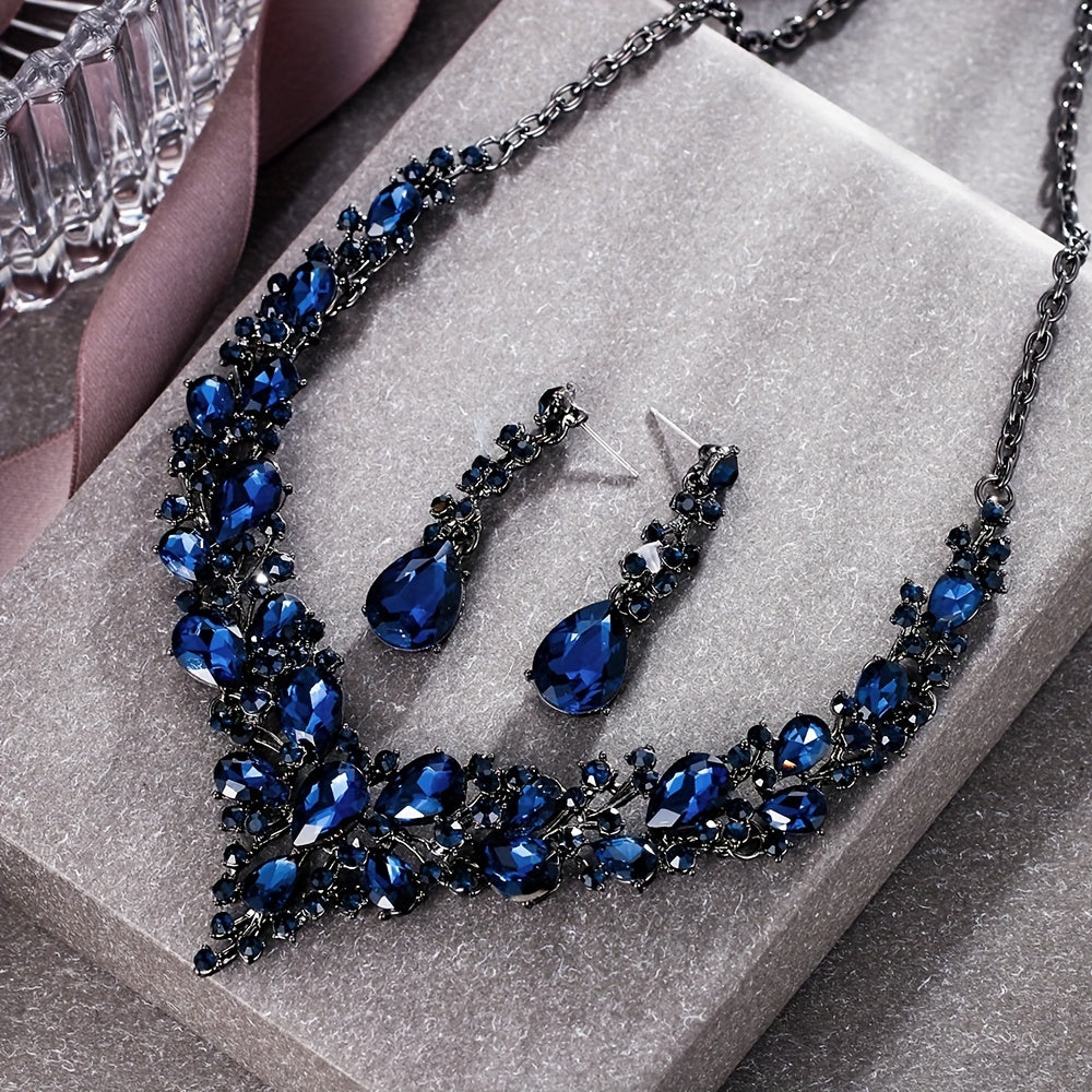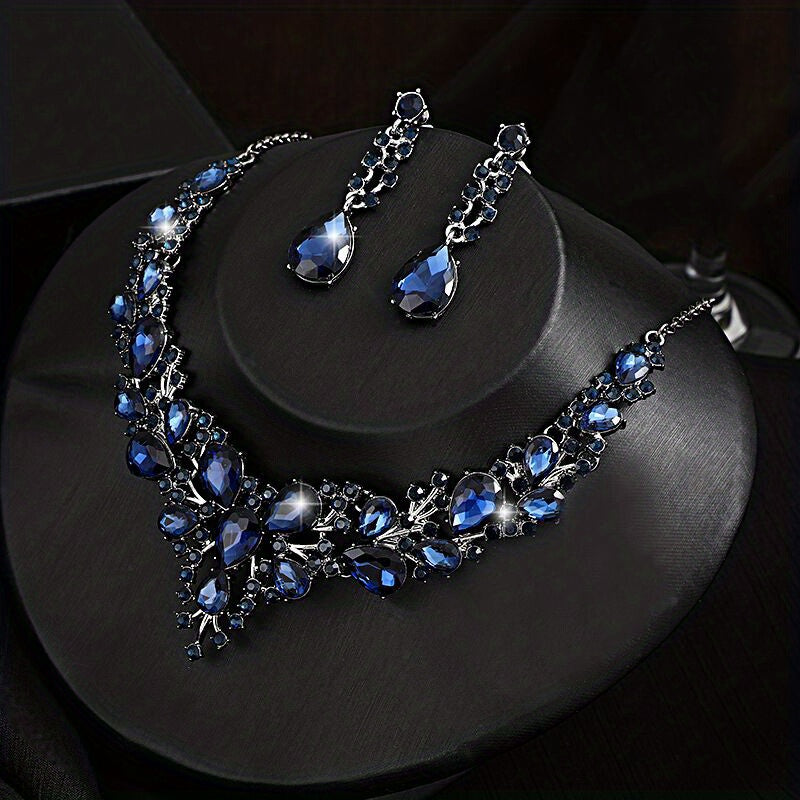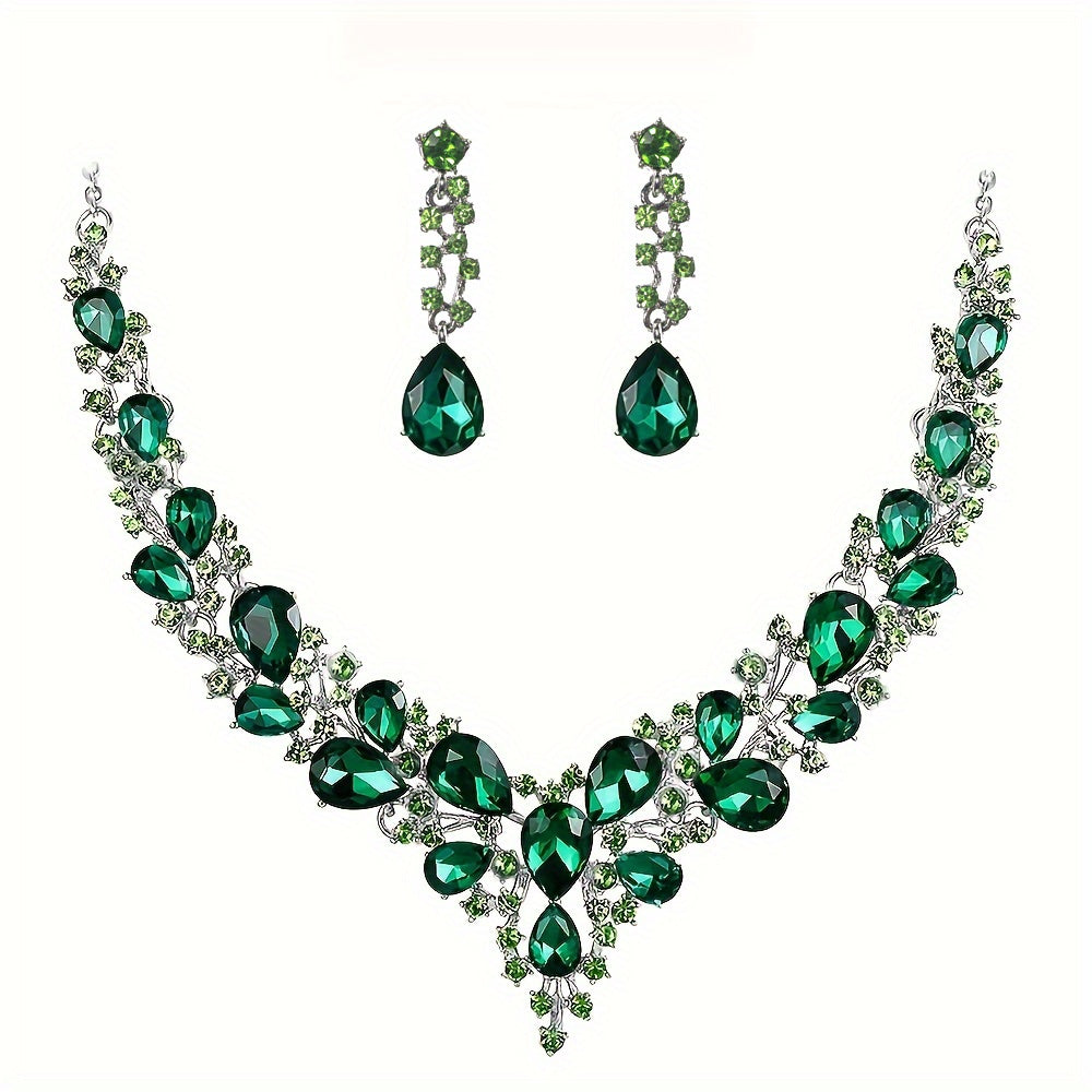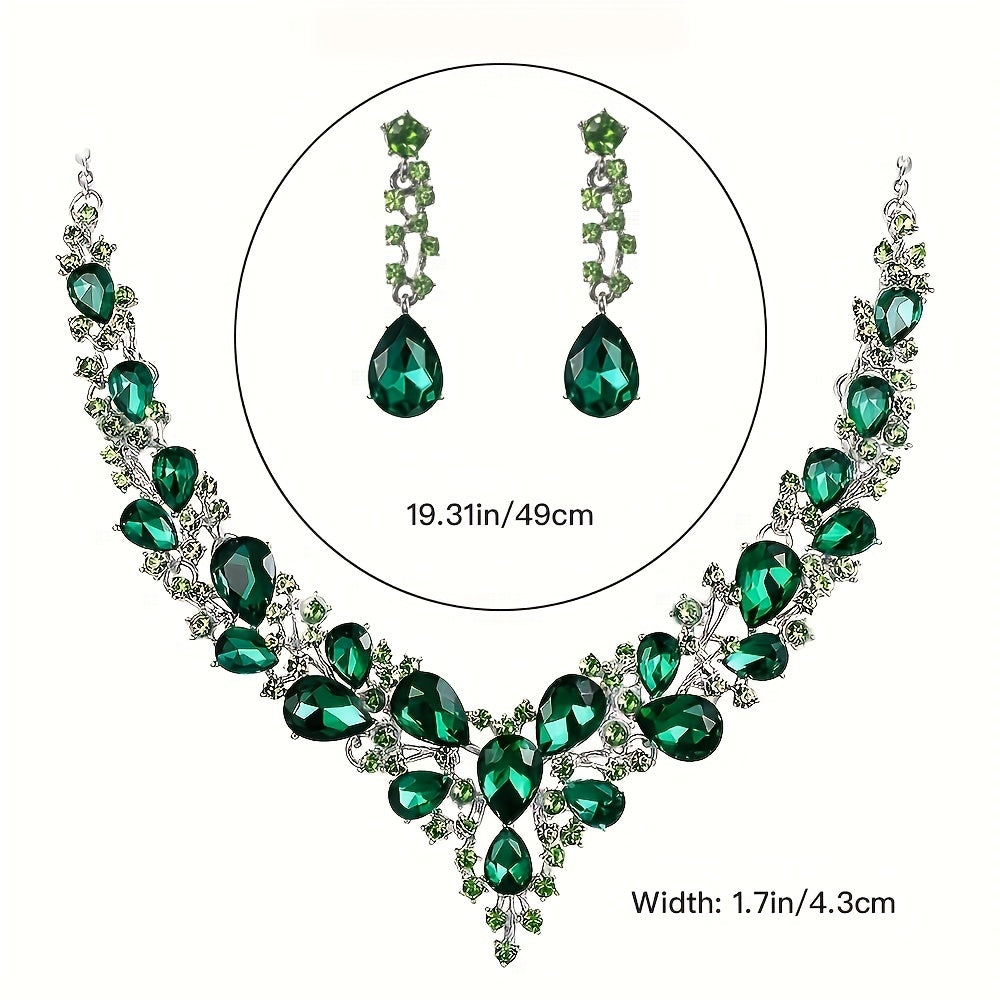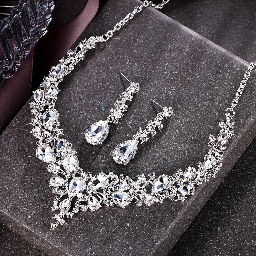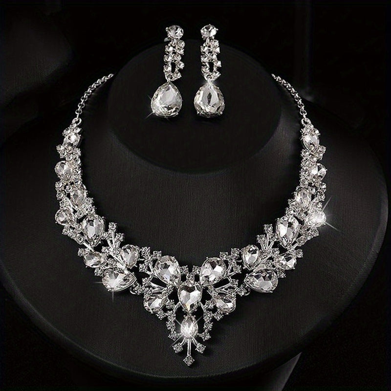Elegant jewelry set featuring a pendant necklace and dangle earrings, perfect for weddings and special occasions.