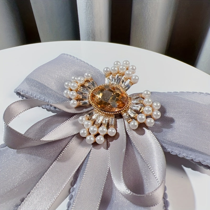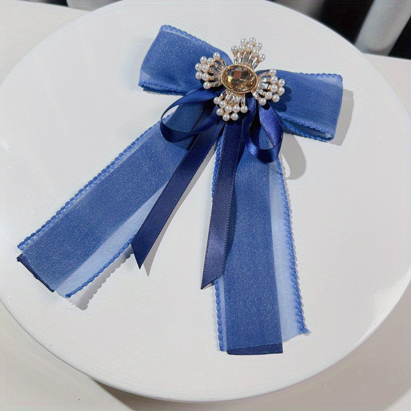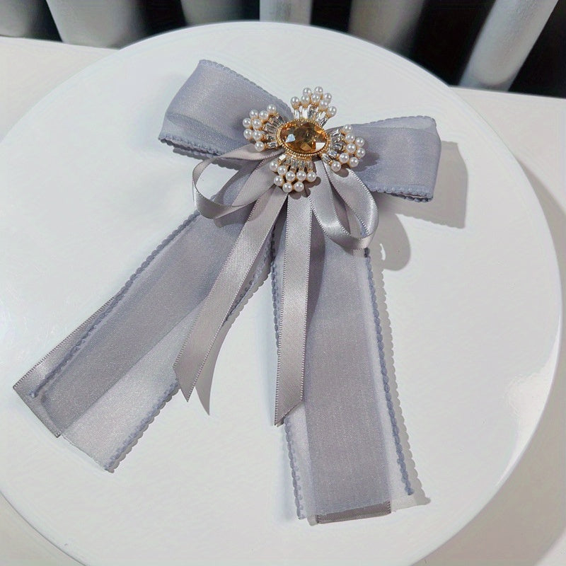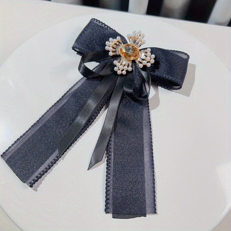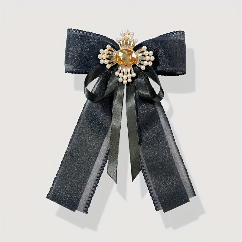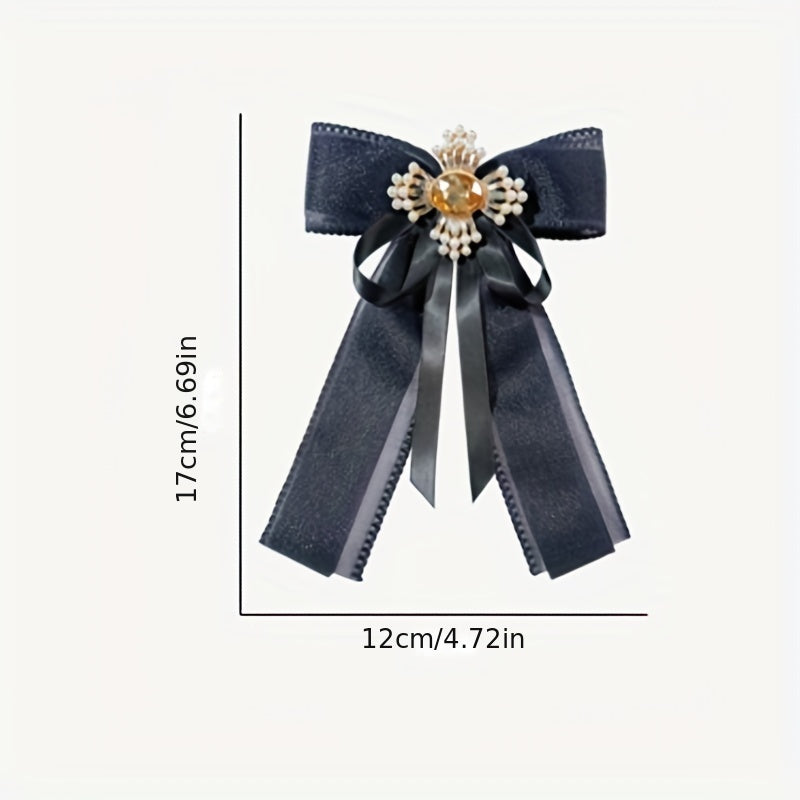 Add a touch of vintage charm to any outfit with this elegant mesh bow tie brooch. Inlaid with sparkling rhinestones and faux pearls, this brooch is perfect for adding a touch of glamour to your look.