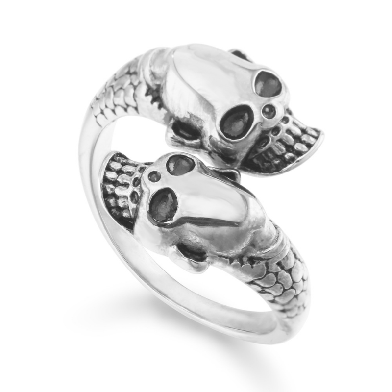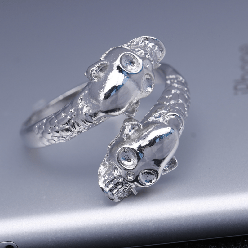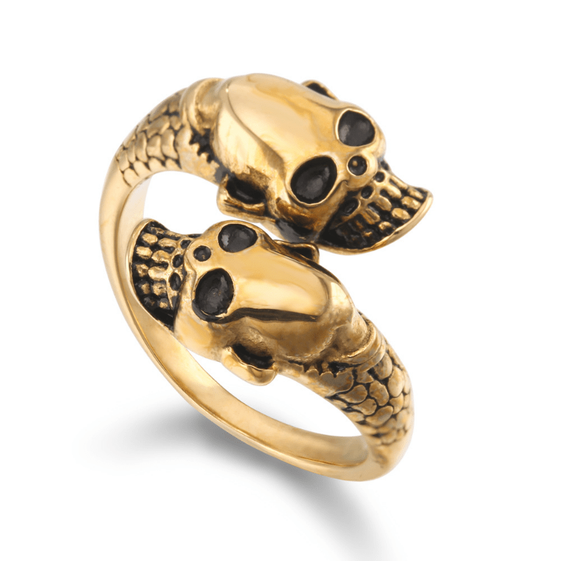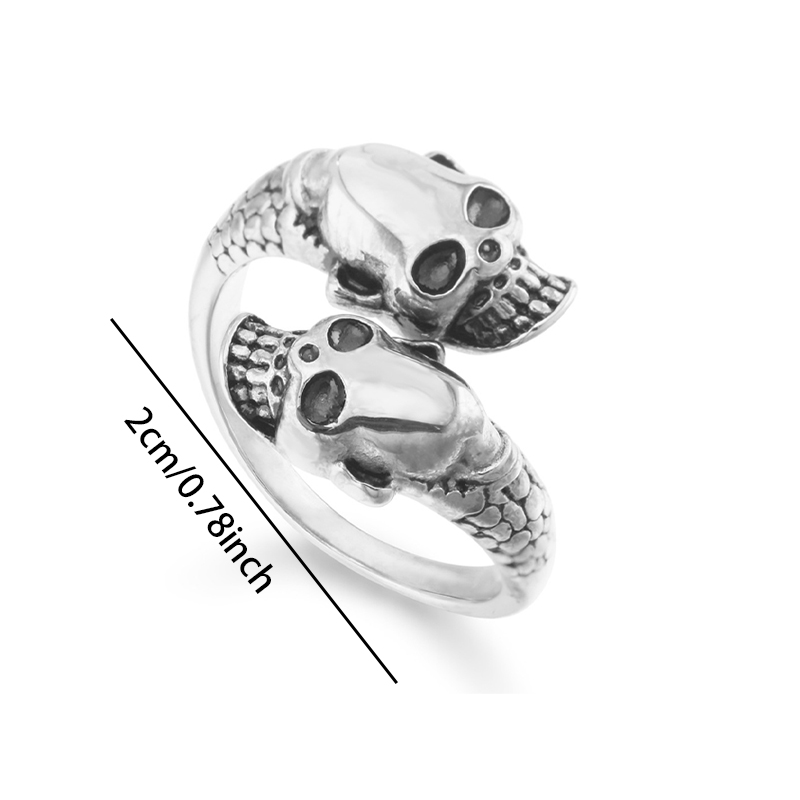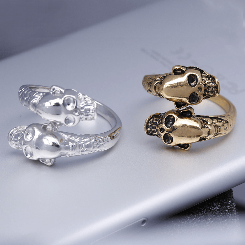 Add a touch of punk and gothic flair to your style with this vintage-style double skull head ring. This ring features an exaggerated design suitable for those who love bold statement pieces.