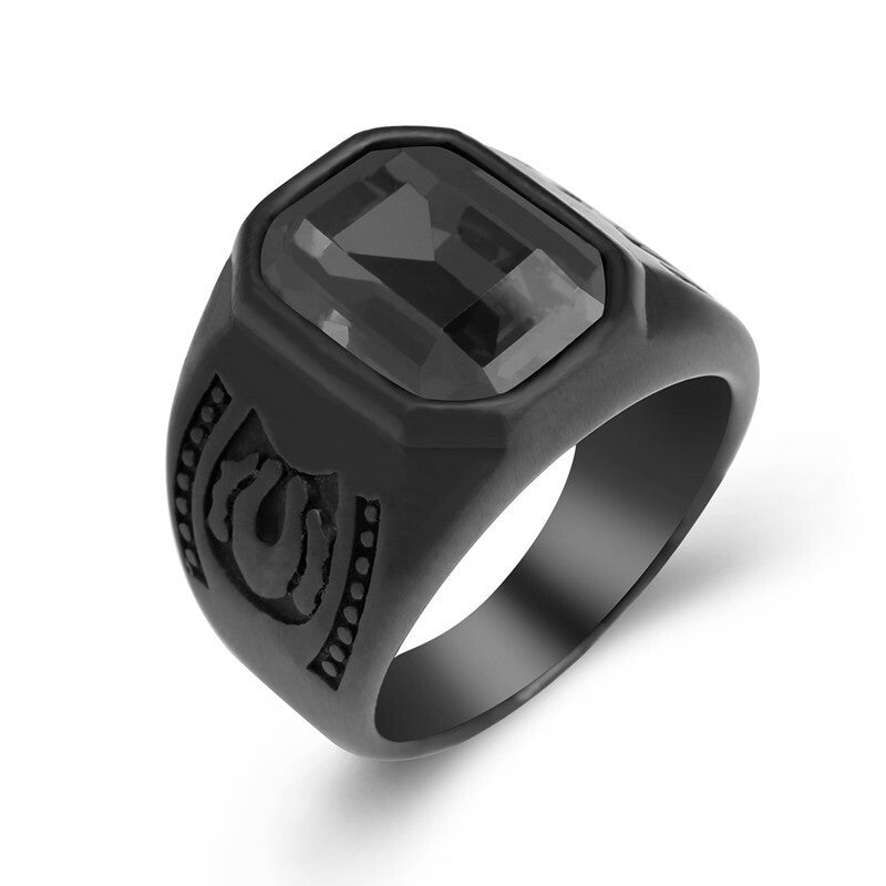 This vintage-style biker ring features a red crystal and zirconia stones. Crafted from high-quality stainless steel, this ring exudes a bold and edgy look.