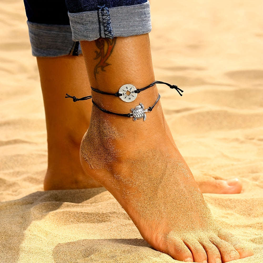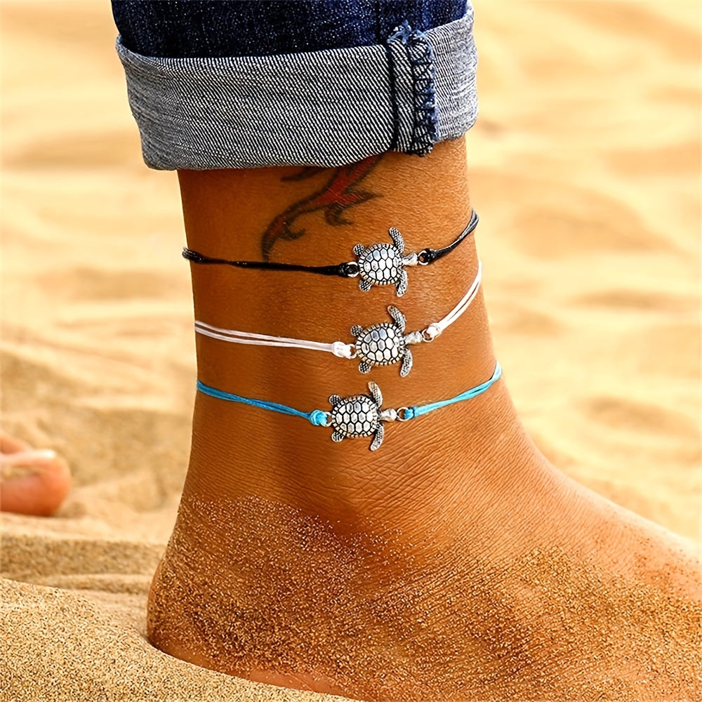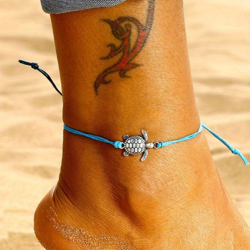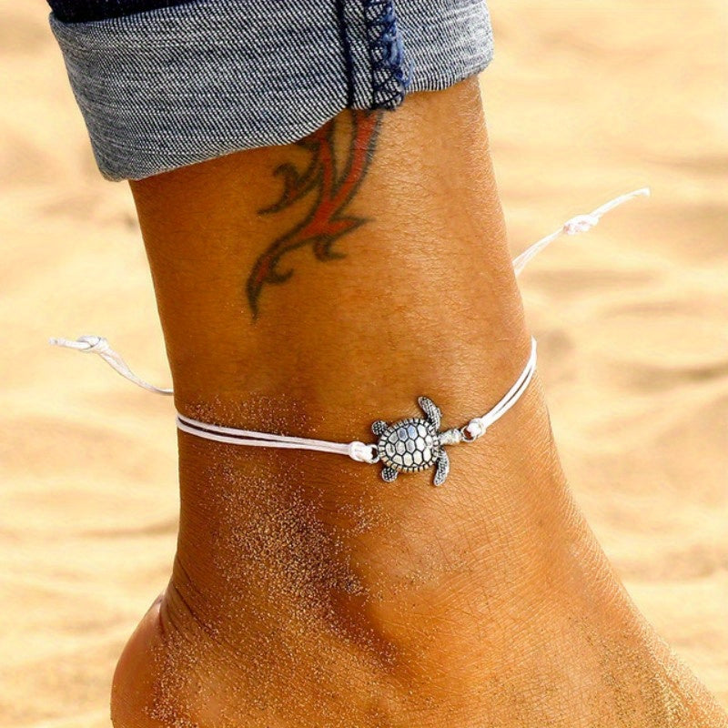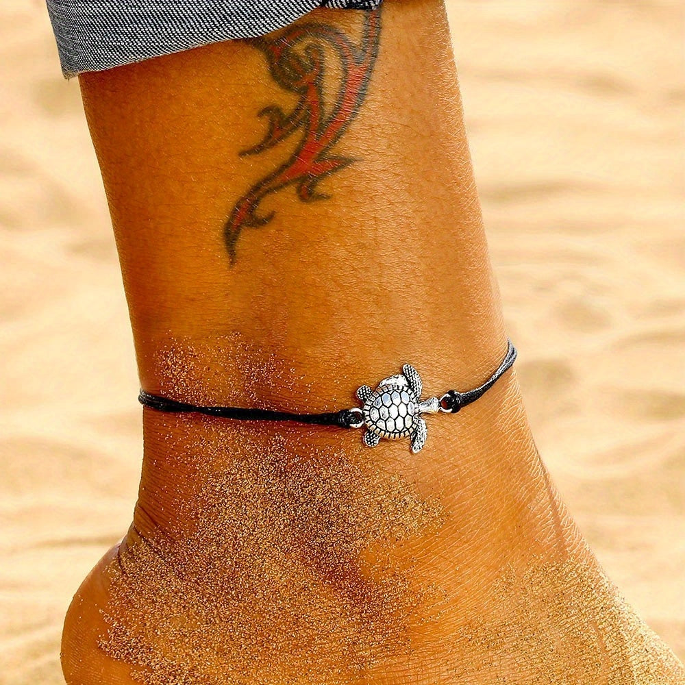 Add a touch of vintage charm to your ankle with this waterproof PU leather anklet featuring a turtle pendant. Perfect for beach days or everyday wear.