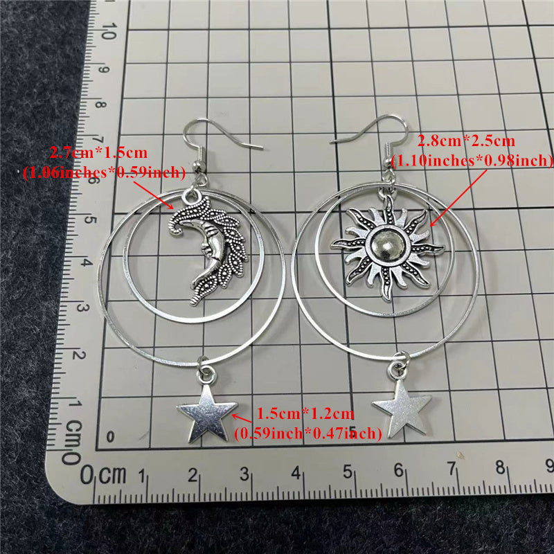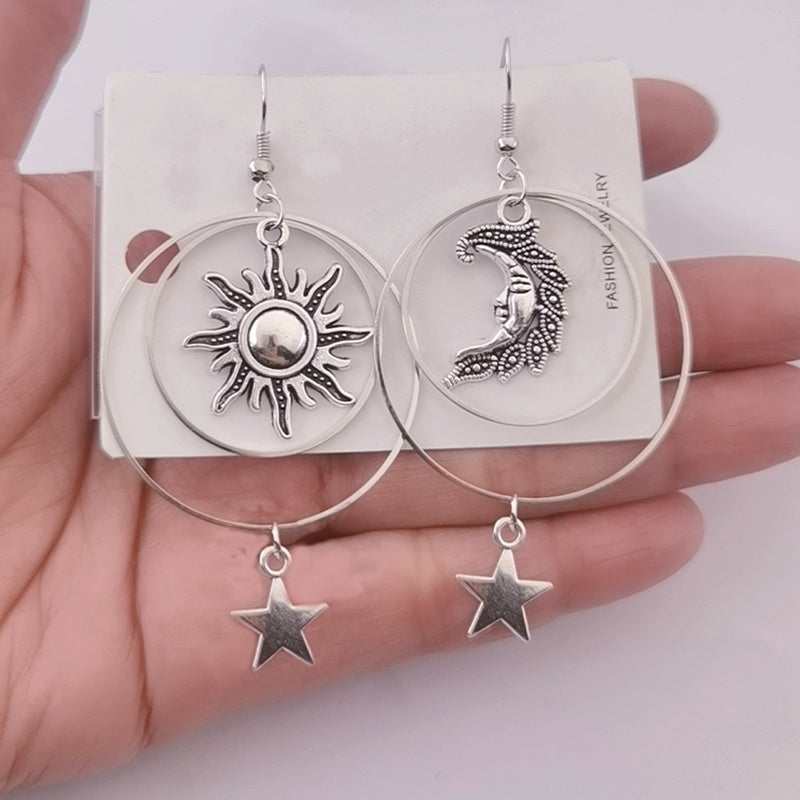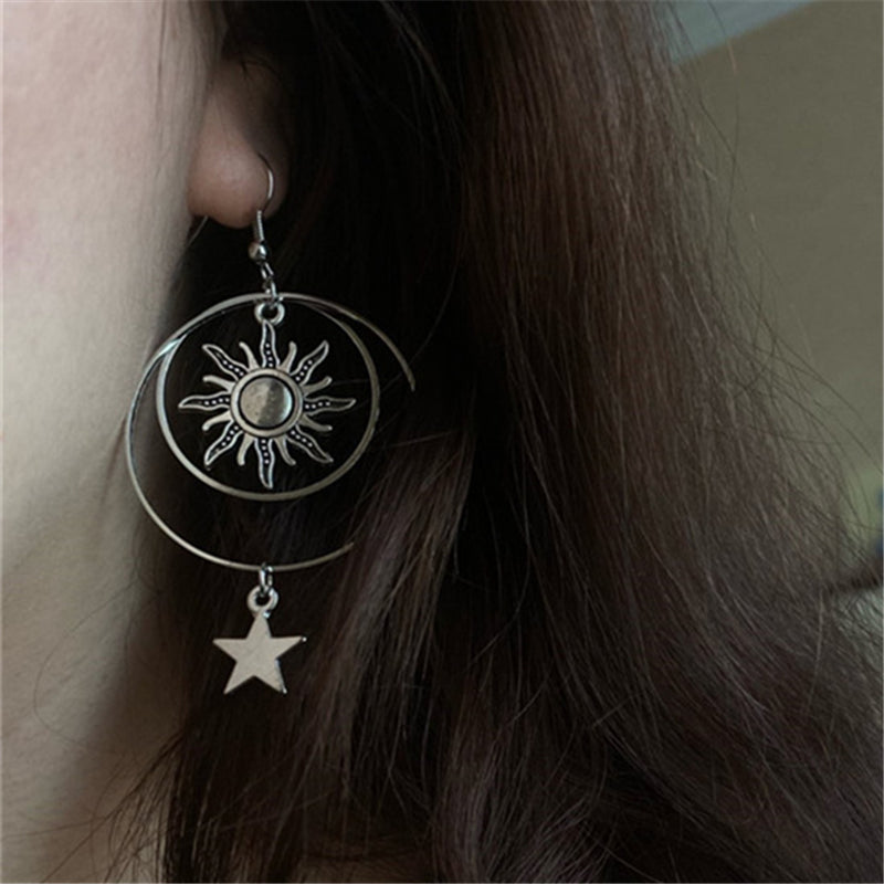 Vintage Sun Moon Pentagram Earrings Female Gift