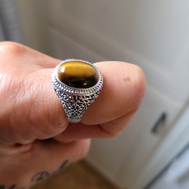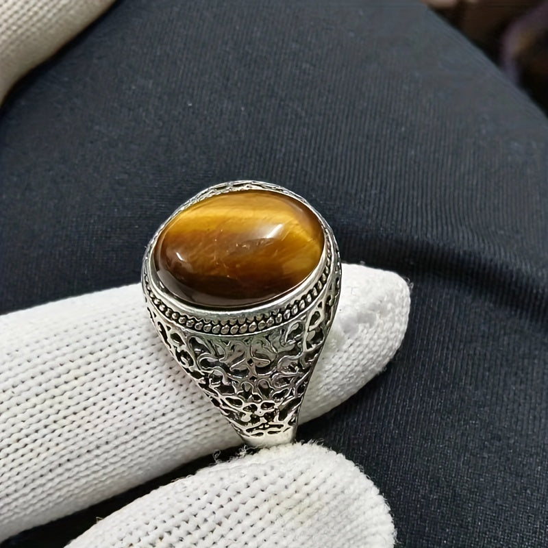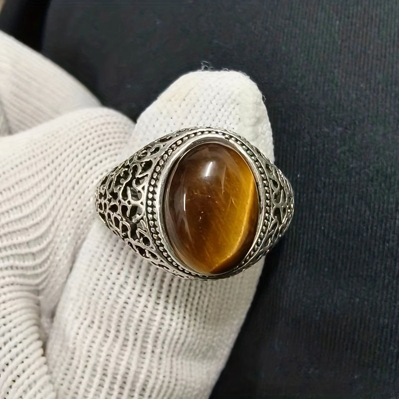 This vintage tiger eye stone ring is a unique piece that combines denim and elegance. Perfect for bridal wear or as a gift for birthdays or anniversaries.