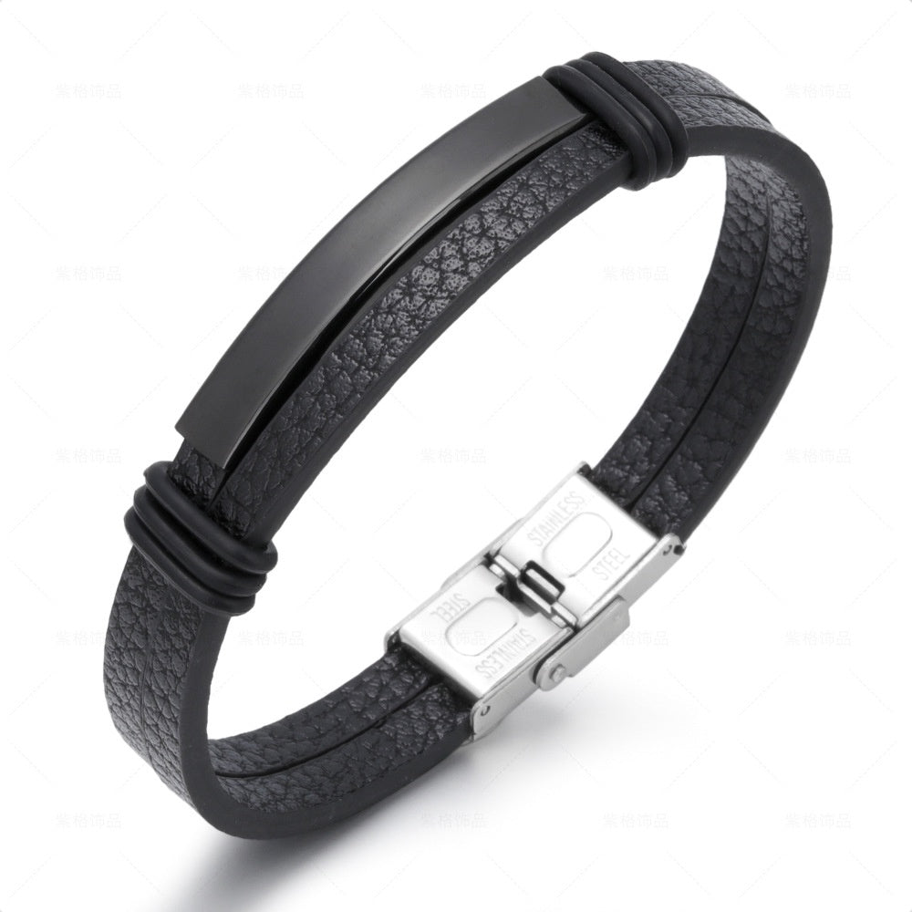 This one-of-a-kind bracelet combines titanium steel with leather for a rugged and stylish look. Ideal for couples who want to show off their love in a unique way.