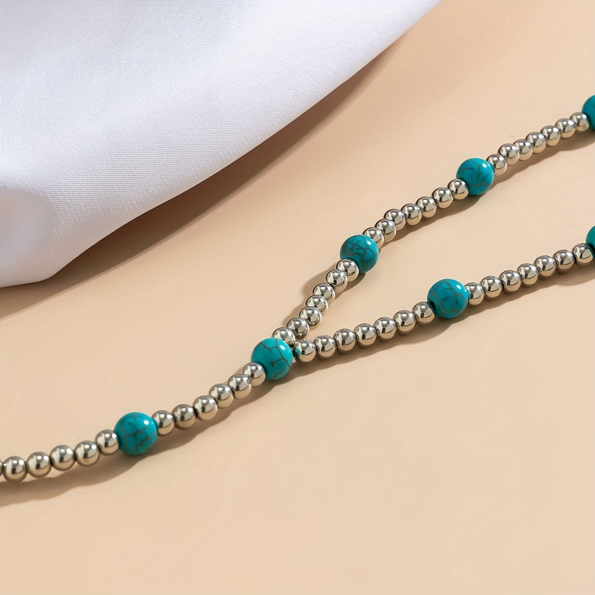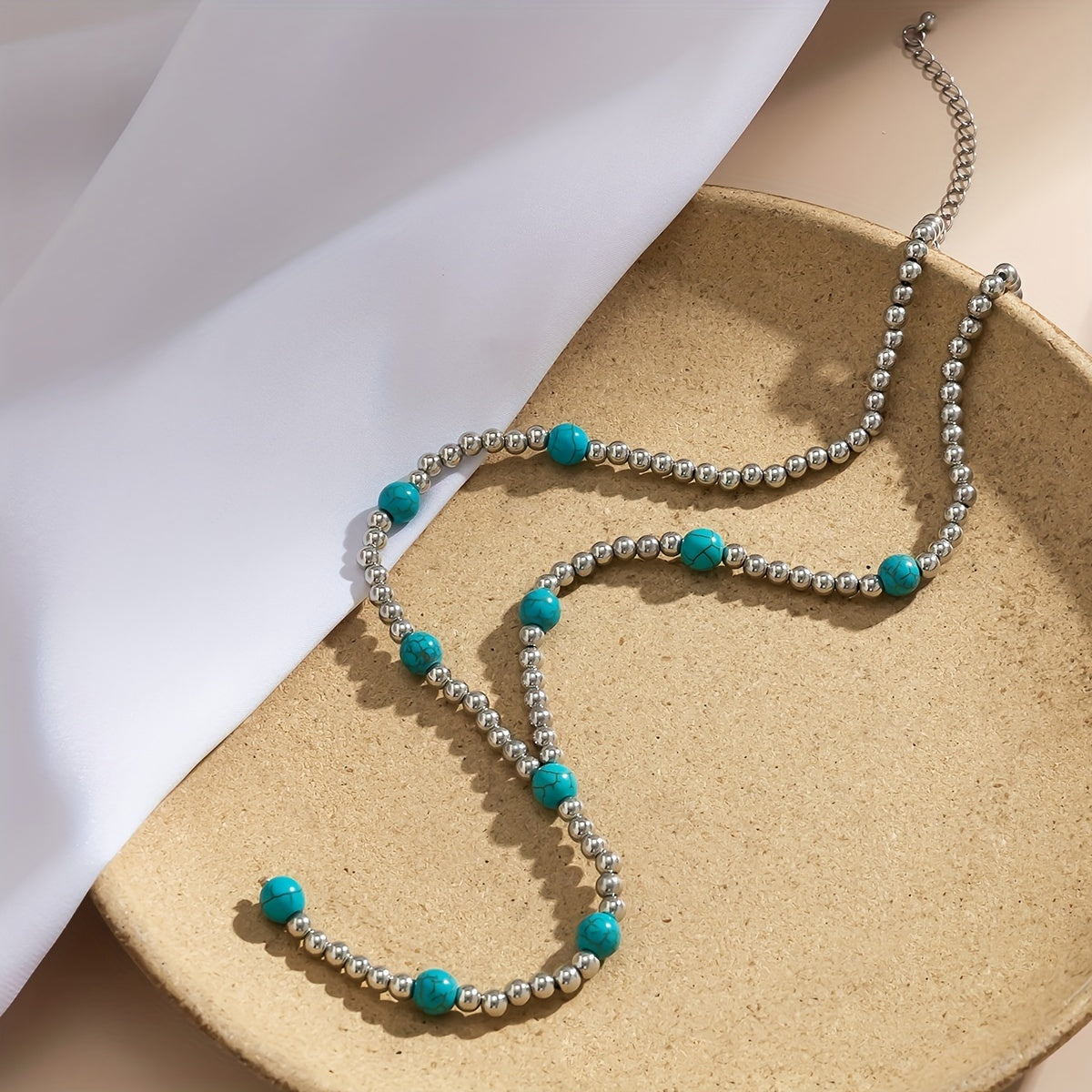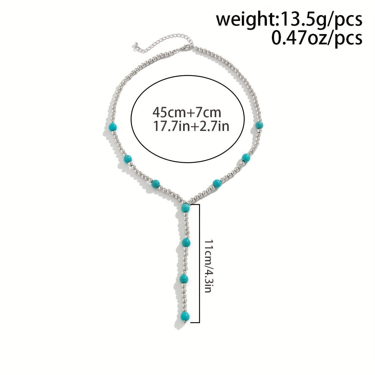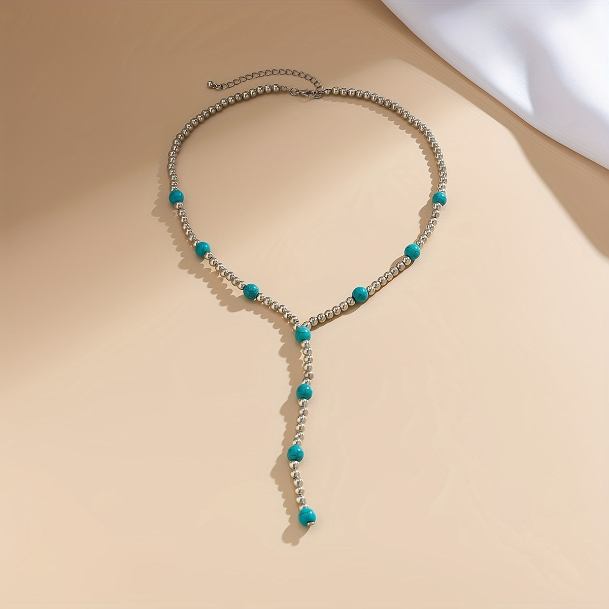 Add a touch of retro style to your outfit with this Y-shaped necklace featuring turquoise beads and a long tassel. Makes a great gift for any occasion.