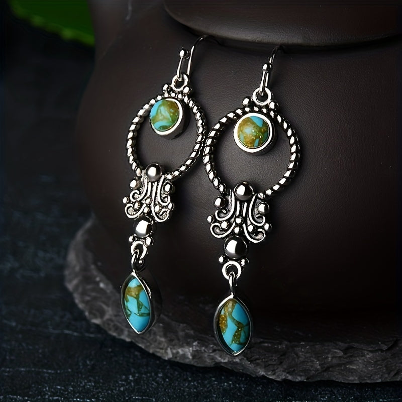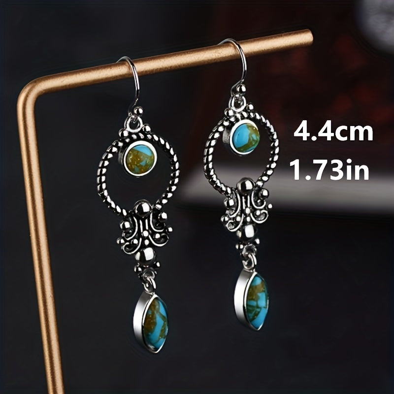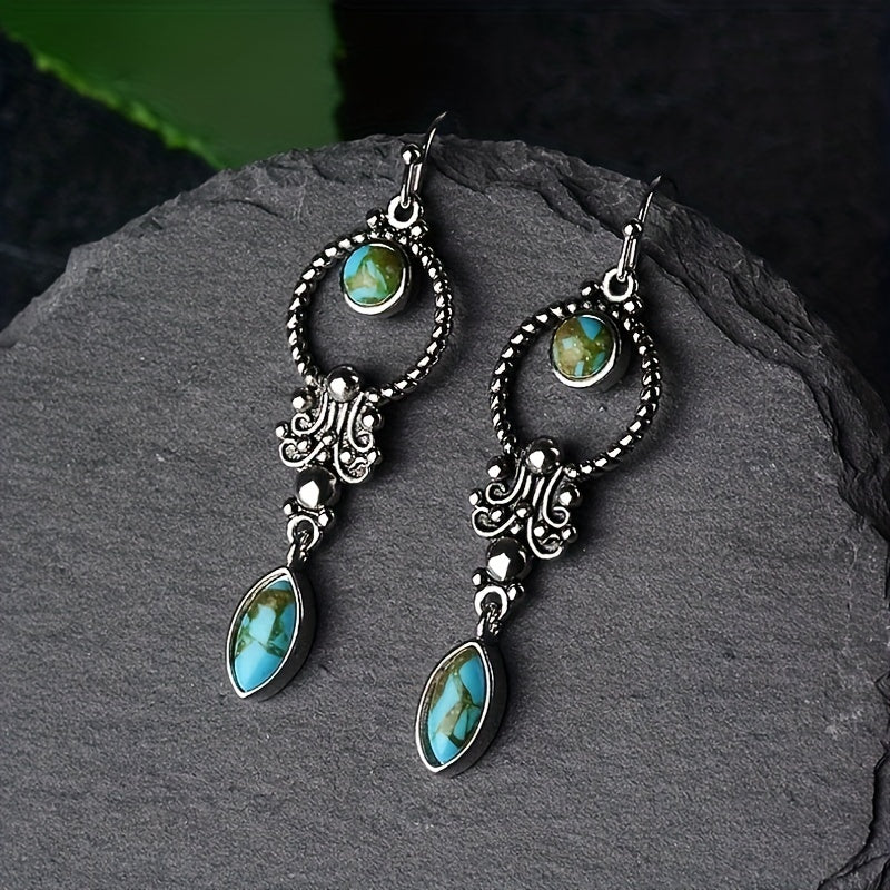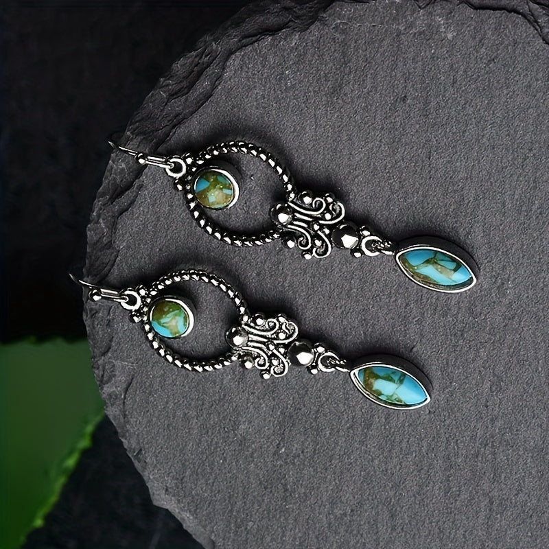 These vintage turquoise inlaid earrings are a charming addition to your jewelry collection. Crafted with intricate detailing and a vibrant turquoise color, these earrings are sure to make a statement.