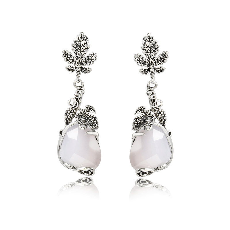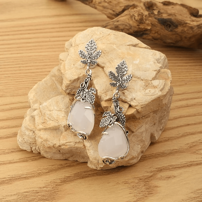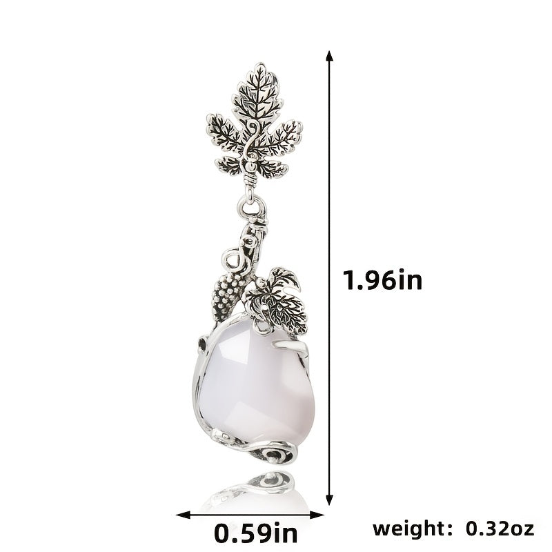 Add a touch of nature-inspired elegance to your look with these vintage water droplets stone earrings. The silver metal is intricately carved with delicate leaves, resembling a beautiful maple leaf design.