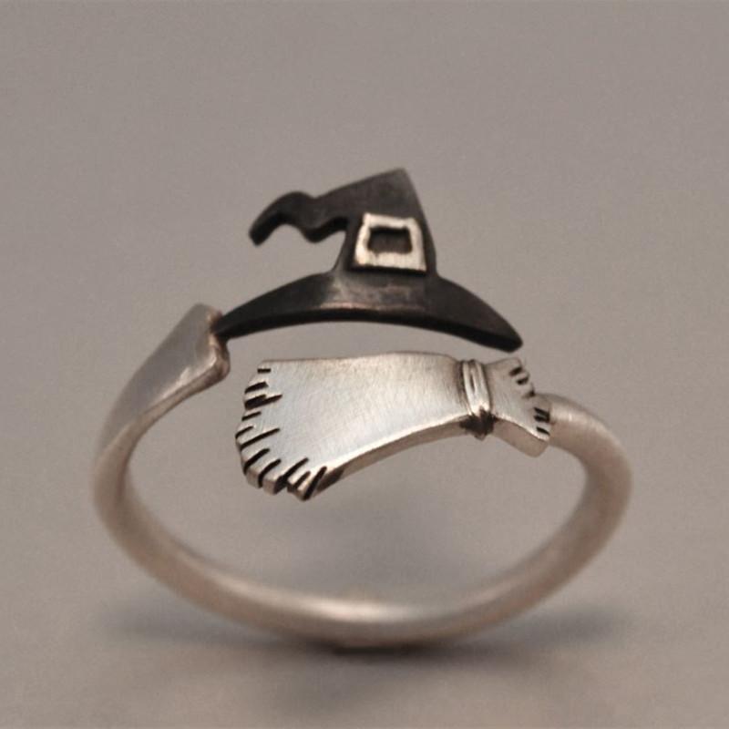 This classic vintage witch hat ring features an alloy design, making it a unique and stylish accessory for casual parties. It is adjustable to fit different finger sizes, making it a versatile and trendy piece of jewelry.