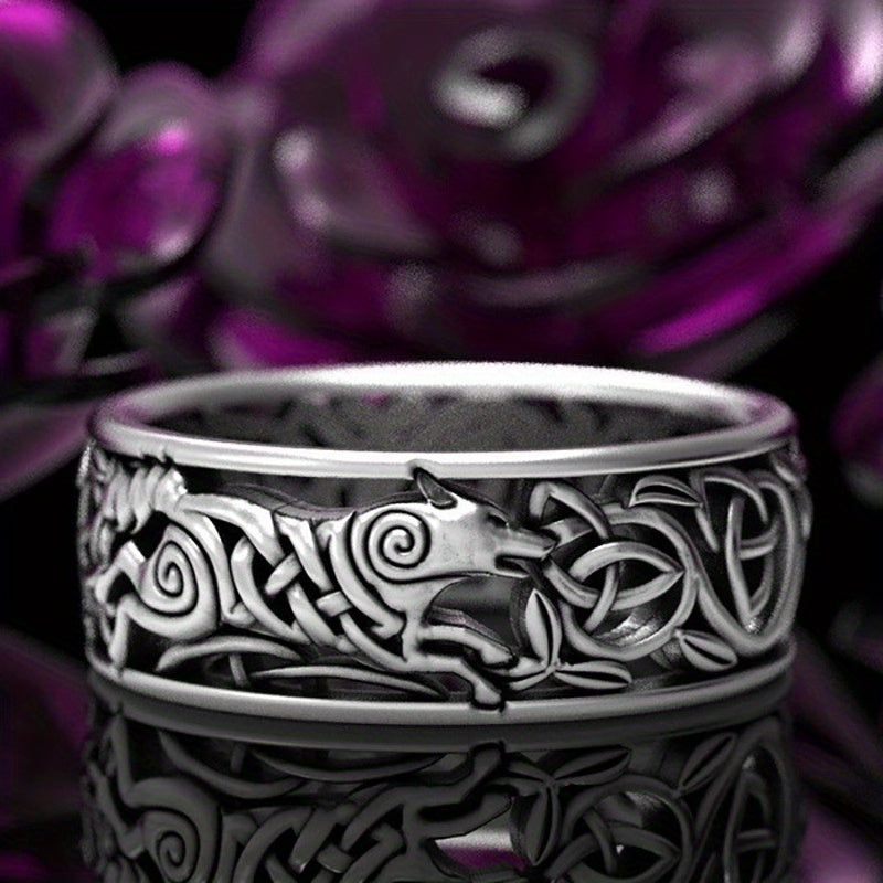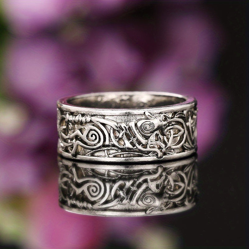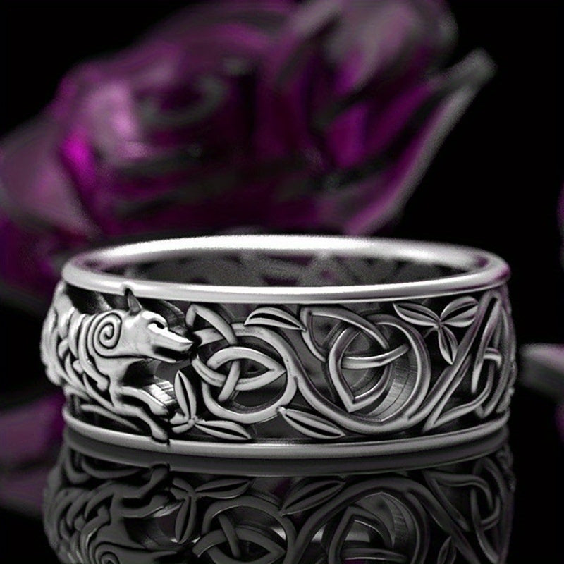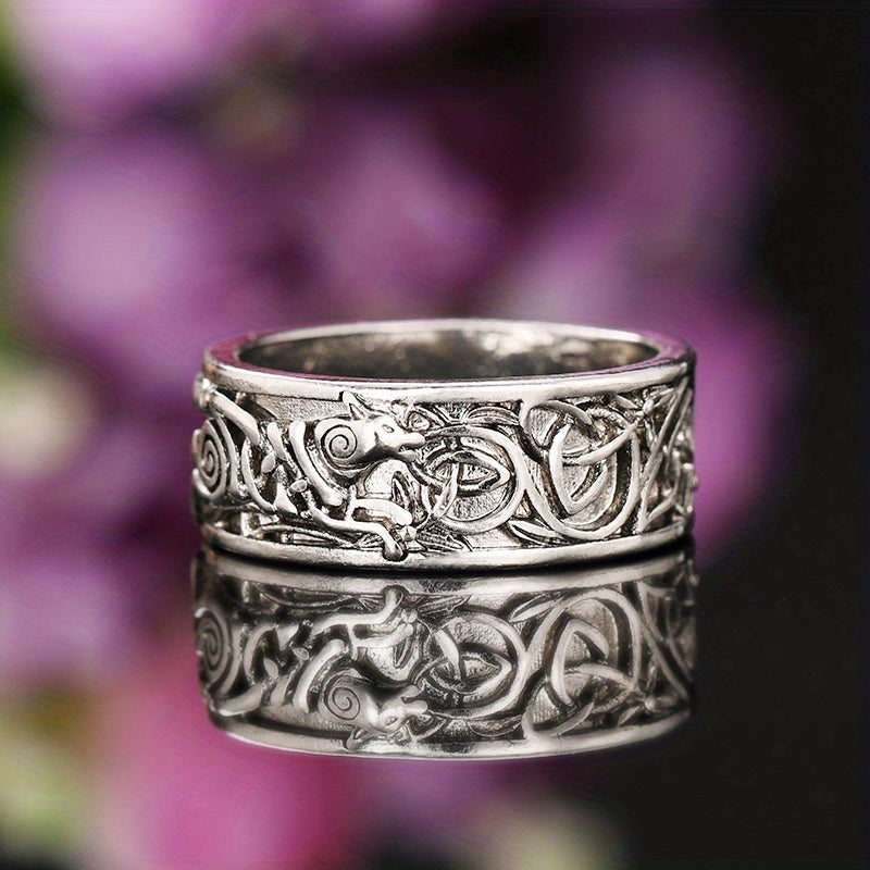 Add a touch of edgy style with this vintage wolf Celtic ring. Made of 925 silver plated material, this ring is perfect for hip hop and punk styles.