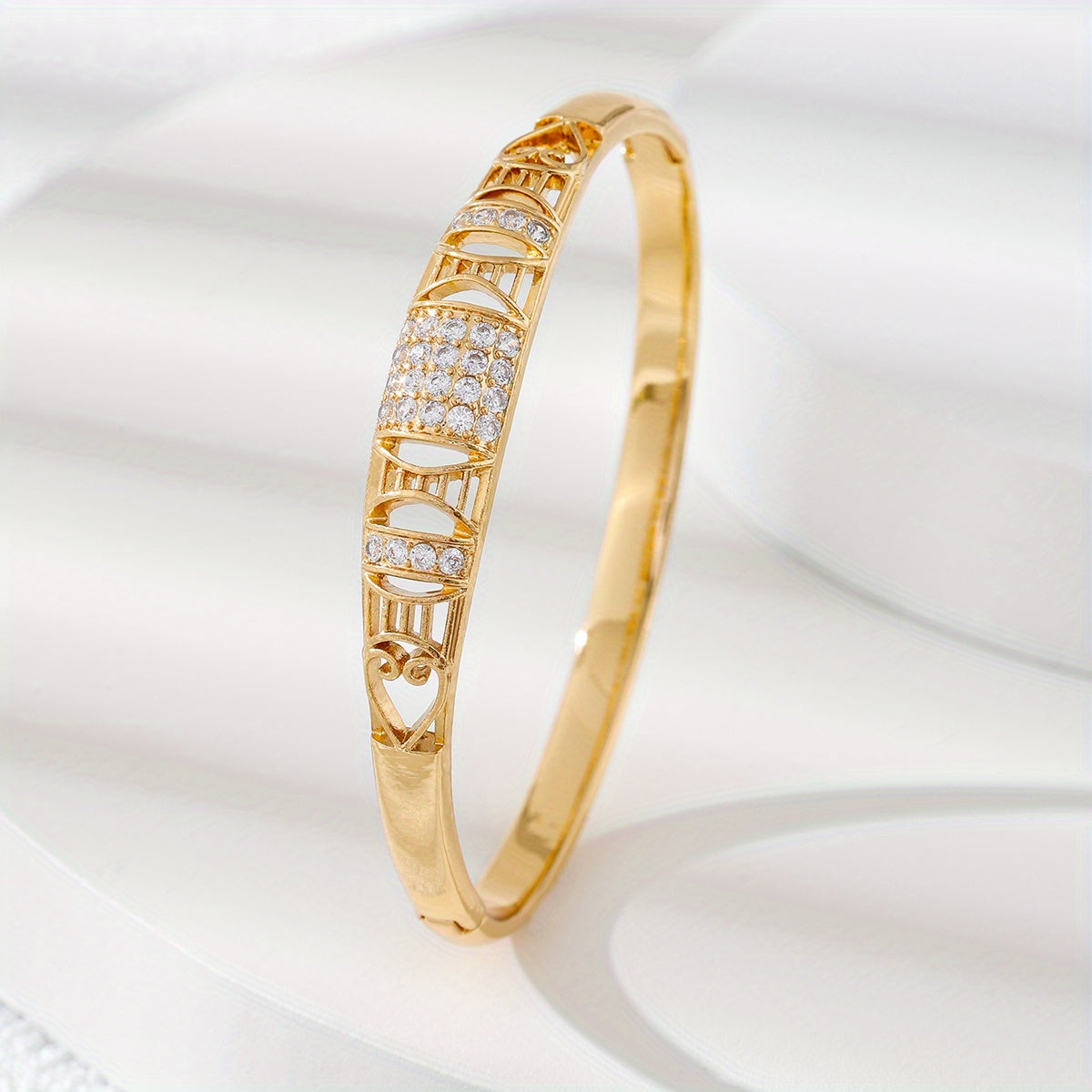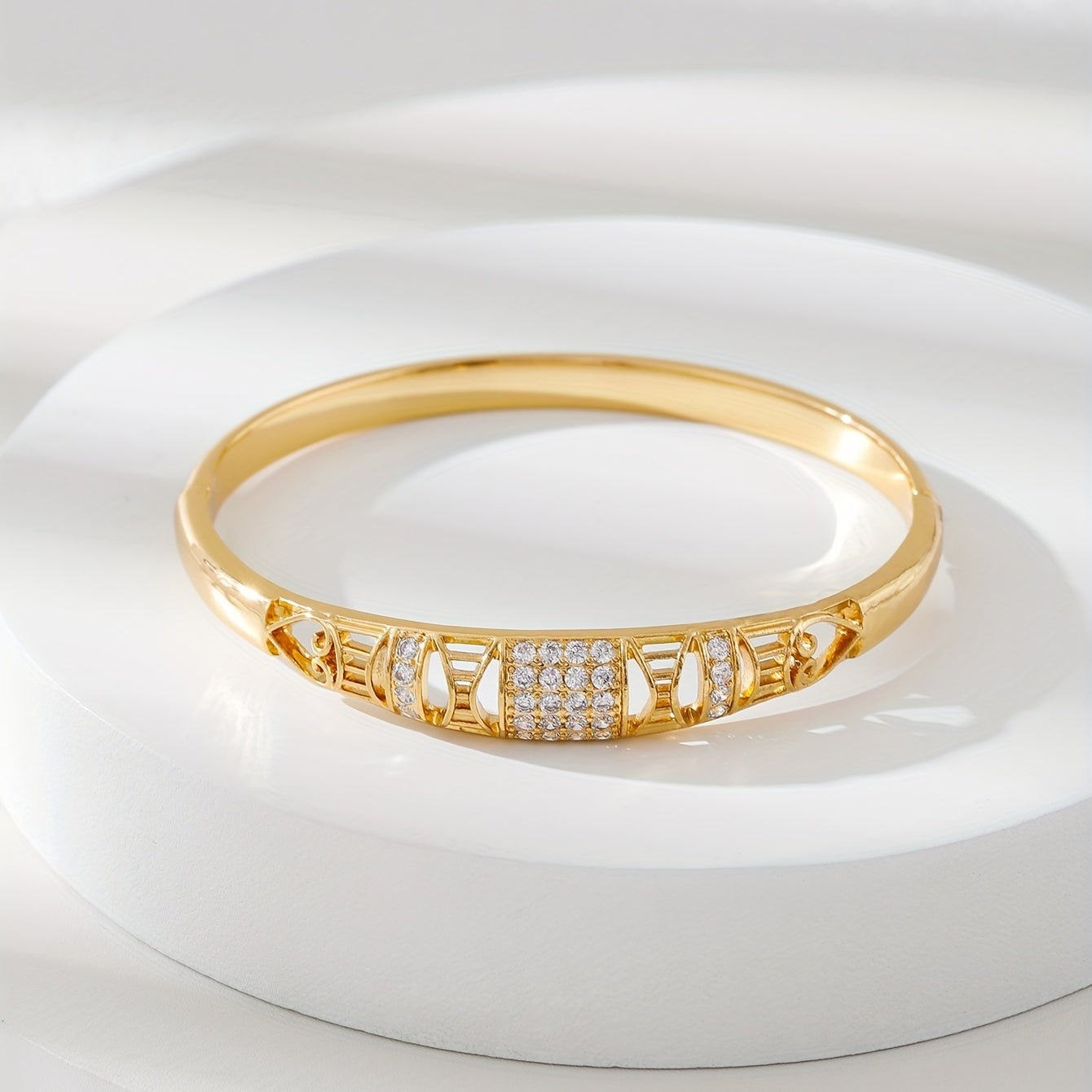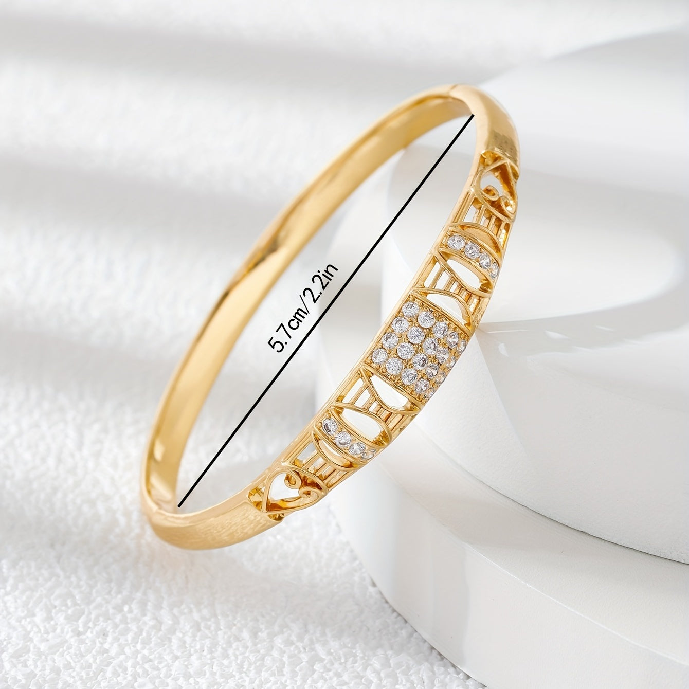 Add a touch of elegance to your outfit with this vintage bangle bracelet featuring inlaid zircon. Made of high-quality copper, this bracelet is a perfect accessory for any occasion.