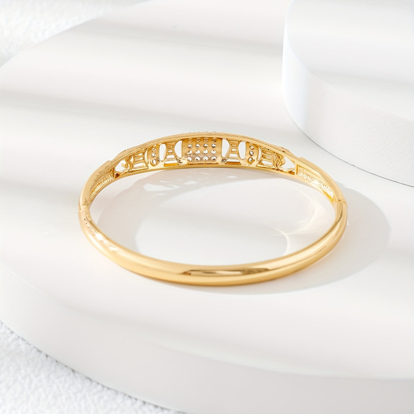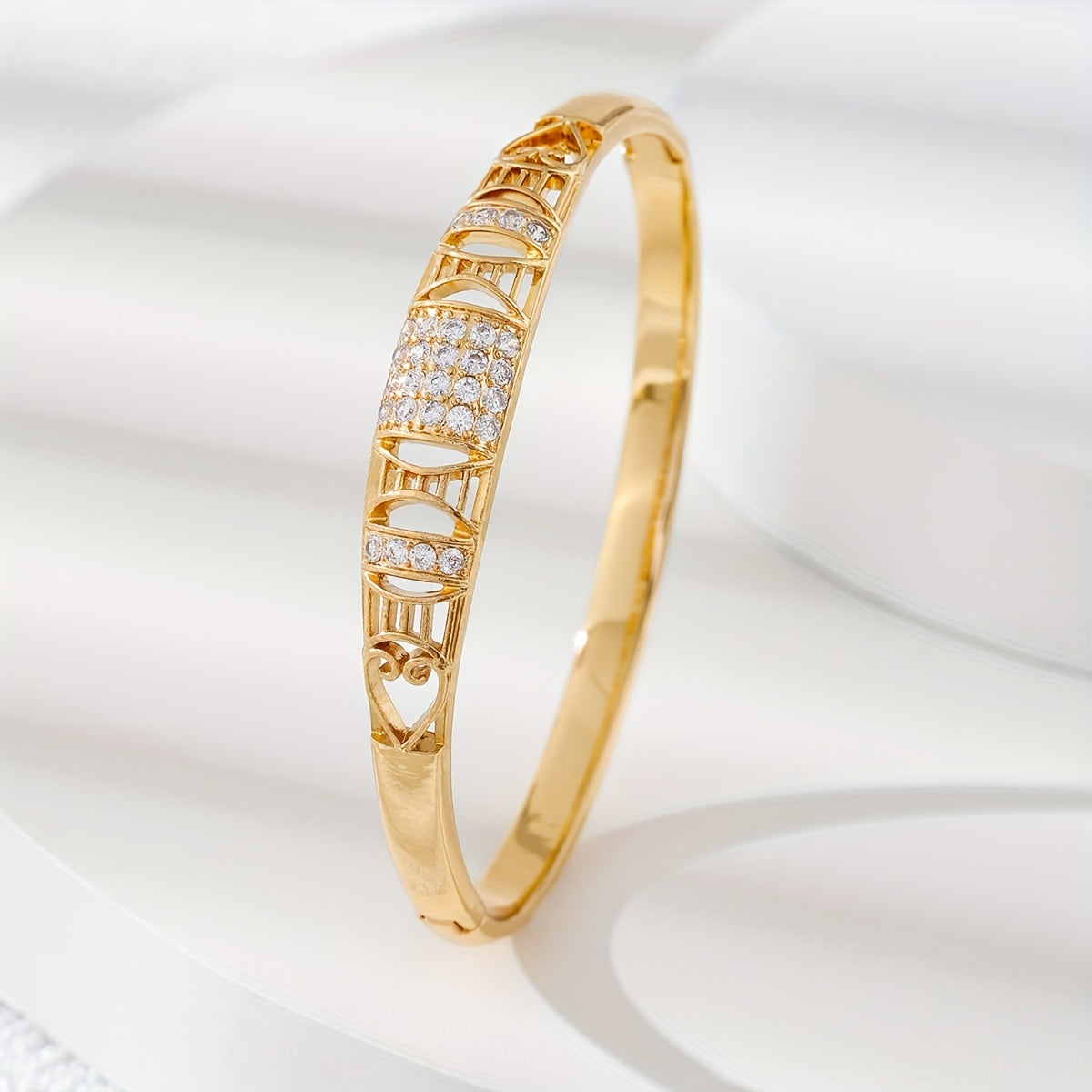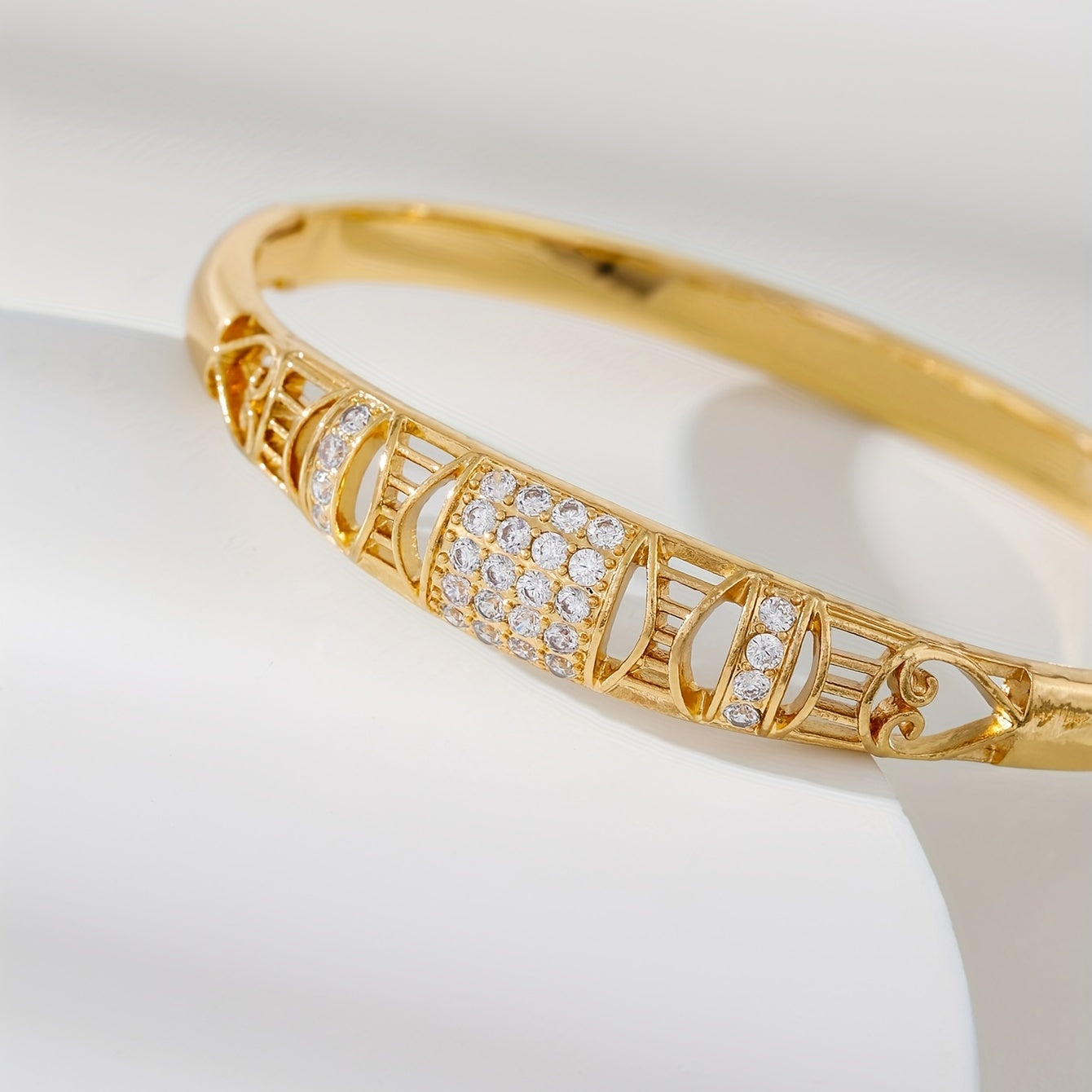 Add a touch of elegance to your outfit with this vintage bangle bracelet featuring inlaid zircon. Made of high-quality copper, this bracelet is a perfect accessory for any occasion.