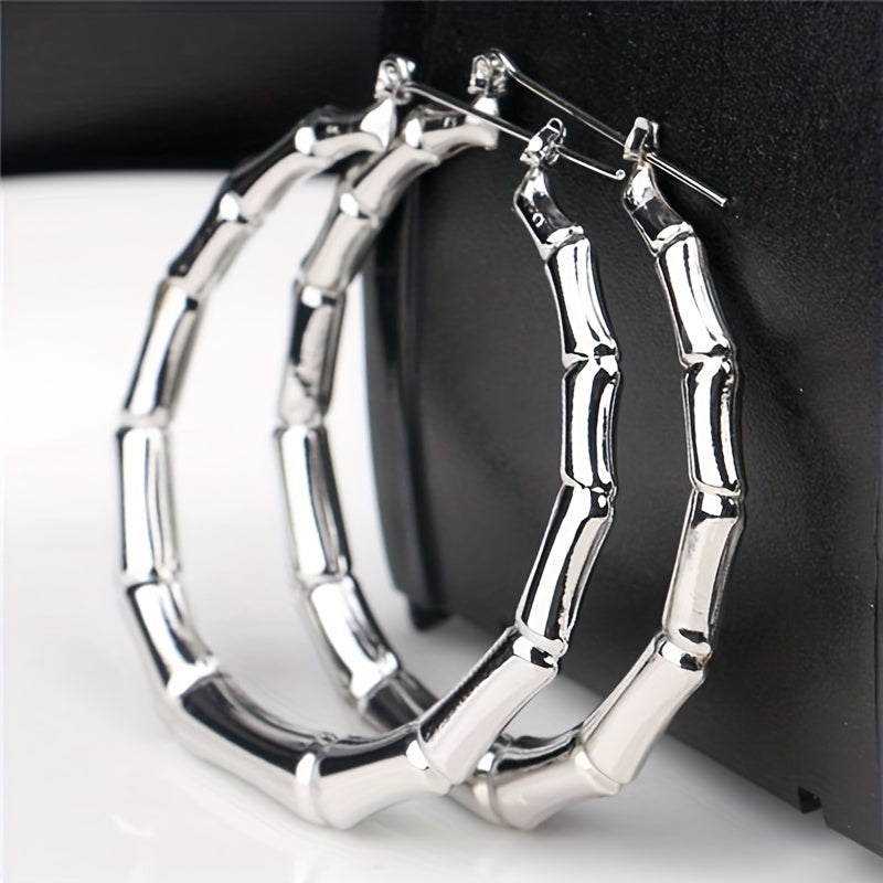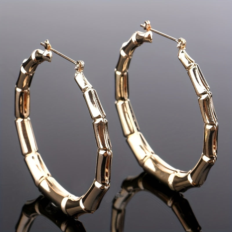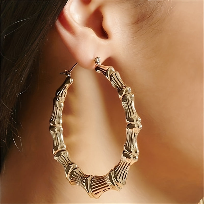 Make a statement with these exaggerated bamboo hoop earrings that are perfect for parties and special occasions.