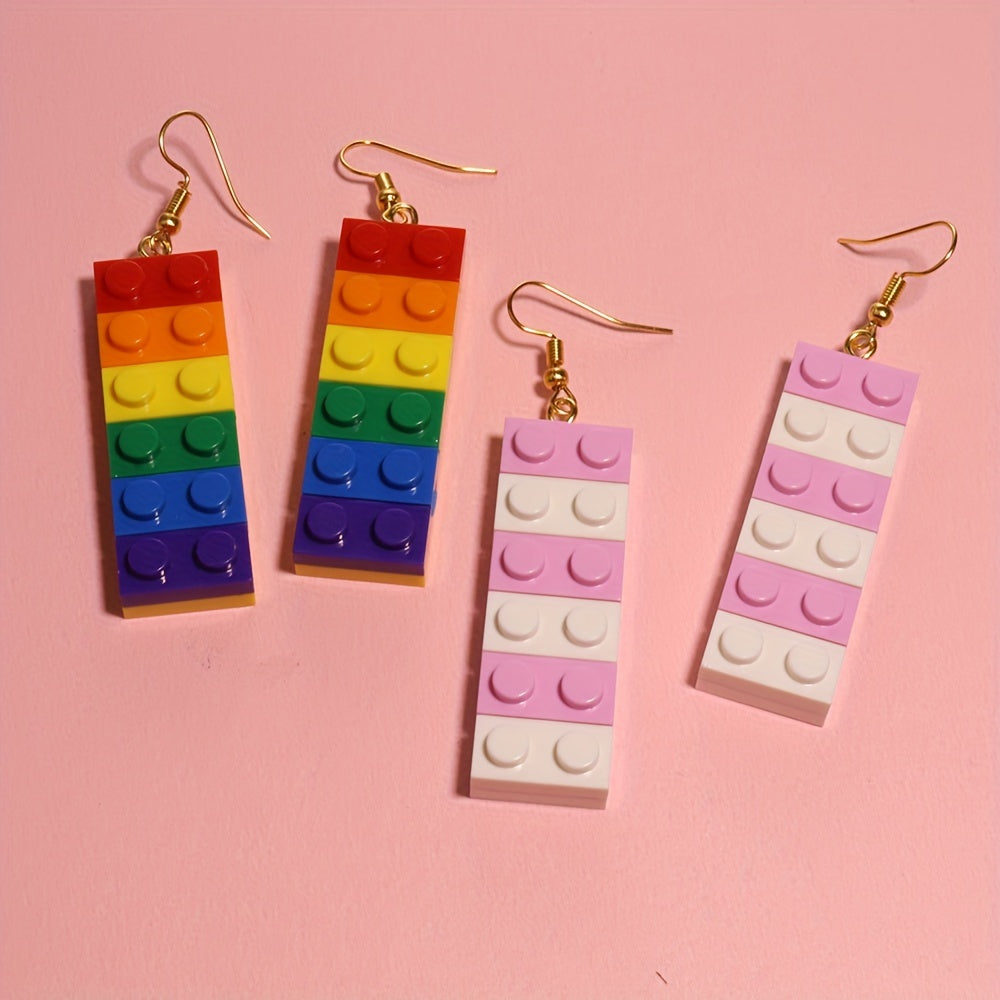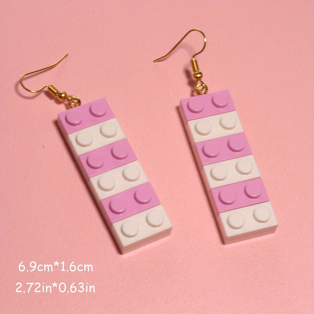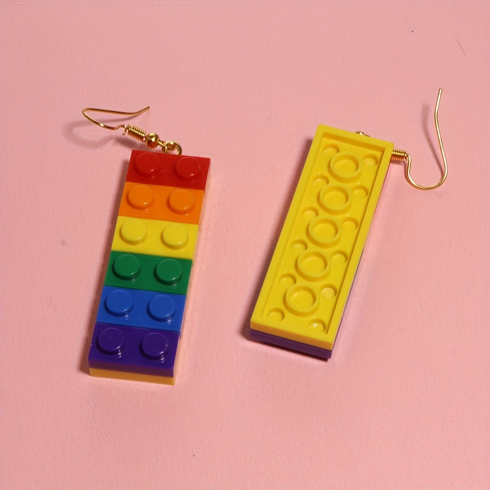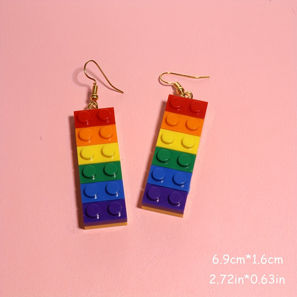 Add a pop of color to your outfit with these fun and vibrant brick drop earrings. Perfect for adding a touch of whimsy to any look.