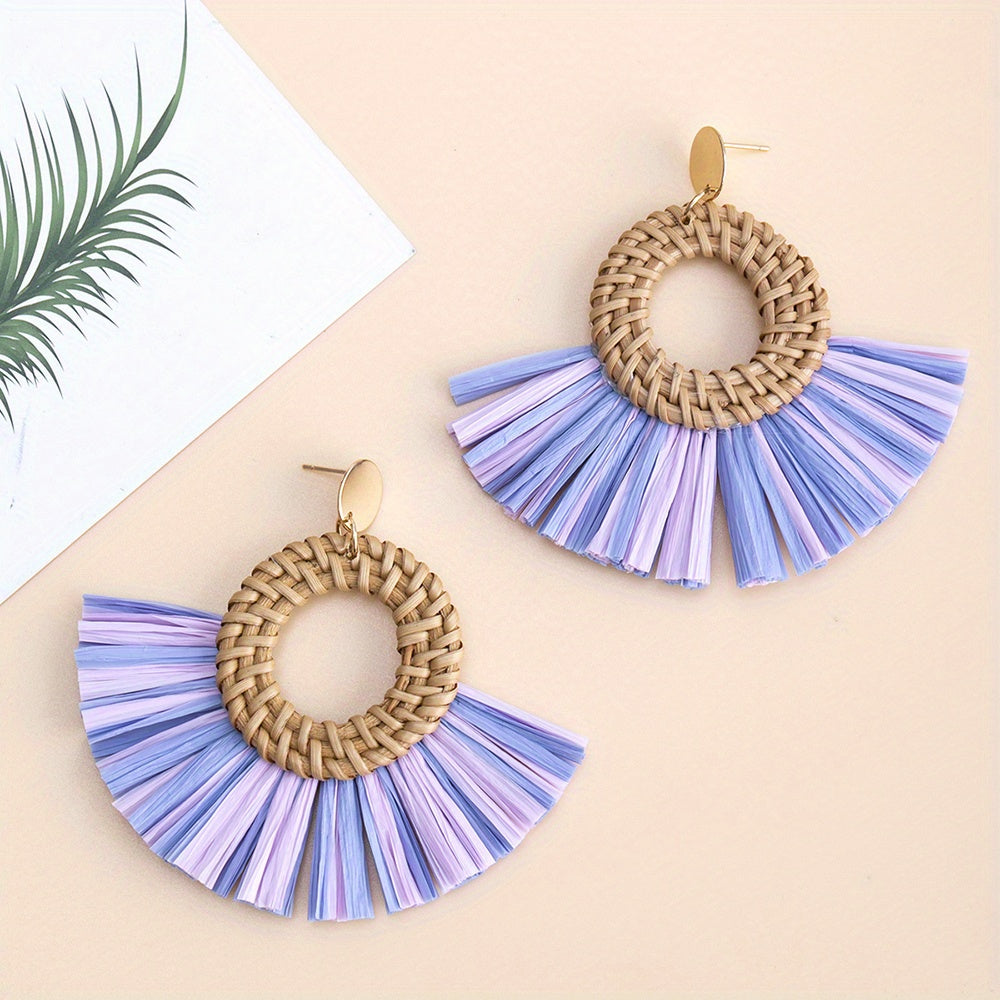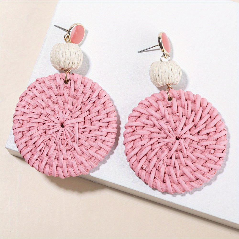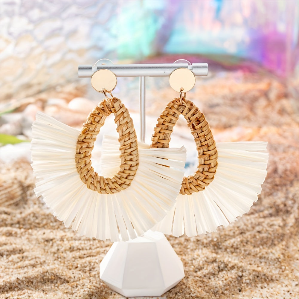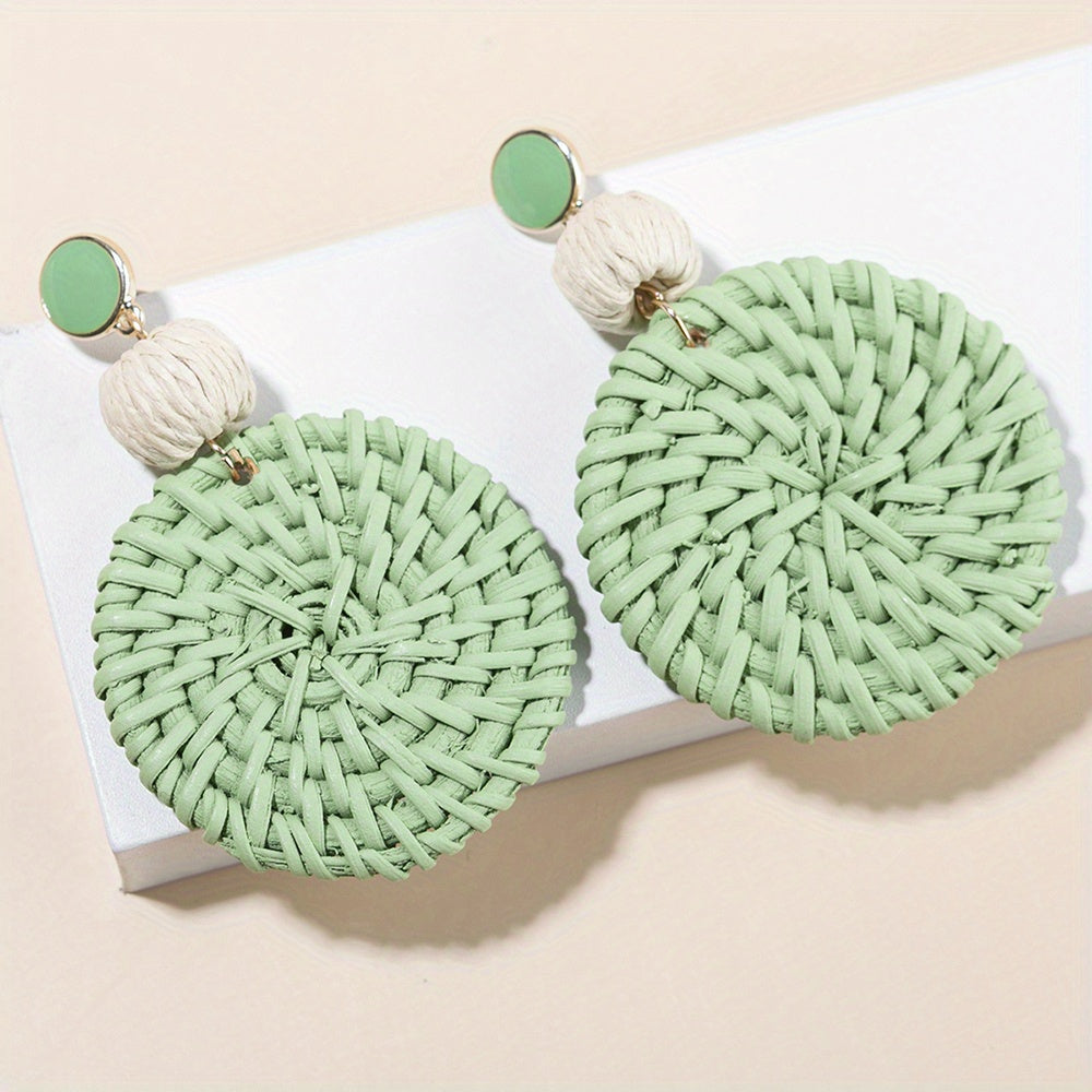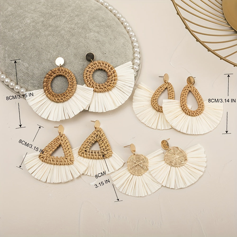 Wooden Raffia Dangle Earrings Bohemian Style Gift for Women Girls
