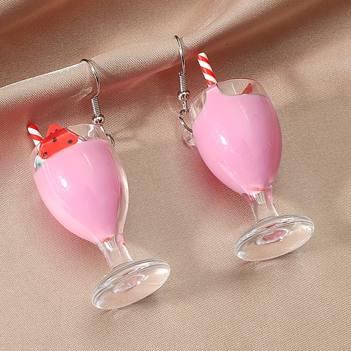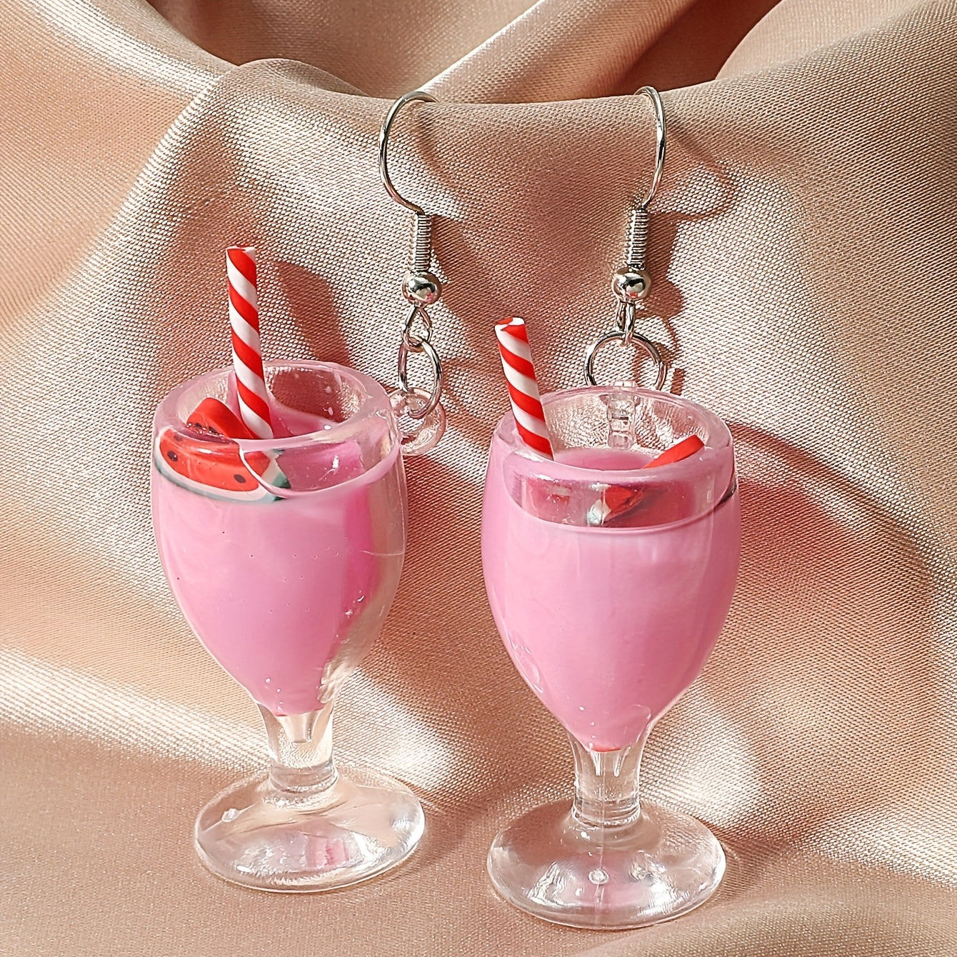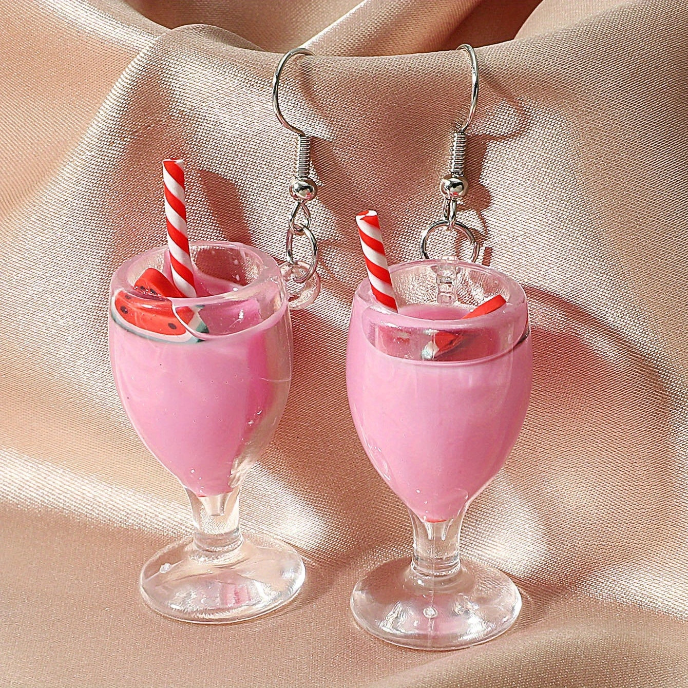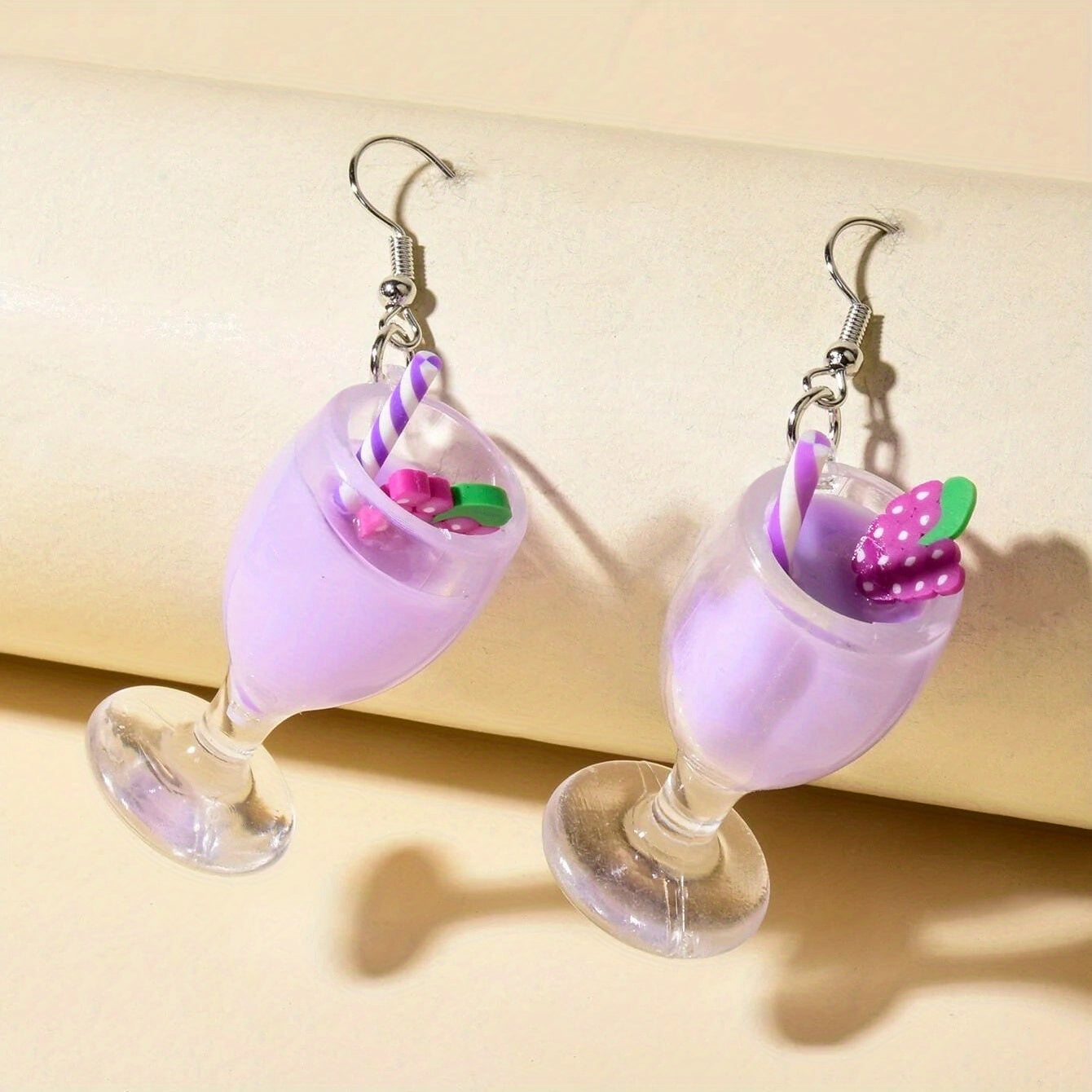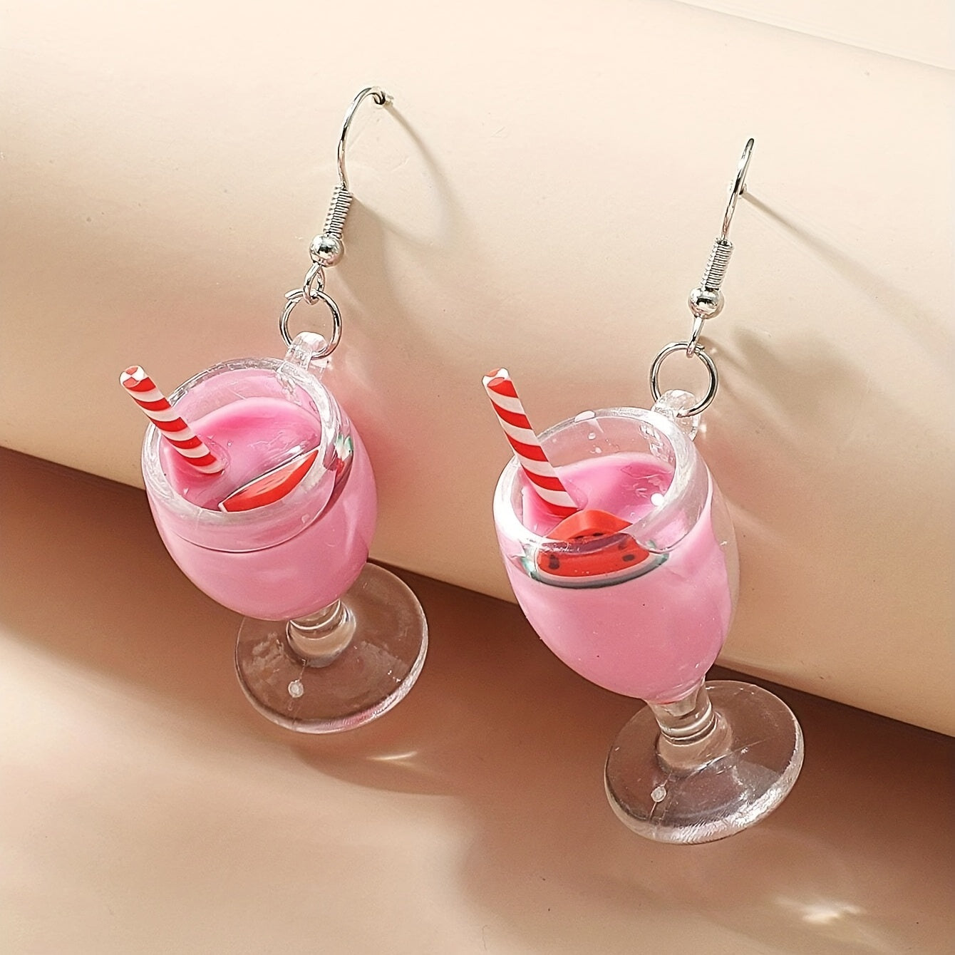 These dangle earrings are a quirky and fun accessory, featuring fruit milk tea cup designs. Choose from a variety of multicolor options to match any outfit.