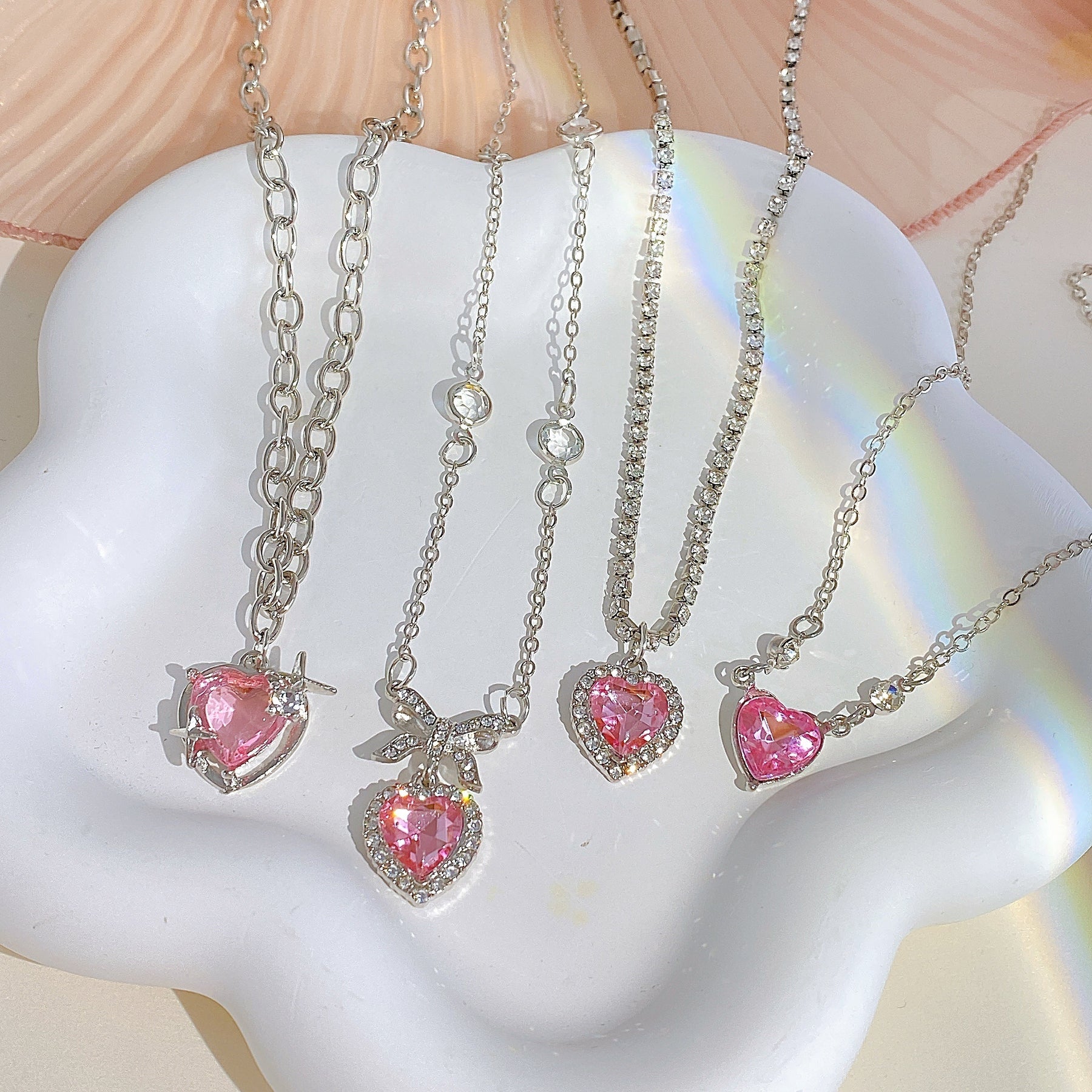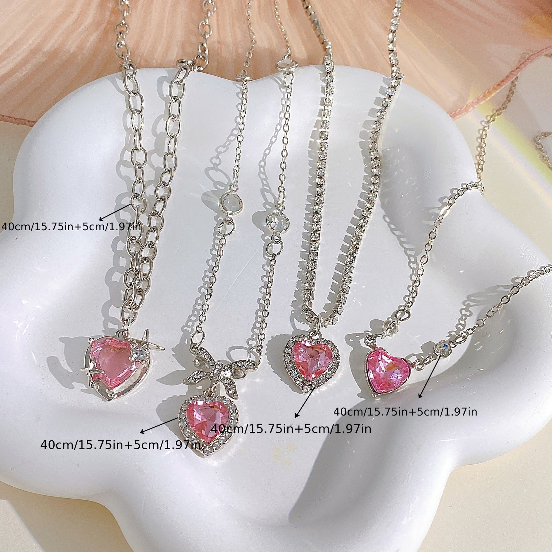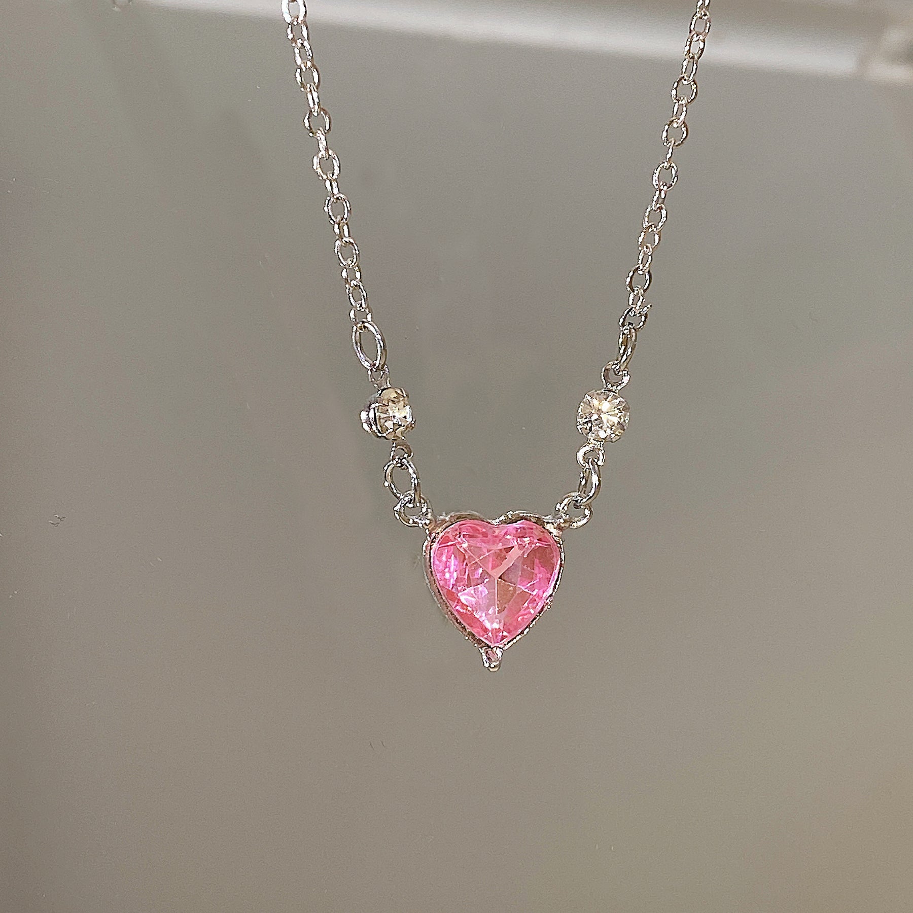 Add a touch of punk style to your look with this pink love heart zircon necklace and ear decoration set. Perfect for women and girls who want to make a statement.