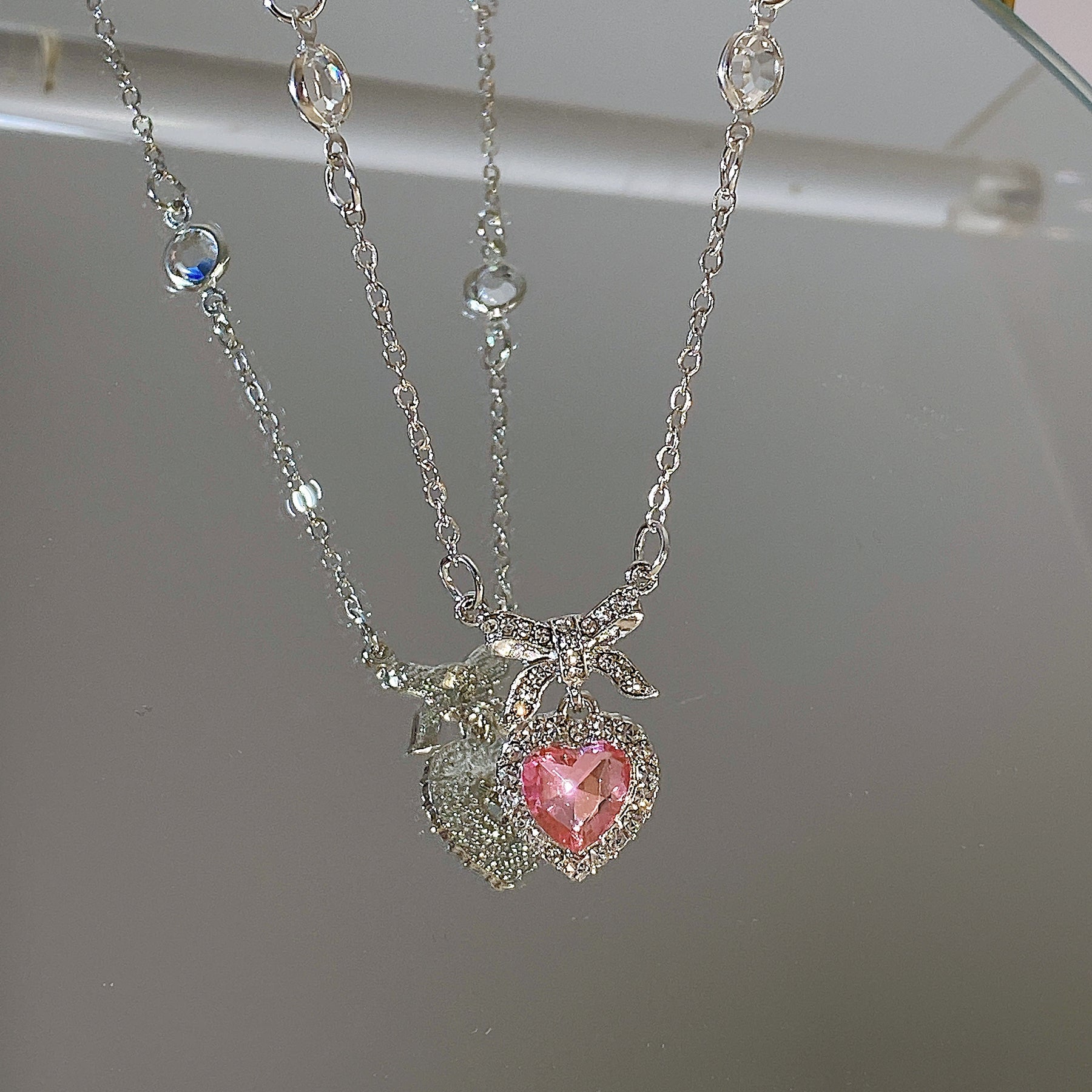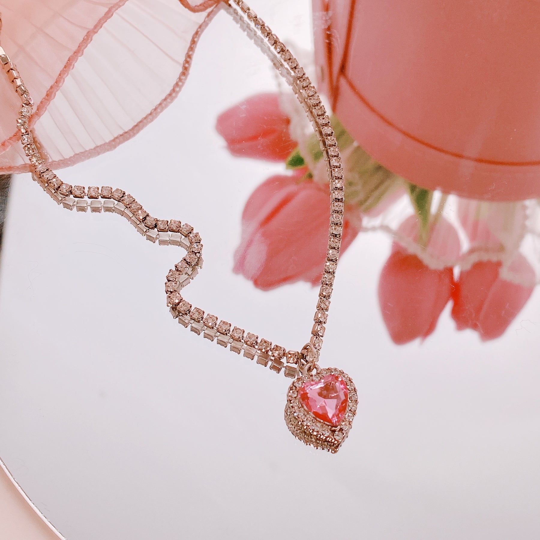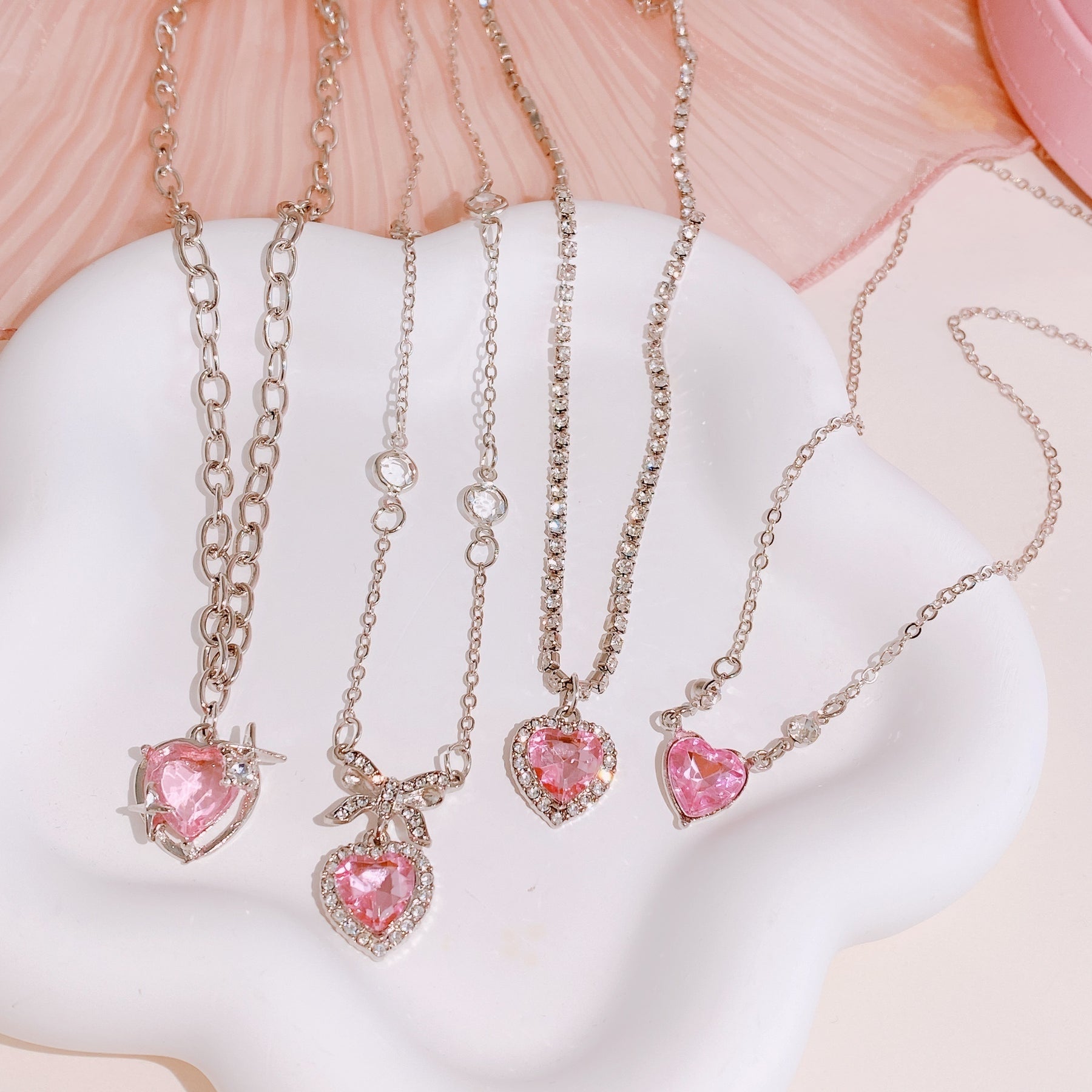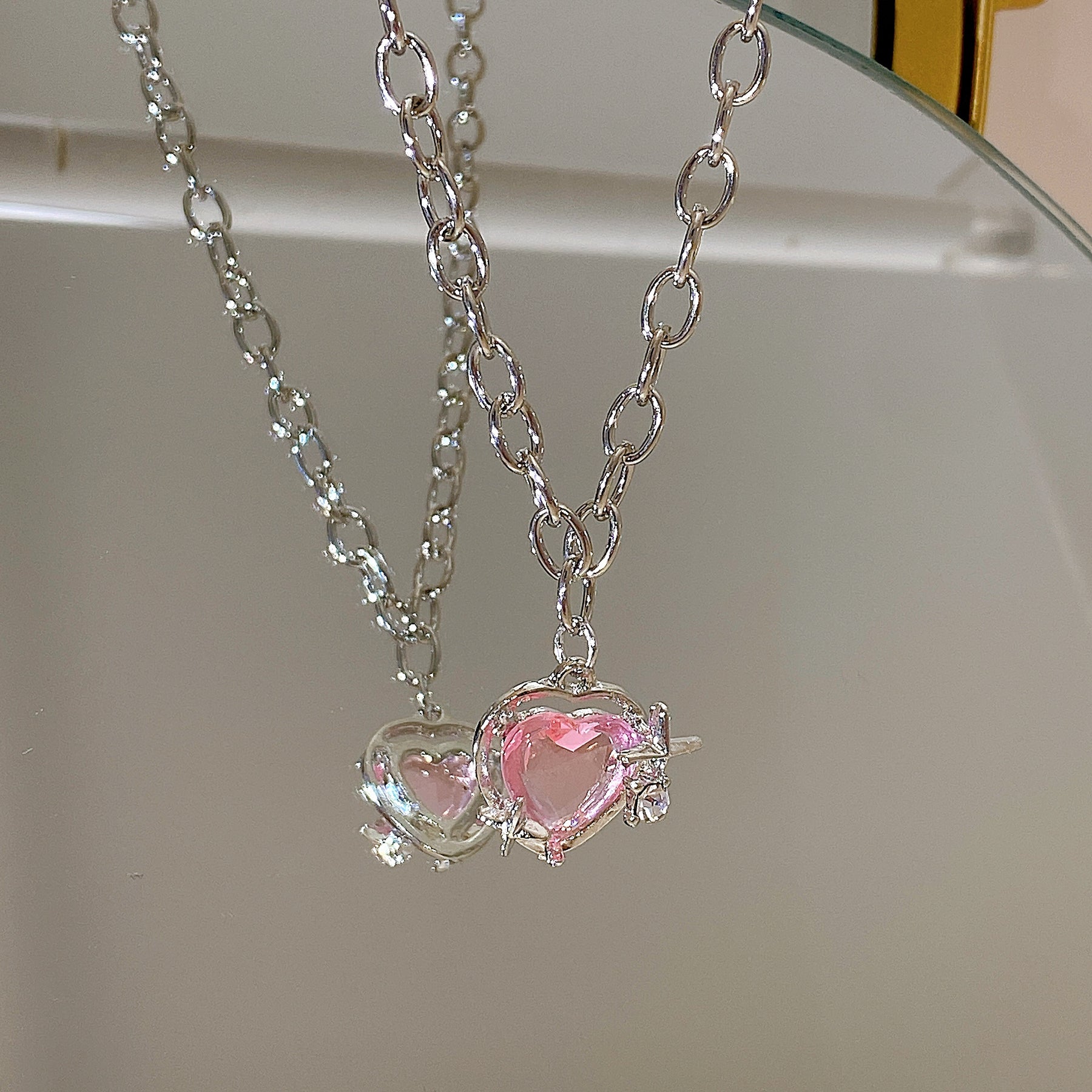 Add a touch of punk style to your look with this pink love heart zircon necklace and ear decoration set. Perfect for women and girls who want to make a statement.