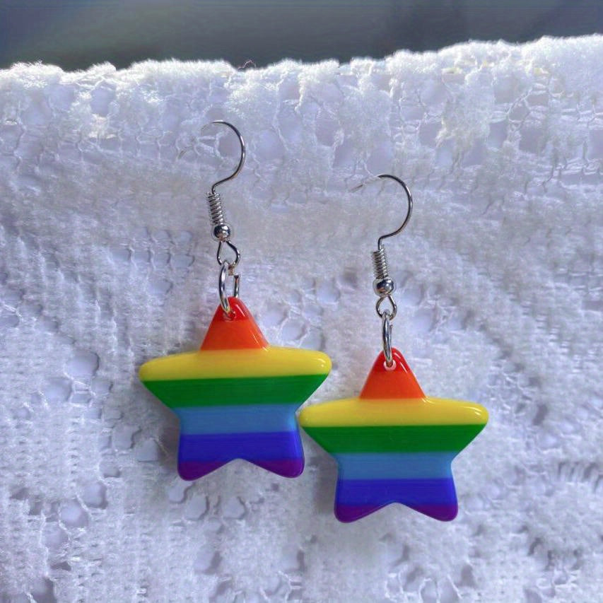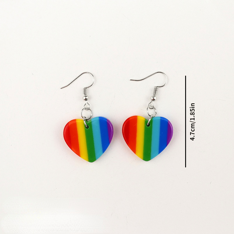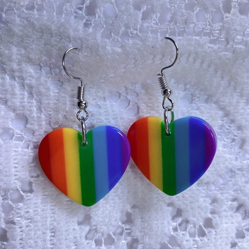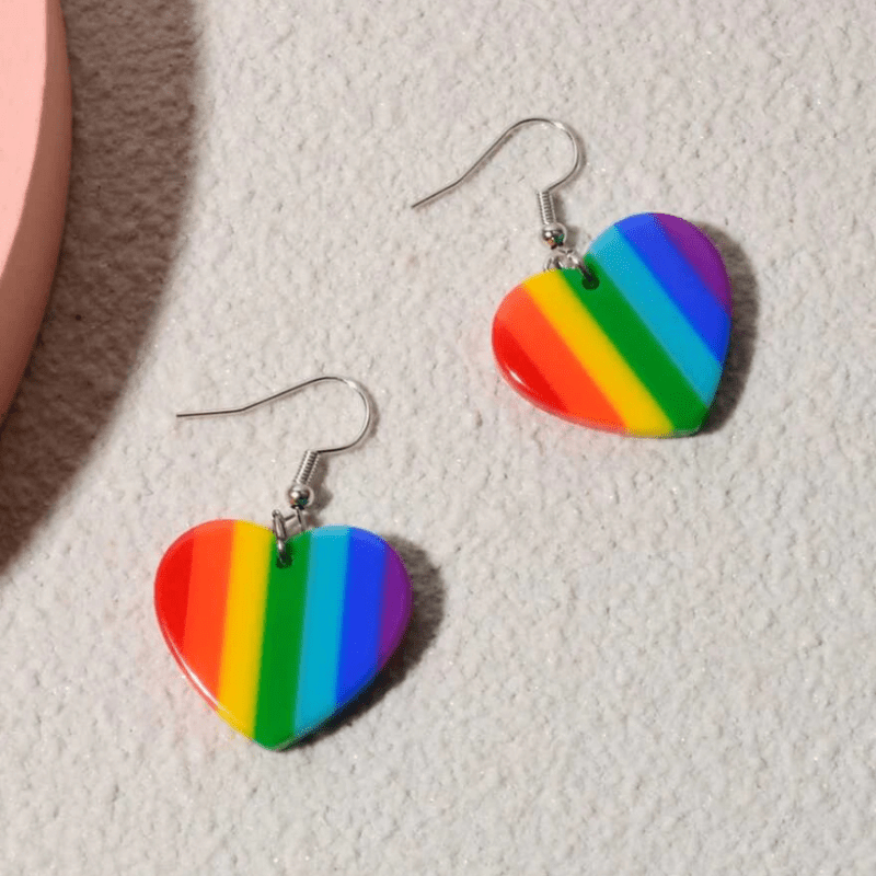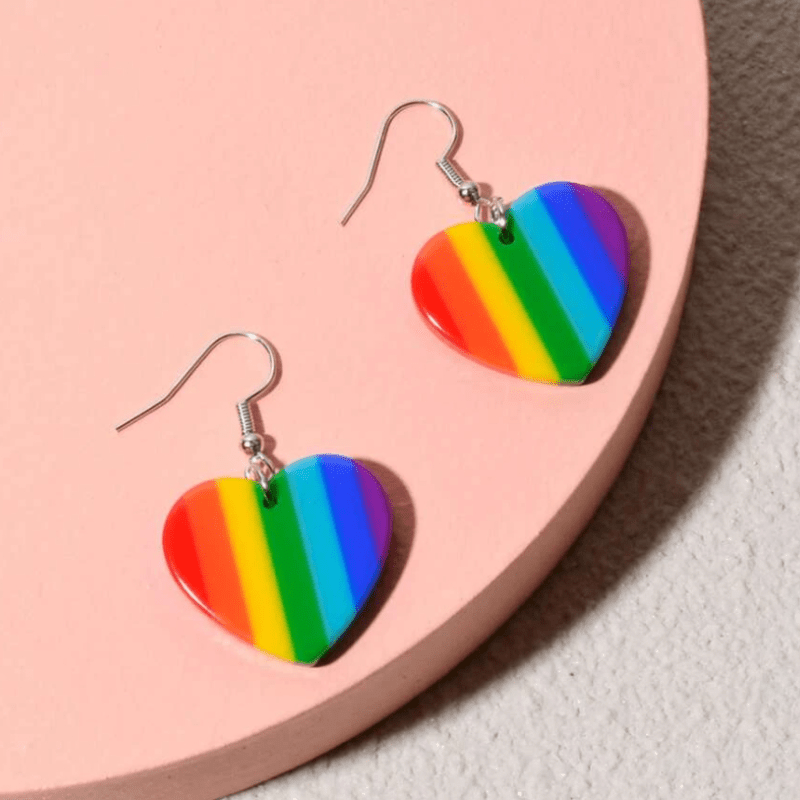 Add a pop of color to your look with these fun rainbow heart earrings. Perfect for expressing your love for colorful style!