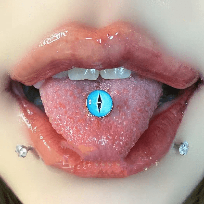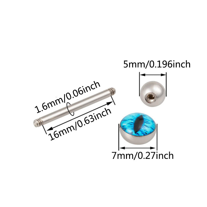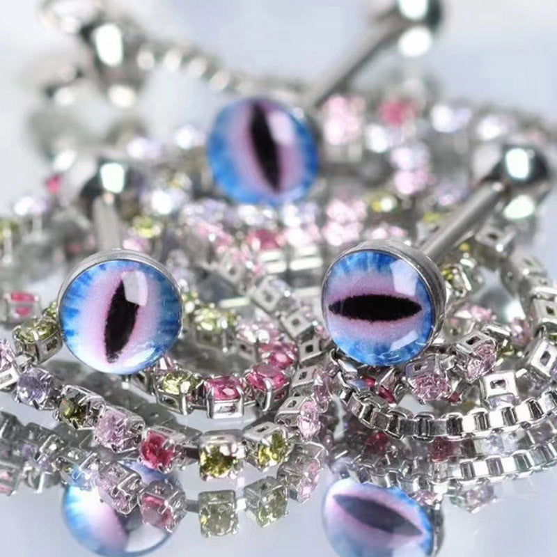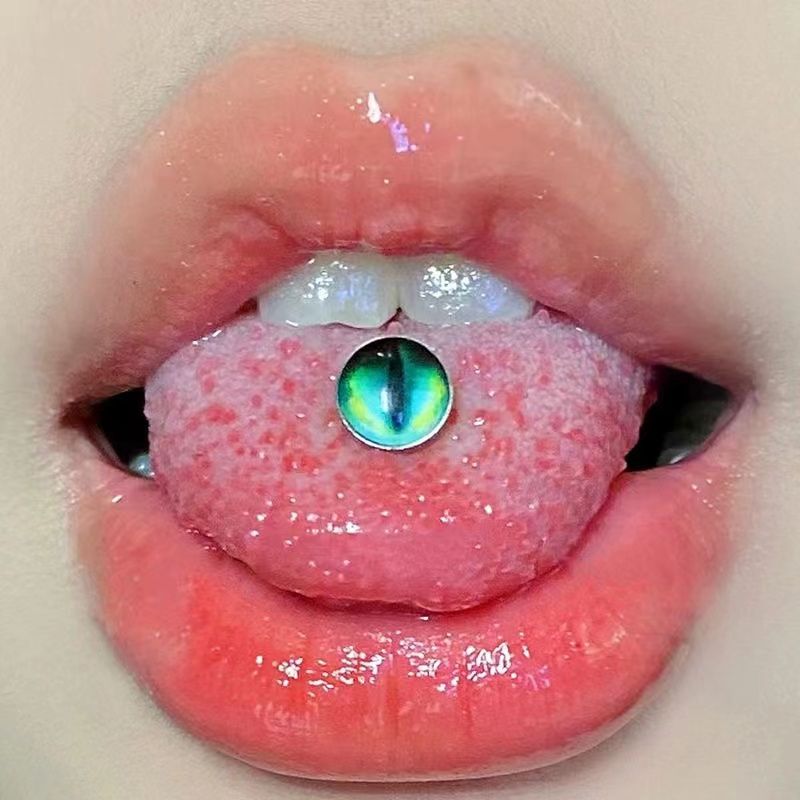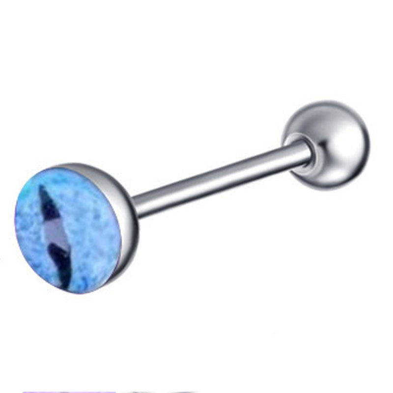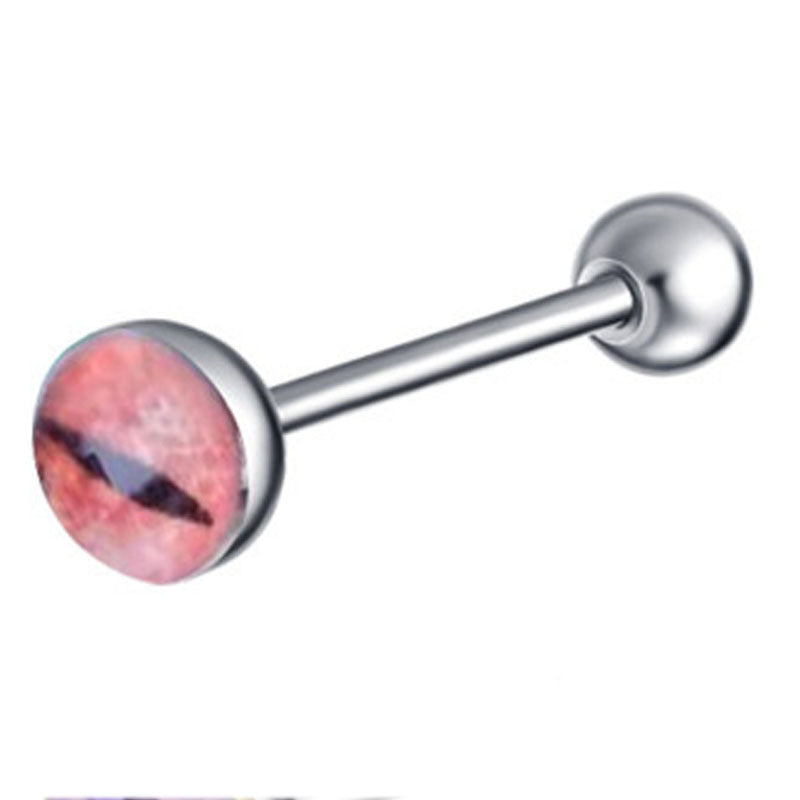 This stylish tongue ring features a Devil's Eye Cat Eye design. Made from high-quality titanium steel, it is a trendy and edgy addition to your body piercing collection.