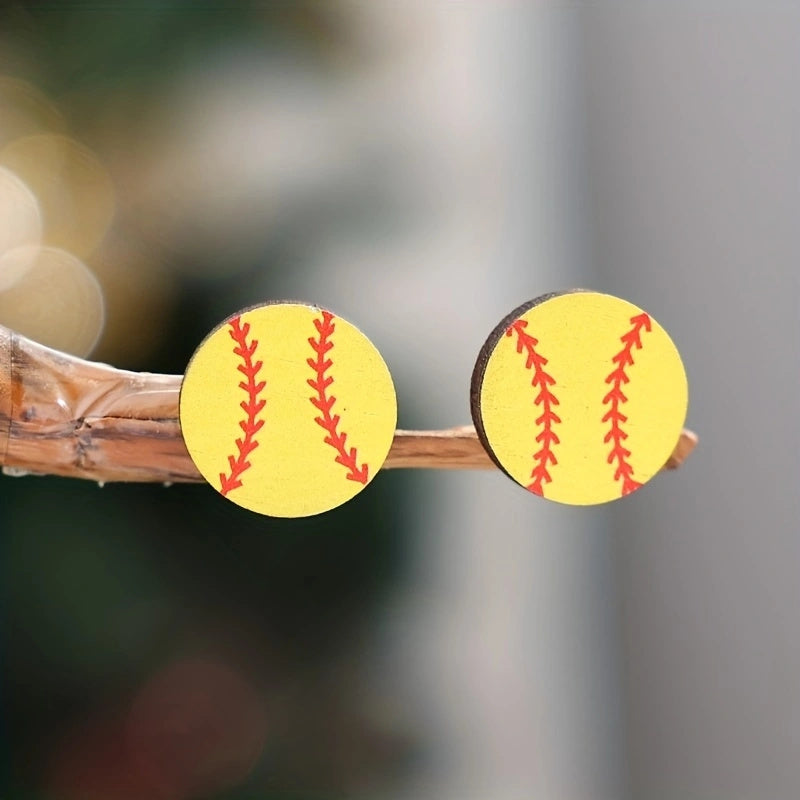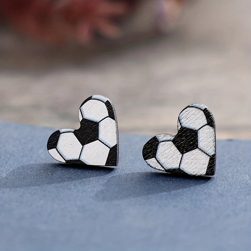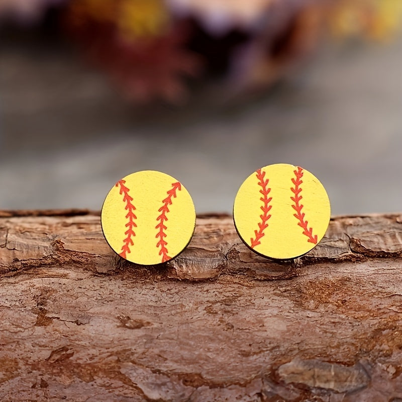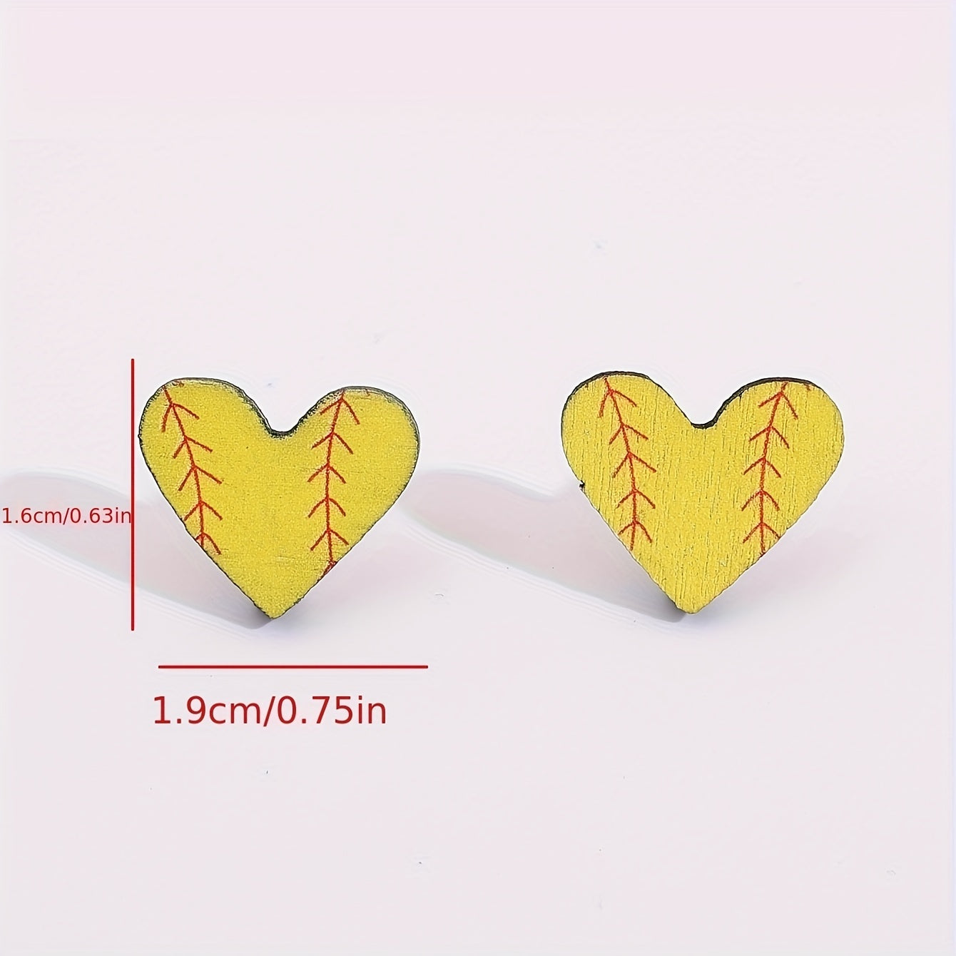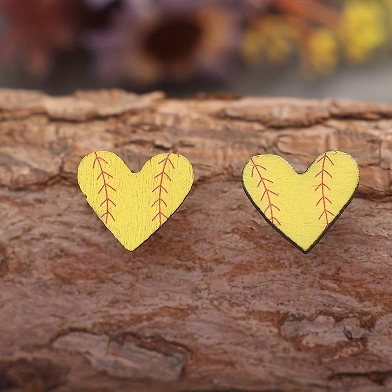 Add a touch of retro sporty style with these yellow heart shape baseball soccer stud earrings made of wood. These earrings are a fun and unique accessory for sports enthusiasts.