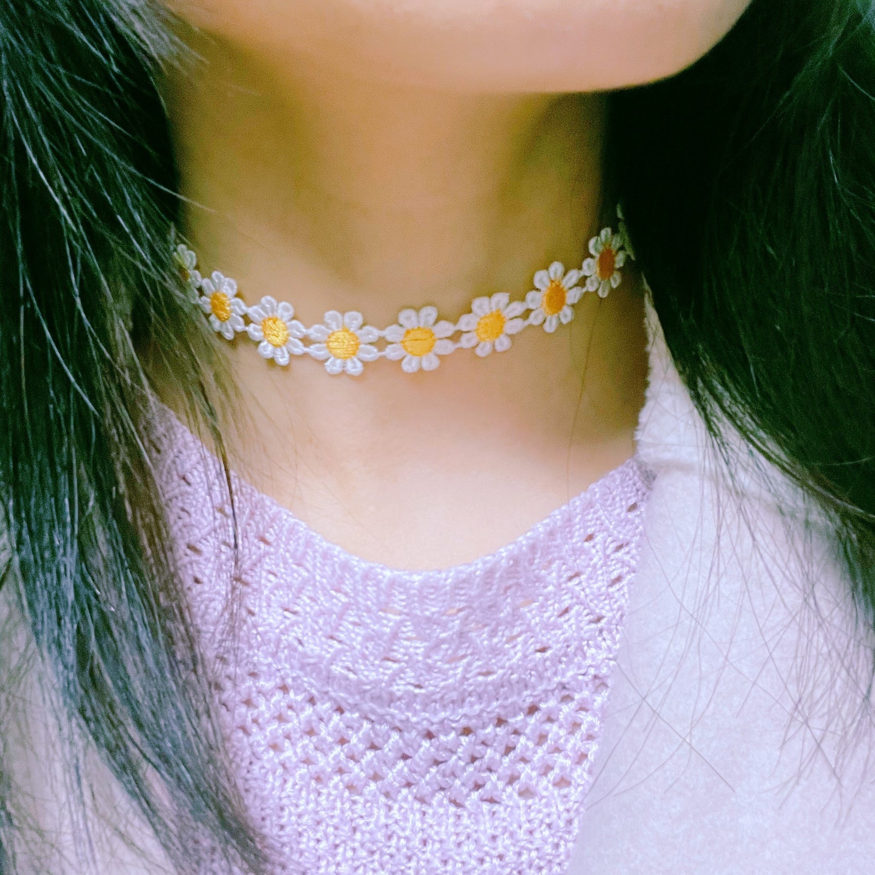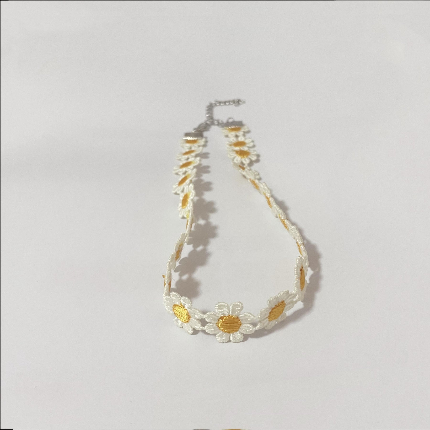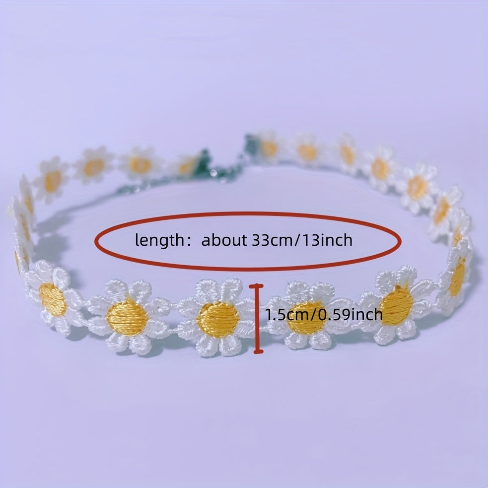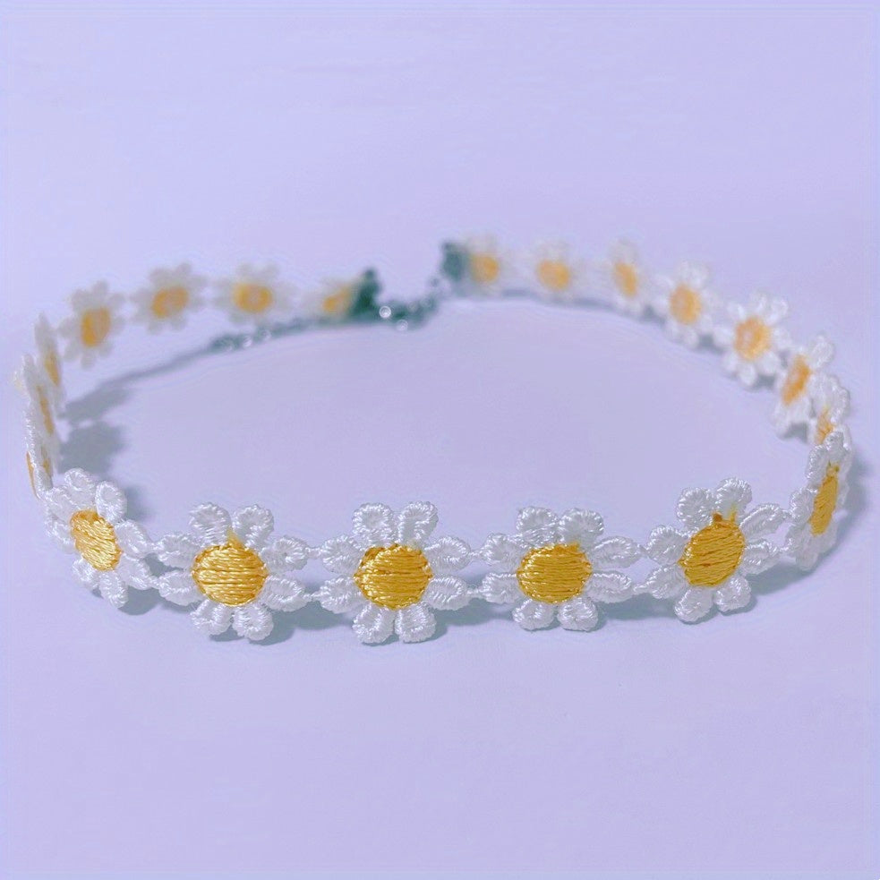 Add a touch of elegance with this charming yellow lace daisy flower necklace. Perfect for women, ladies, and girls.