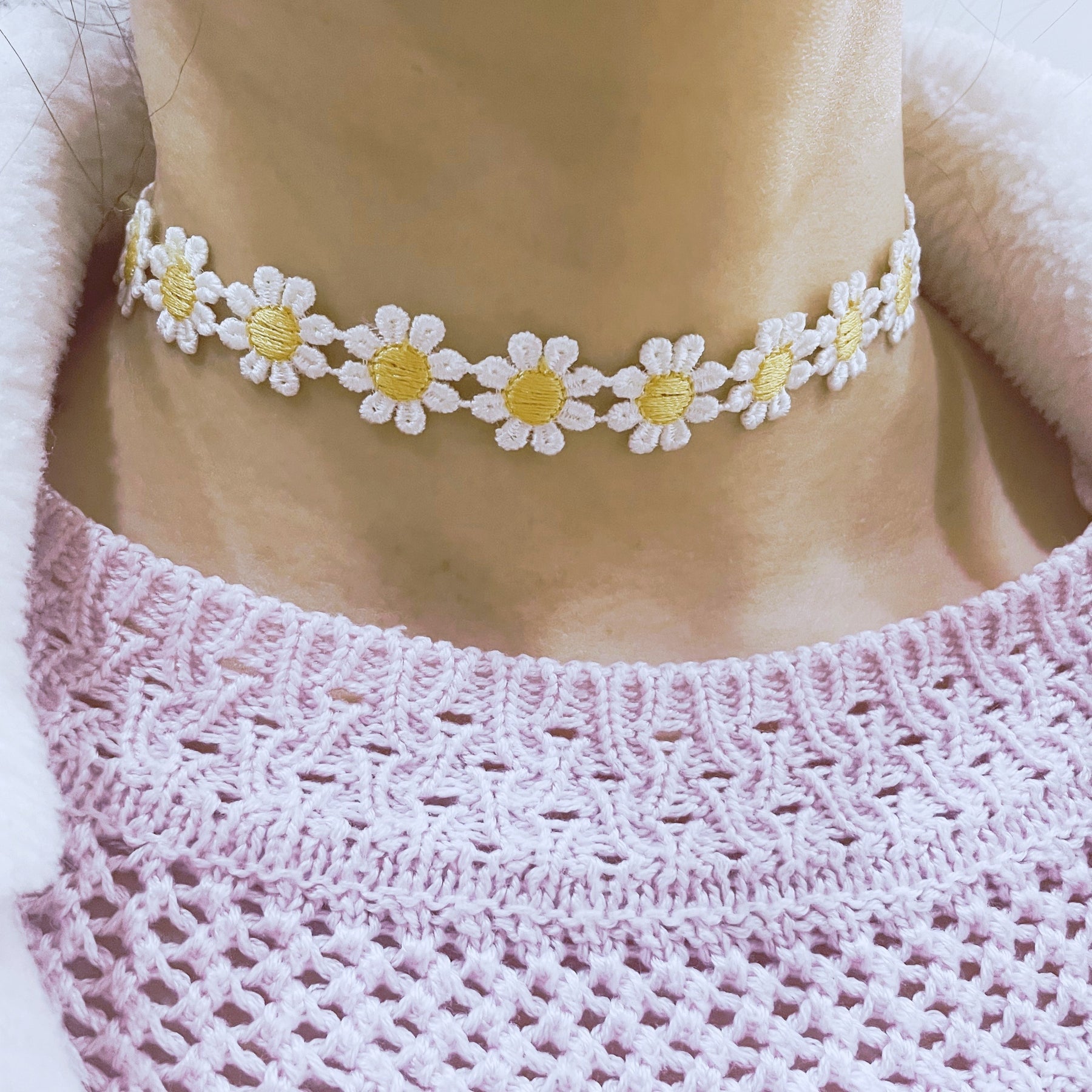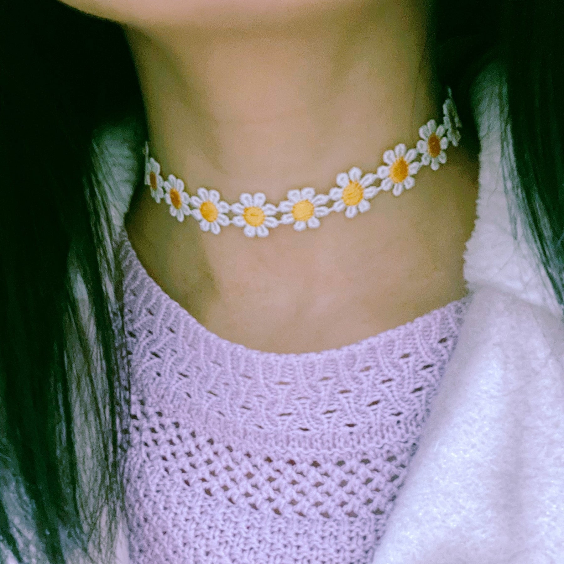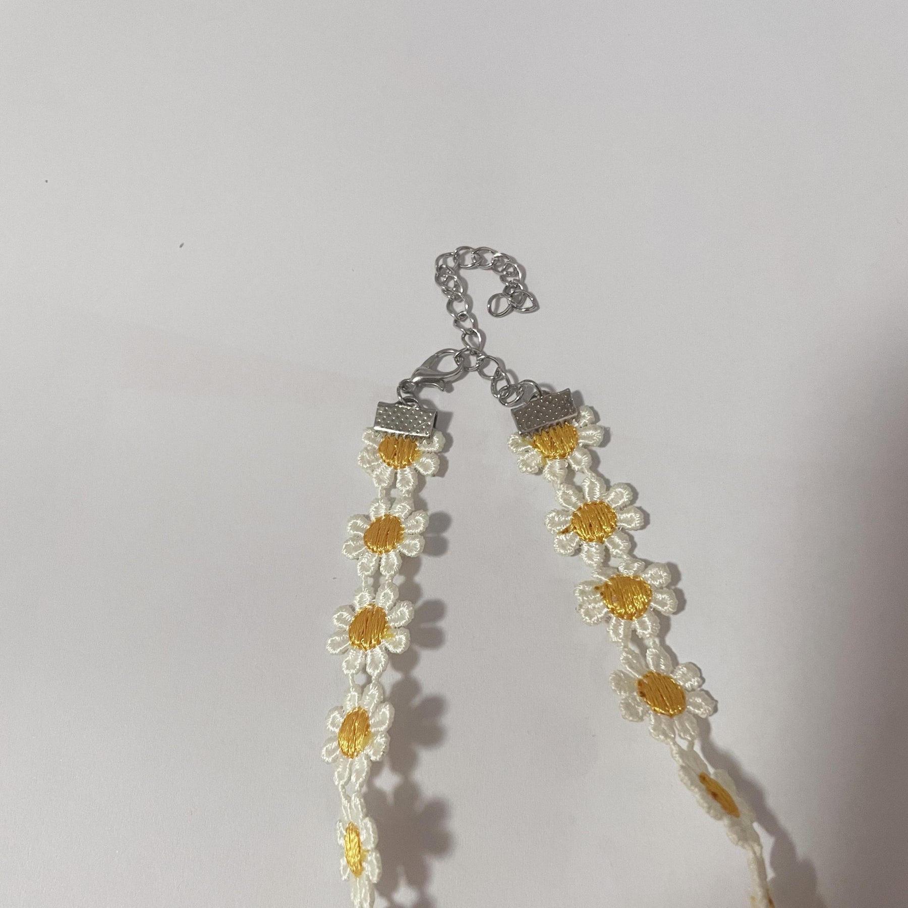 Add a touch of elegance with this charming yellow lace daisy flower necklace. Perfect for women, ladies, and girls.
