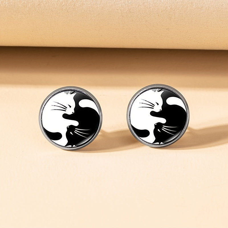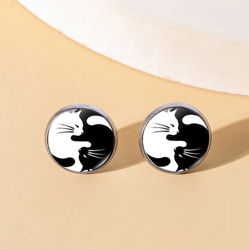 Yin Yang Cat Stud Earrings - Women Jewelry Gift
