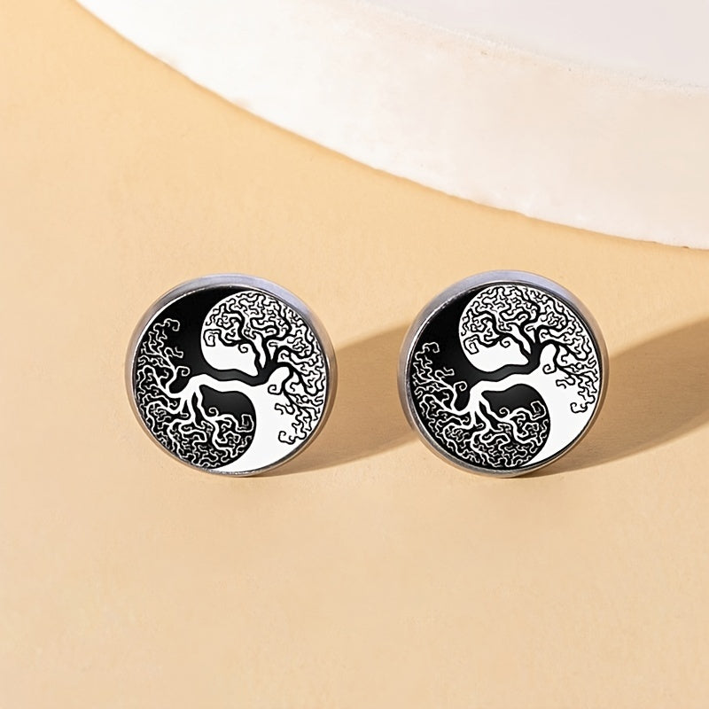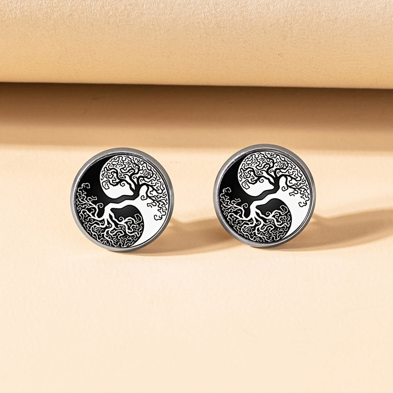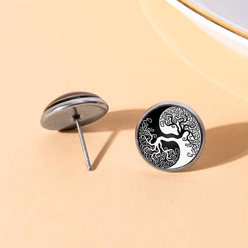 These Tree Of Life Yin Yang Cat Stud Earrings are a creative and unique addition to your jewelry collection. Perfect for cat lovers and those who appreciate the balance of yin and yang.