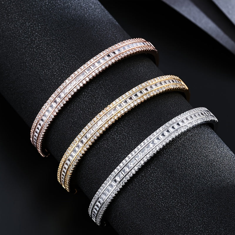 Zircon Bangle Minimalist Copper Hand Jewelry 18K Plated for Women & Girls