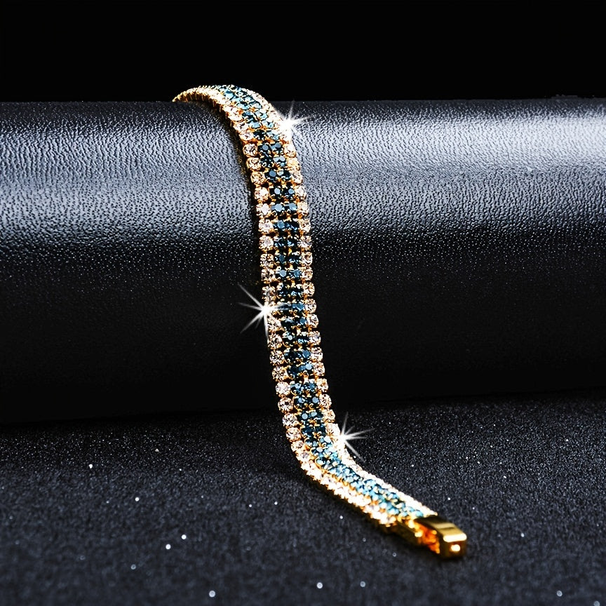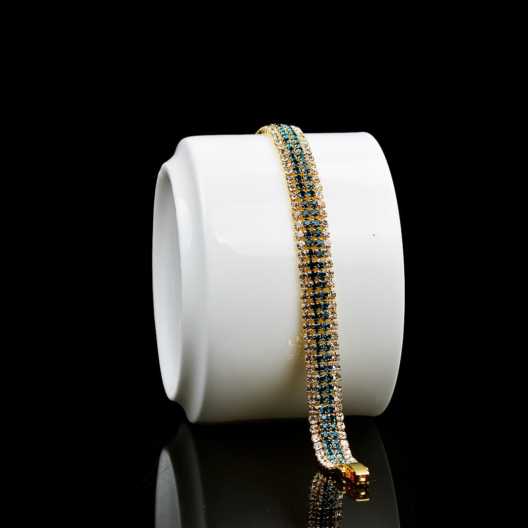 Enhance your style with this beautiful copper bracelet adorned with zircon stones. This hand jewelry piece is perfect for adding a touch of elegance to your attire.