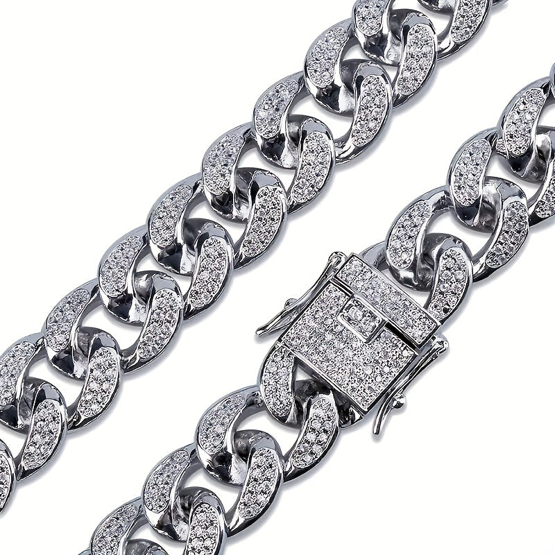 Elegant zircon-studded Cuban chain bracelet designed for men, adding a touch of style to any outfit.
