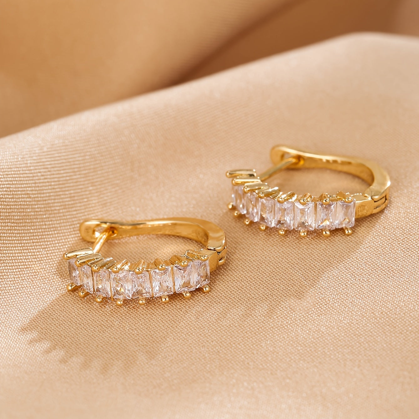 Add elegance to your outfit with these Zircon Huggie Hoop Earrings. Perfect for parties, holidays, or daily wear. Made with high-quality material for a stylish look.