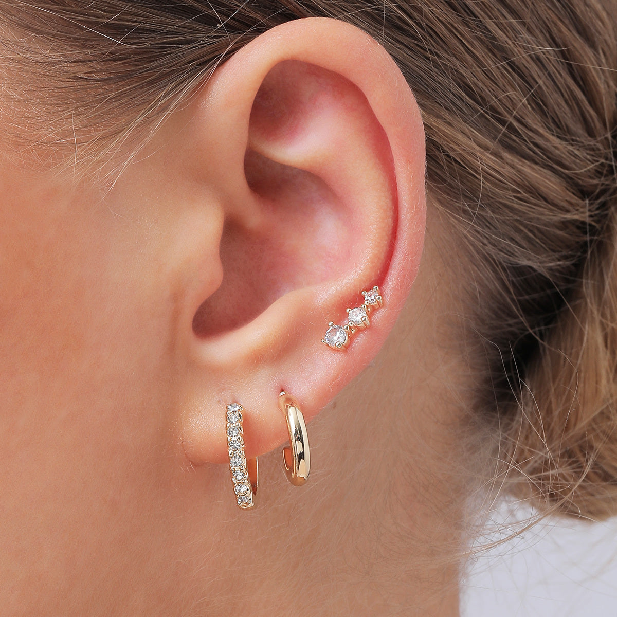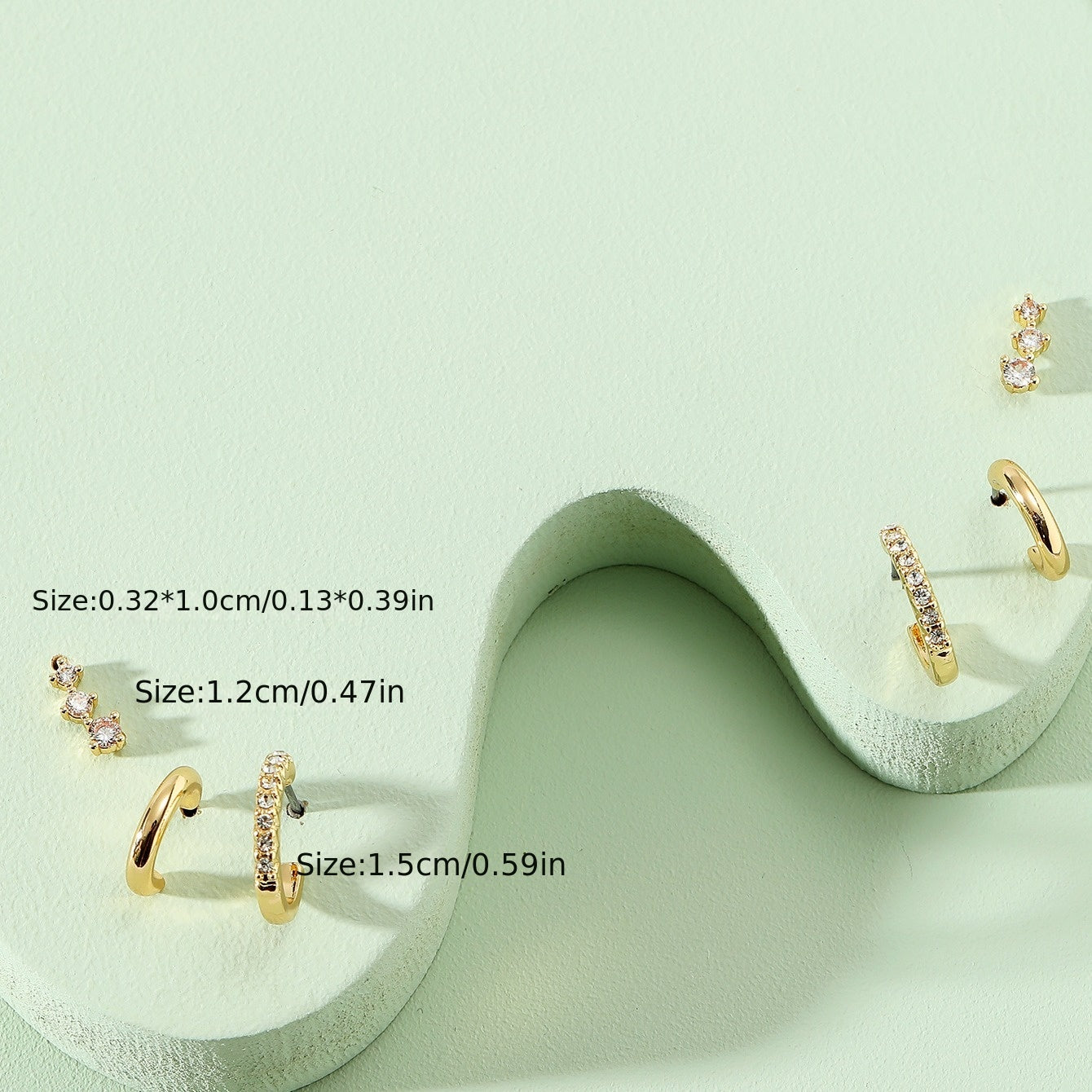 Enhance your look with this stunning set of 3 pairs of earrings, each inlaid with shimmering zircon stones. Made with quality 14K gold plating, these earrings are a perfect addition to your jewelry collection.