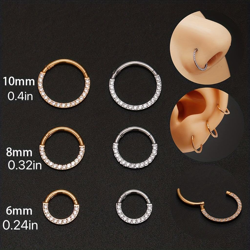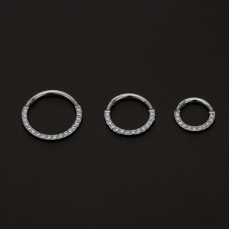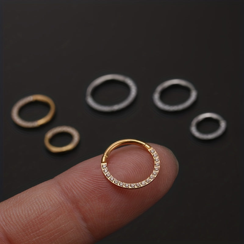 Zircon Inlaid Hoop Hinged Nose Ring Body Piercing