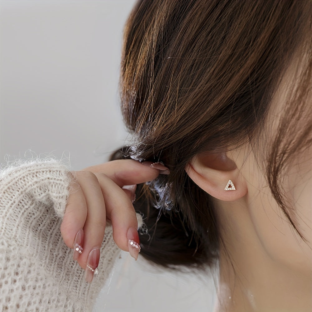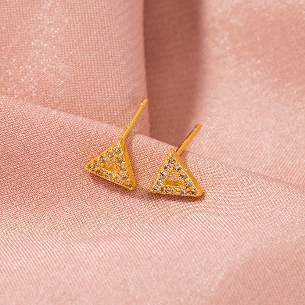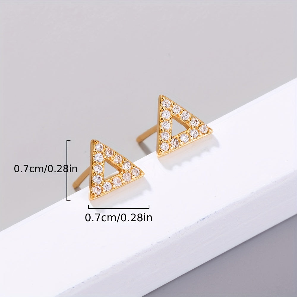 Zircon Inlaid Triangle Stud Earrings Copper Jewelry