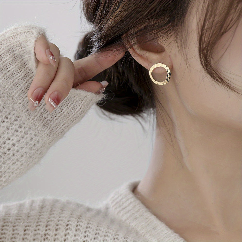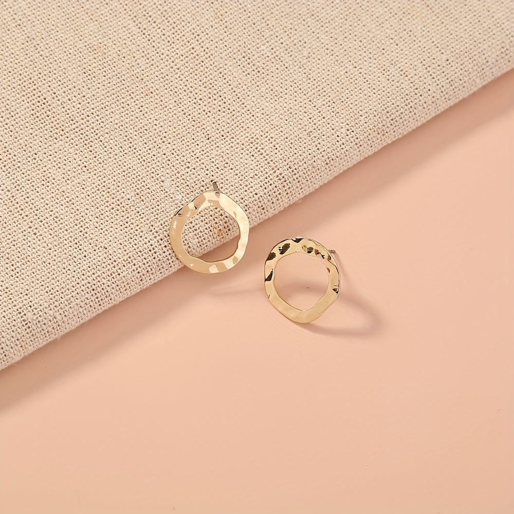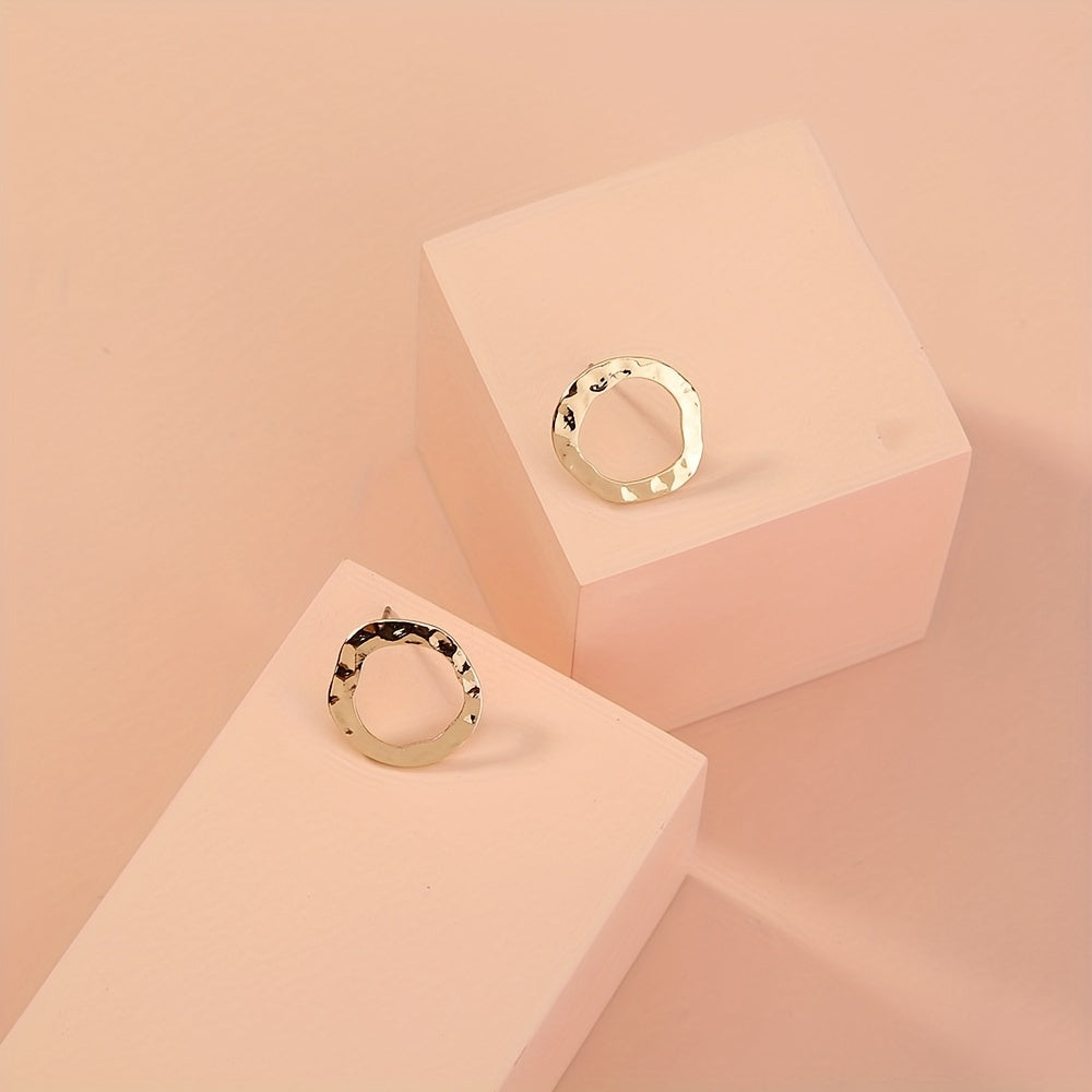 These minimalist style stud earrings feature sparkling zircon inlays on triangle round design. Perfect gift for females.